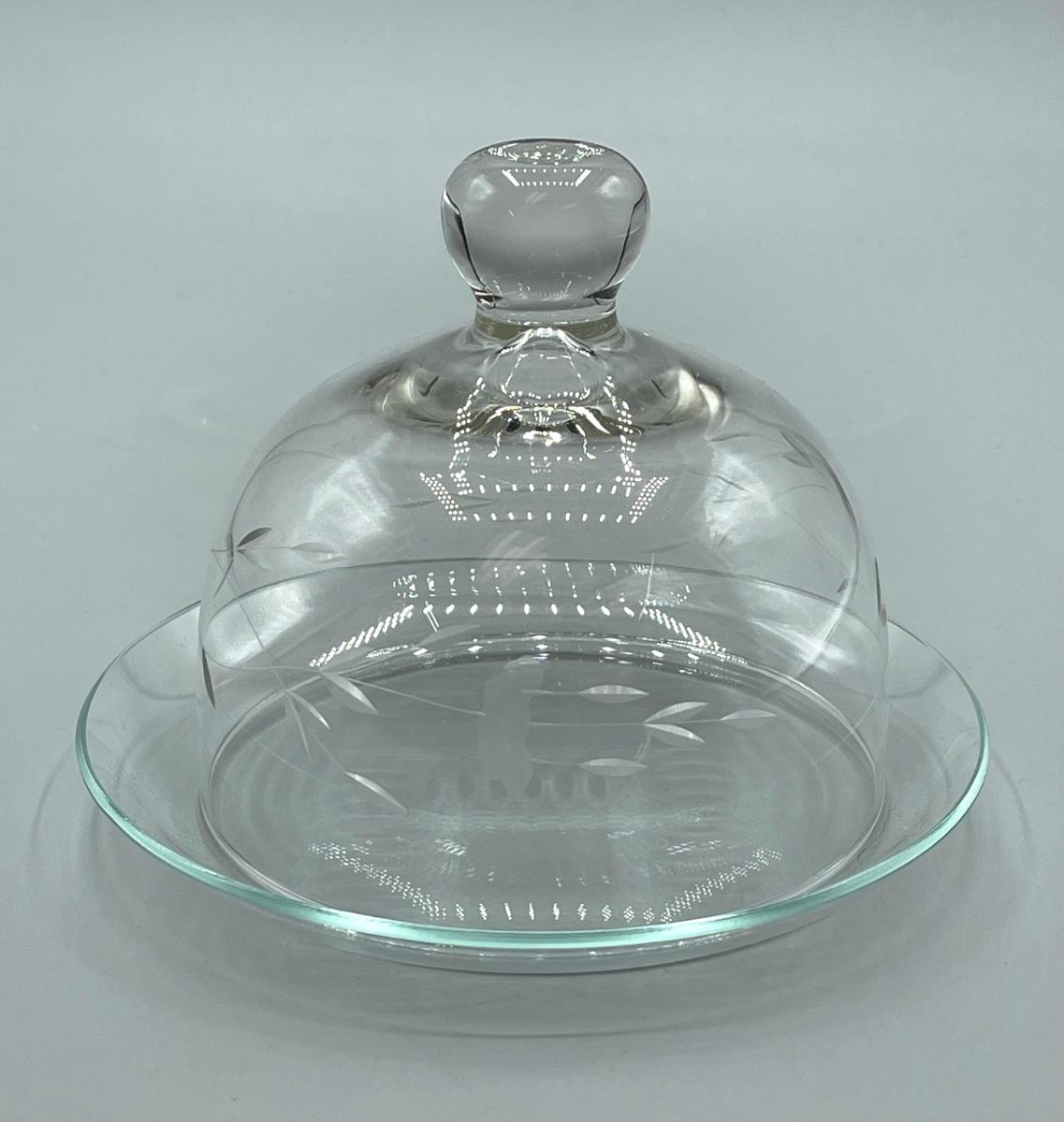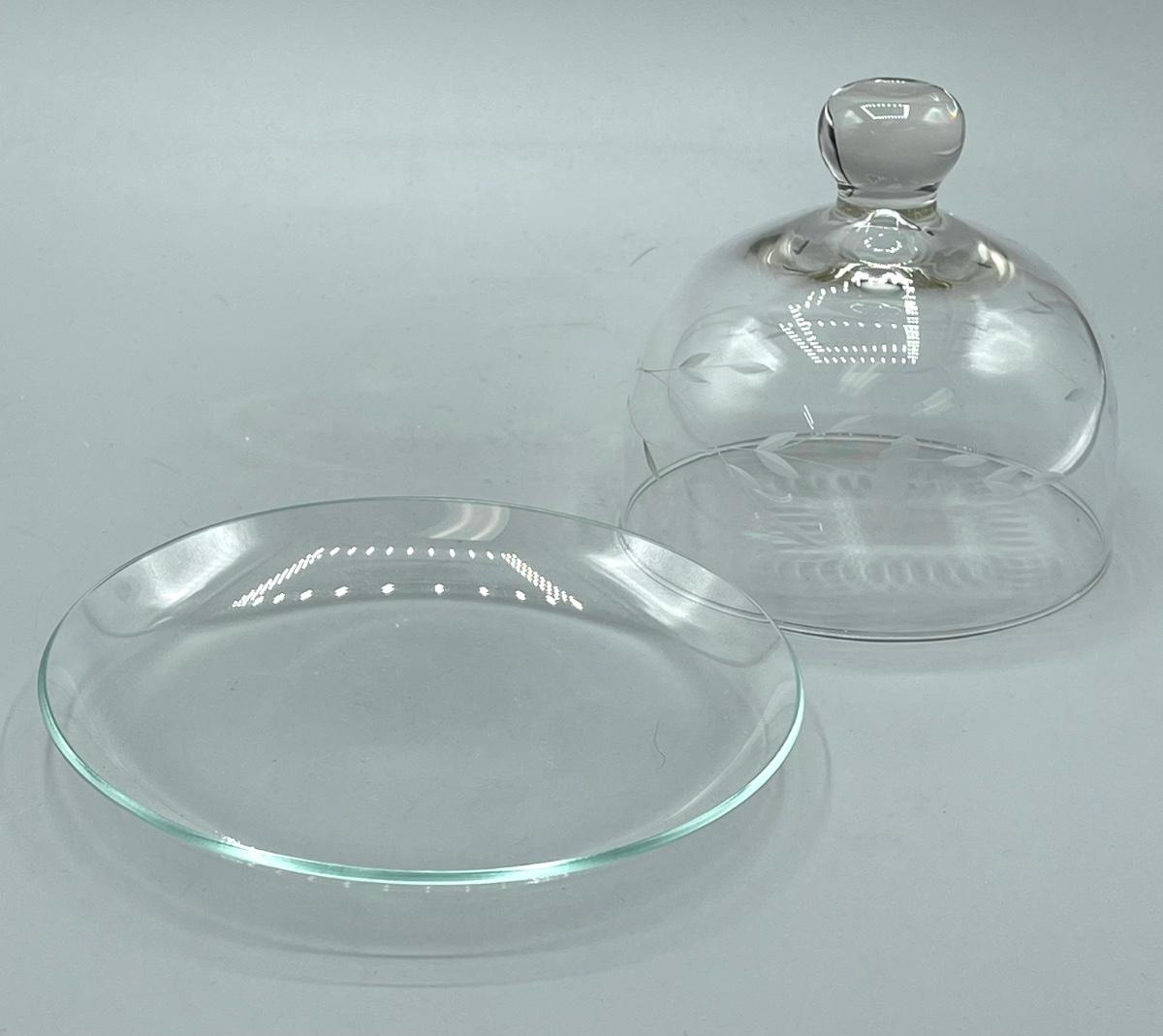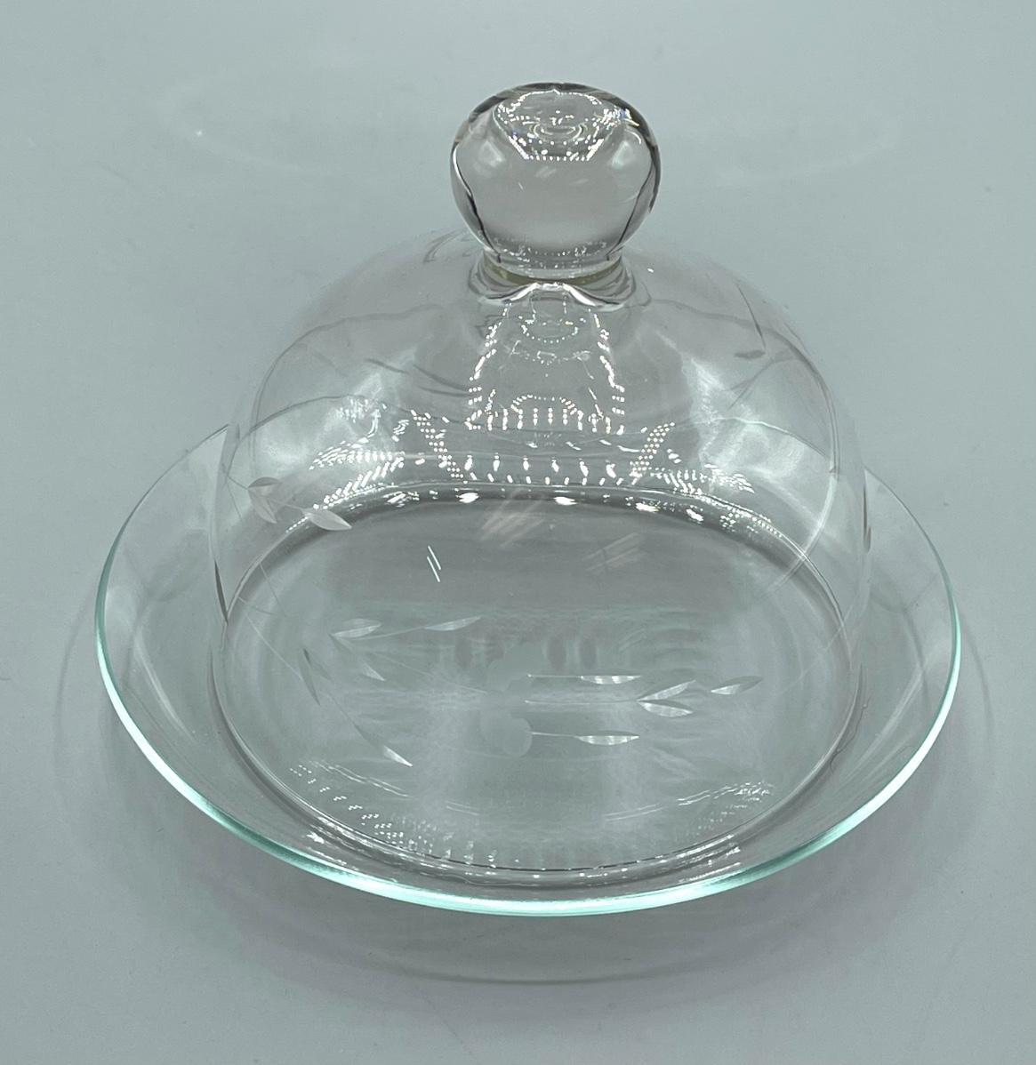 Retro Clear Glass Cheese Butter Dish Round Plate & Dome Lid Cover