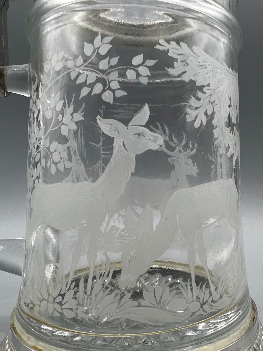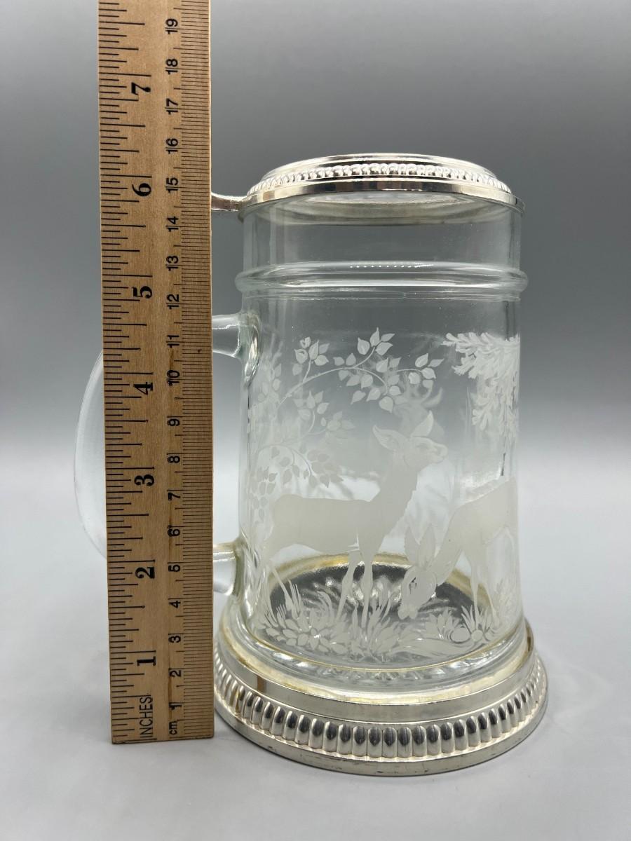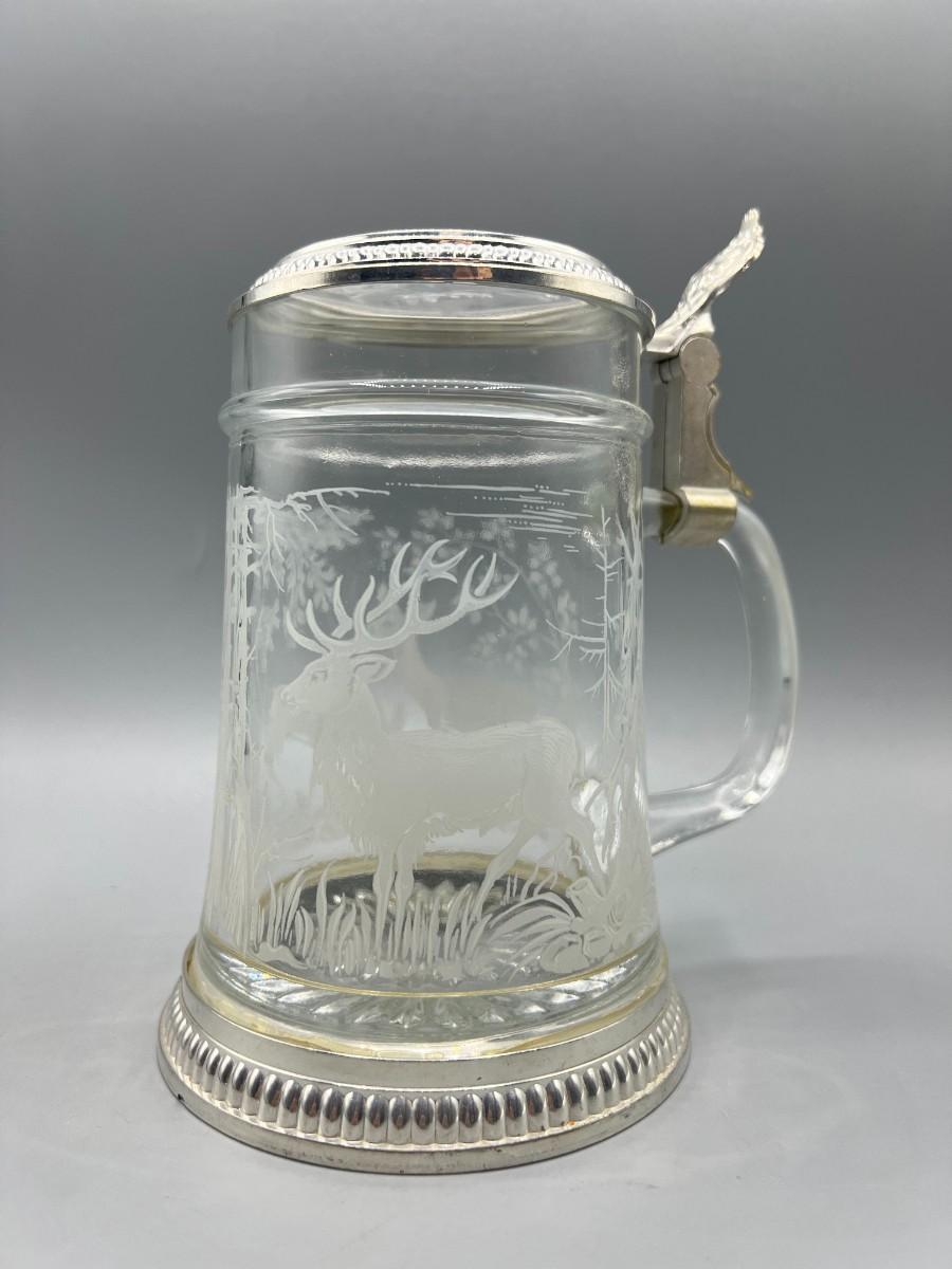 Retro Clear Glass Deer Elk Foliage Drinking Mug Beer Stein