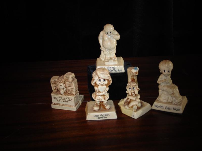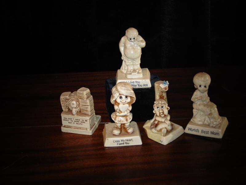 Some of these collectible figurines have some damage on corners. Some are dated 1975 made of plastic.
