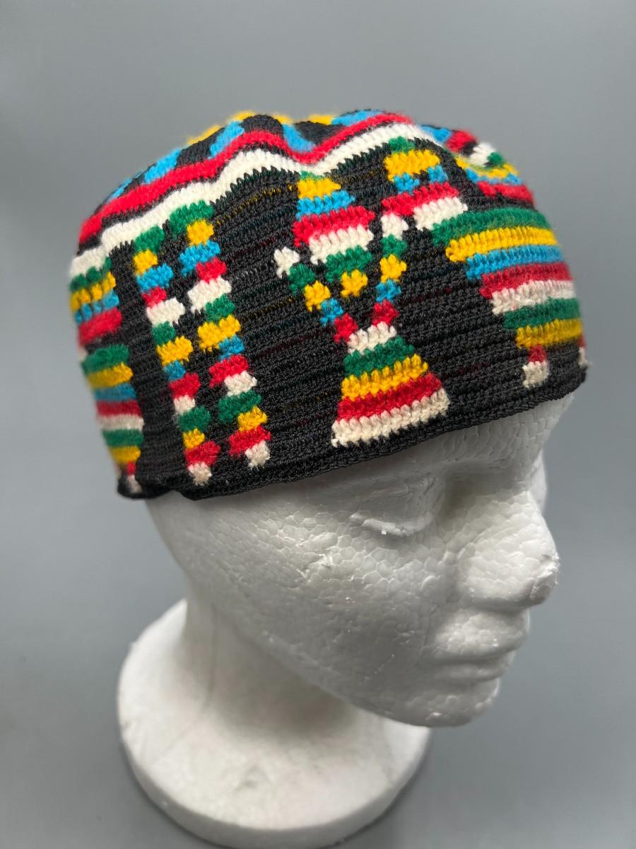 Retro Colorful Tribal Folk Design Crochet Beanie Head Cap