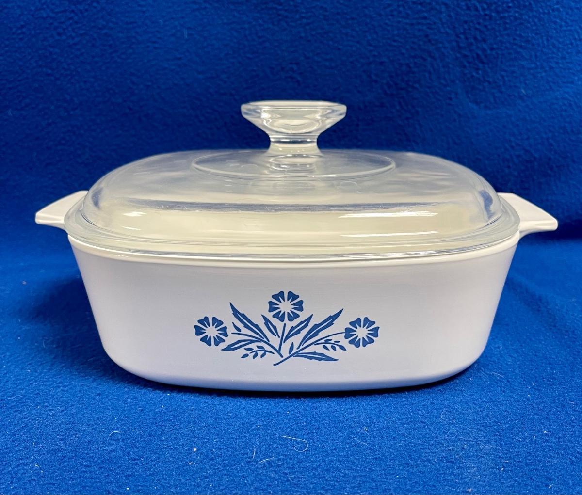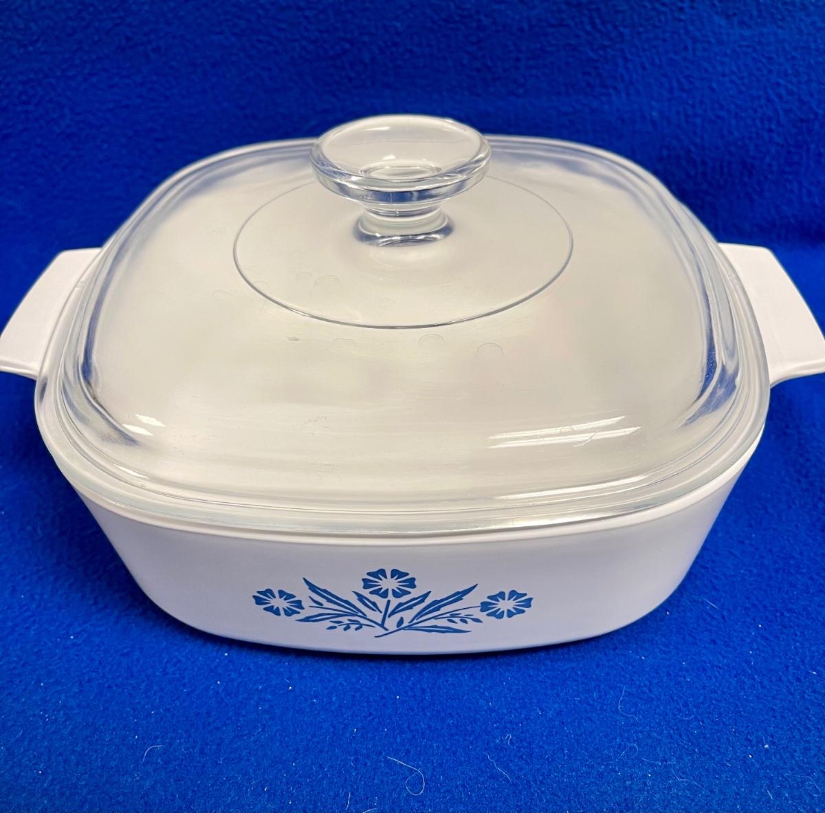 Retro Corn Flower Blue Corningware Square Casserole Dish with Lid 2 Quart
