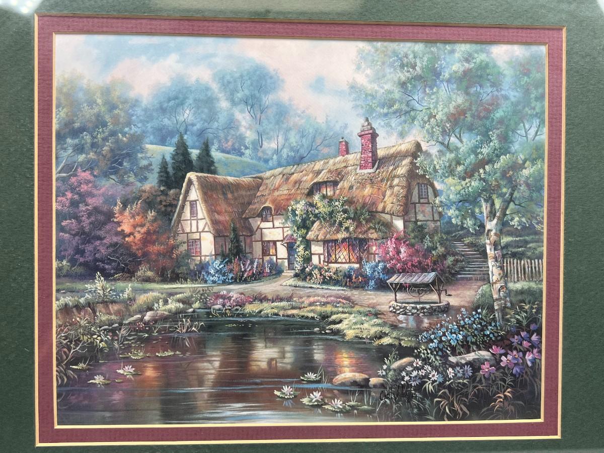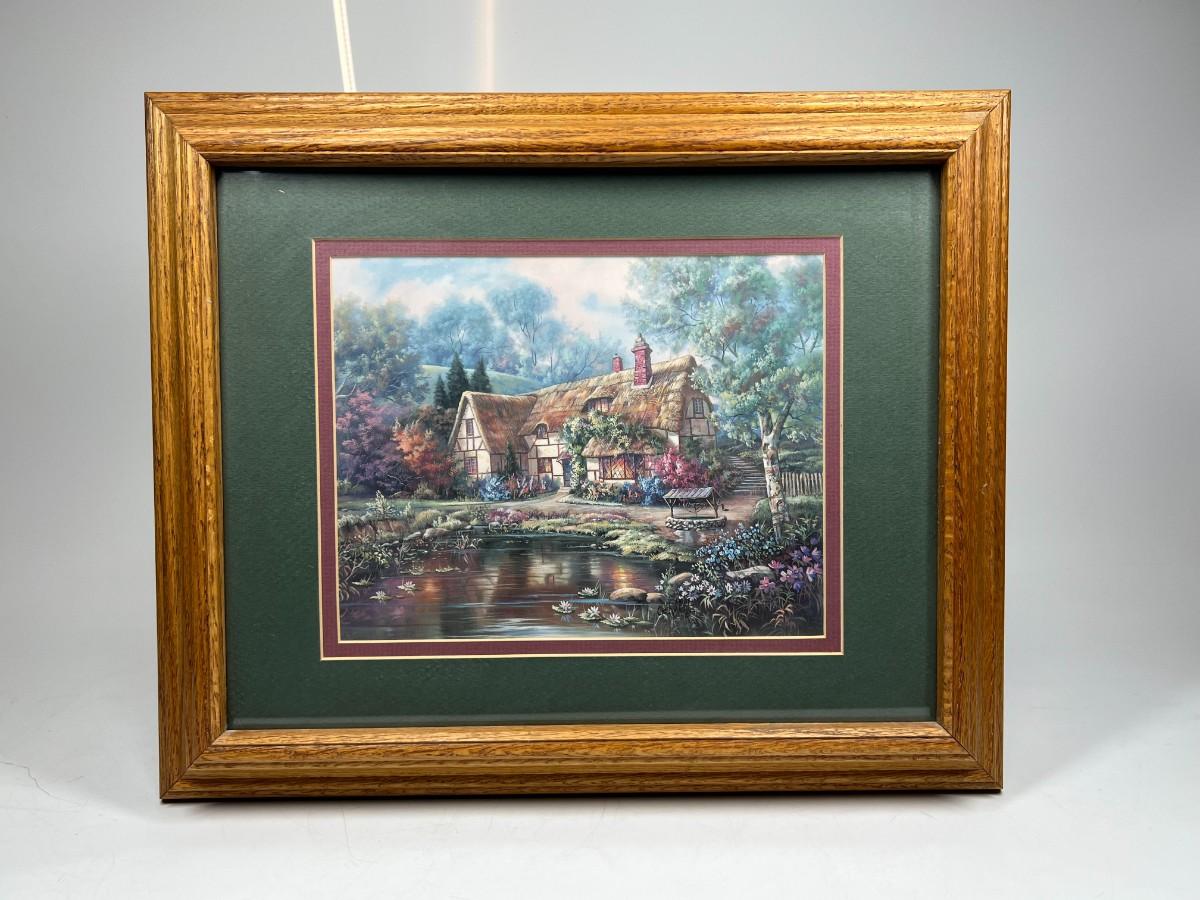 Retro Cottage Core Tranquil House By The Lake Medium Sized Framed Photograph, there is no signifncant damage to the frame or protective glass and is in good displayable condition. Check pictures for more details and for sizing.