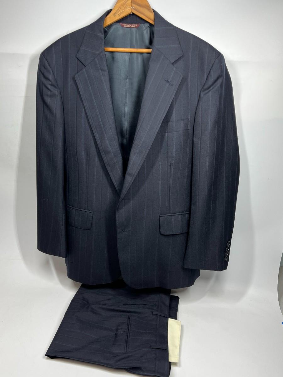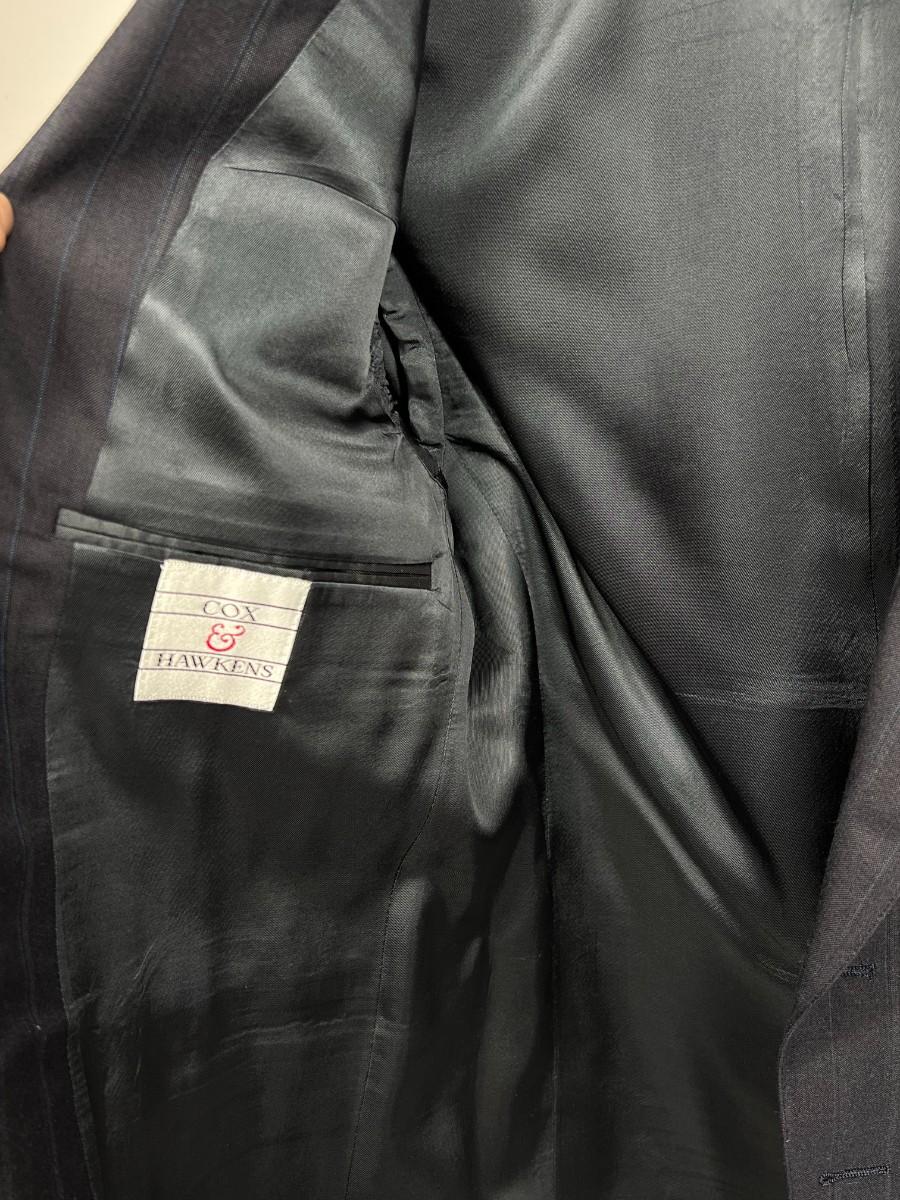 Retro Cox & Hawkens Black with Blue Stripes Men's Fashion Jacket Blazer with Matching Dress Pants