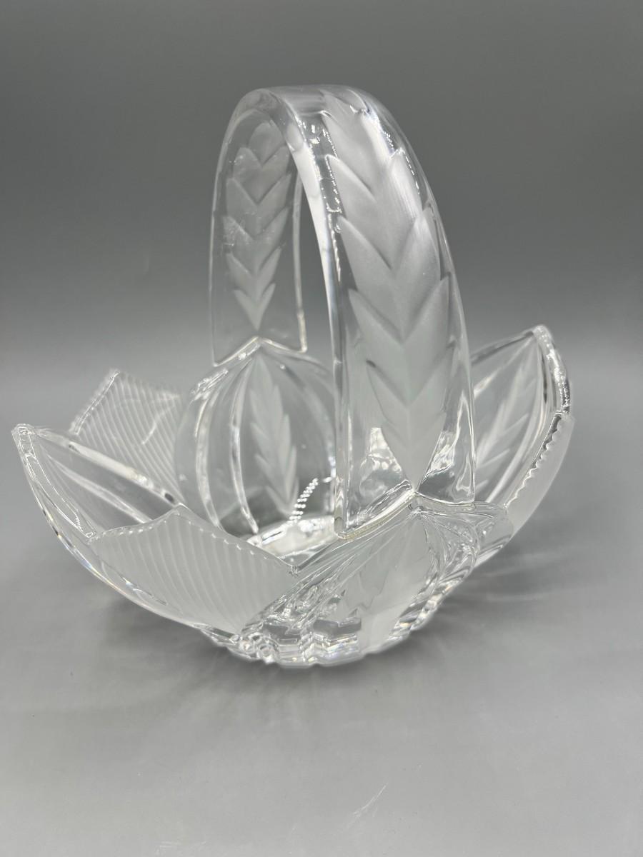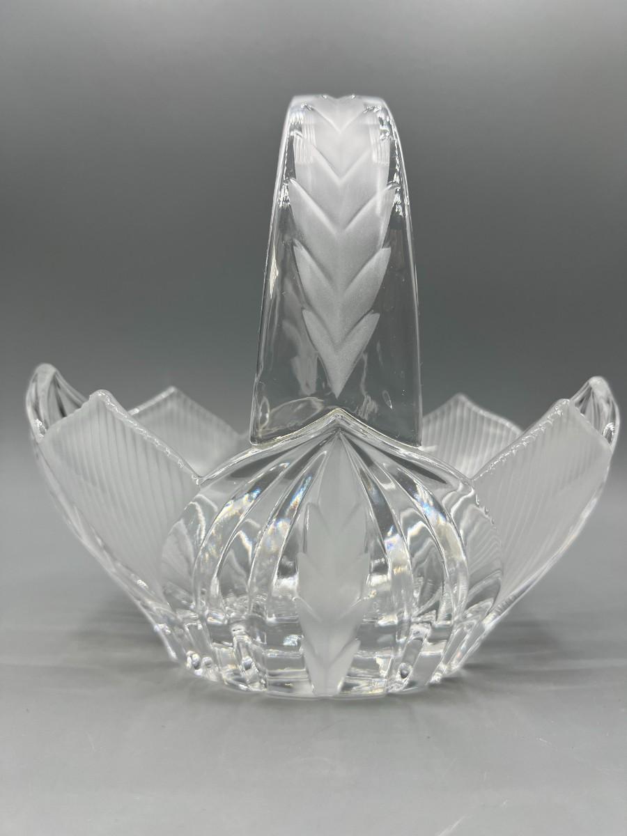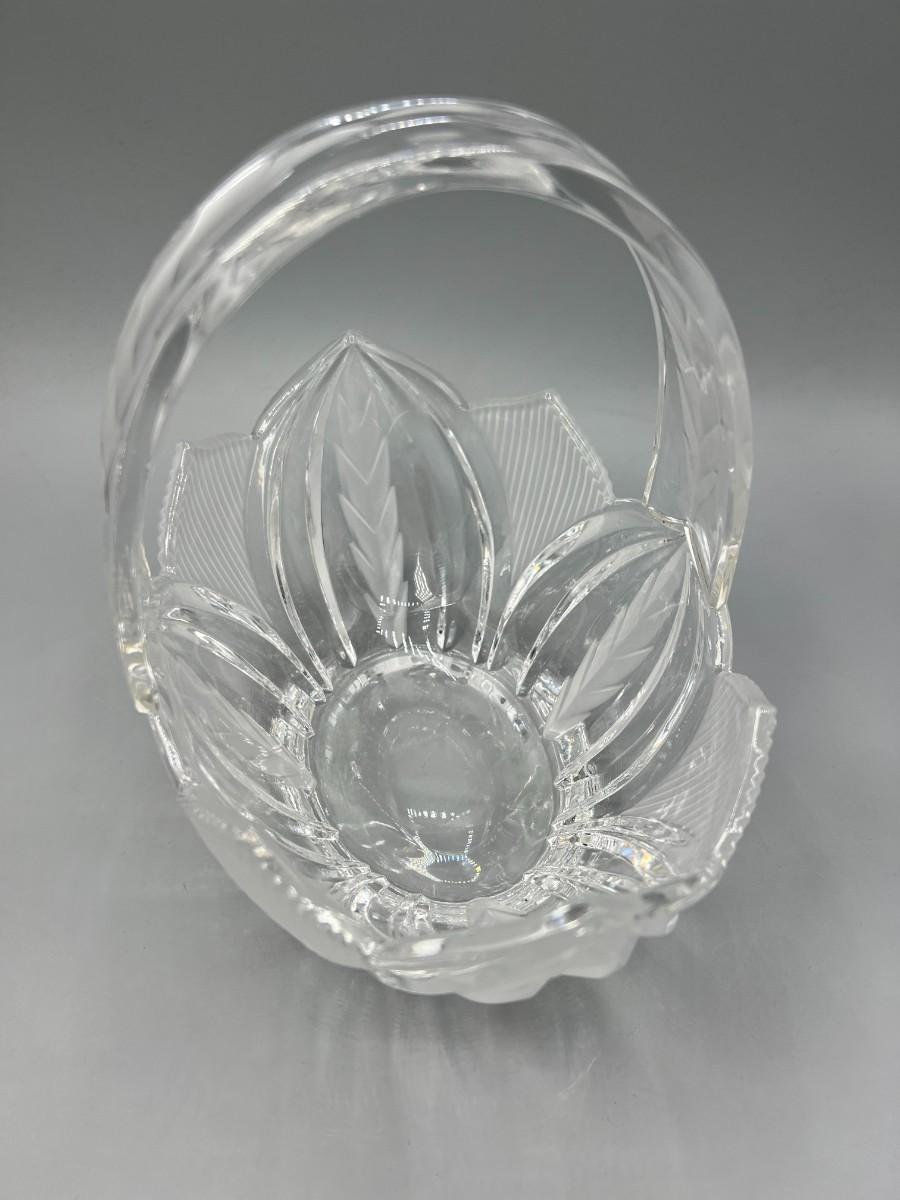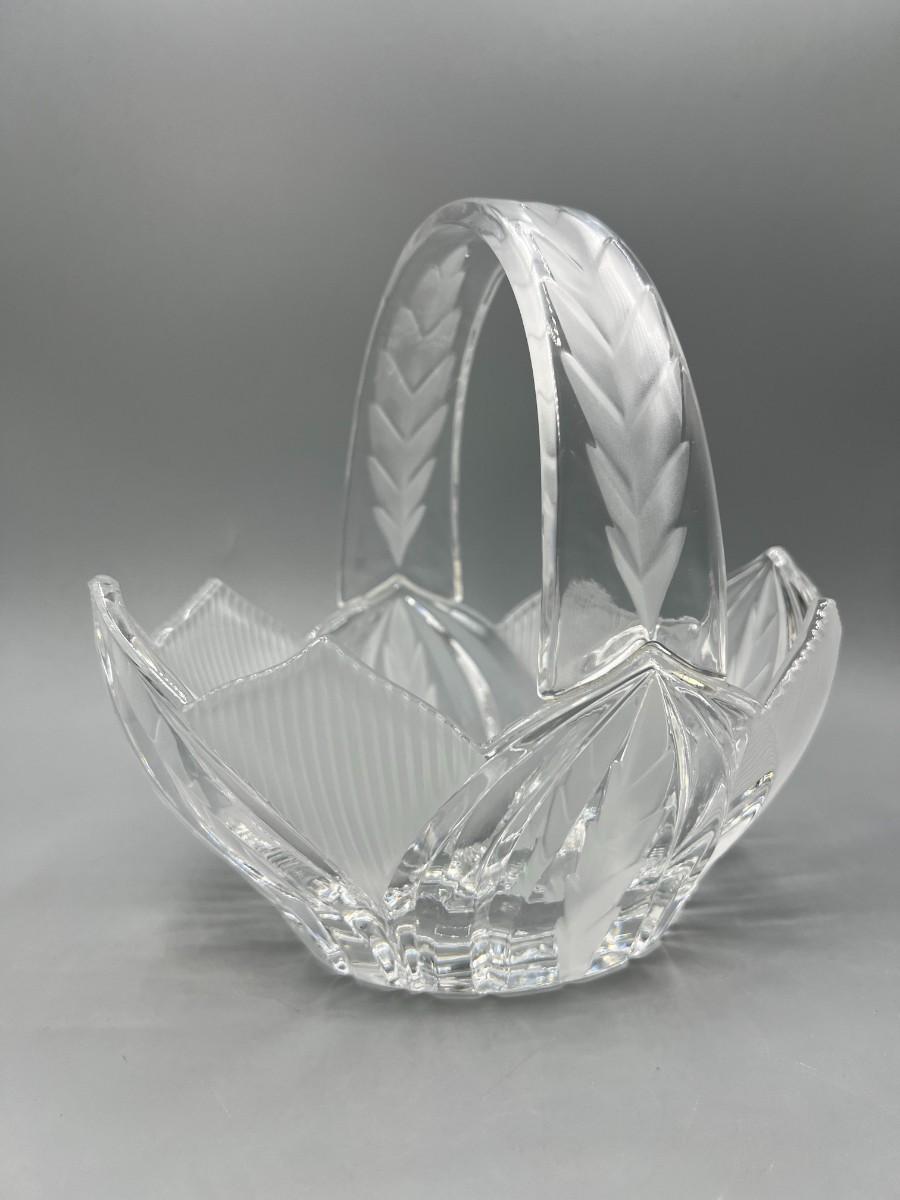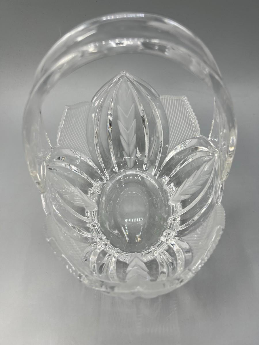 Retro Crystal Glass Basket Trinket Cottagecore Decor Etched pattern