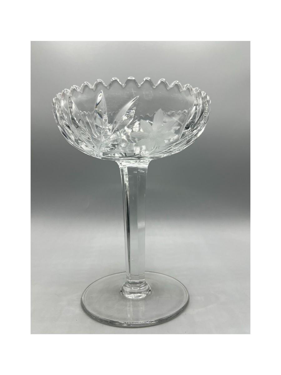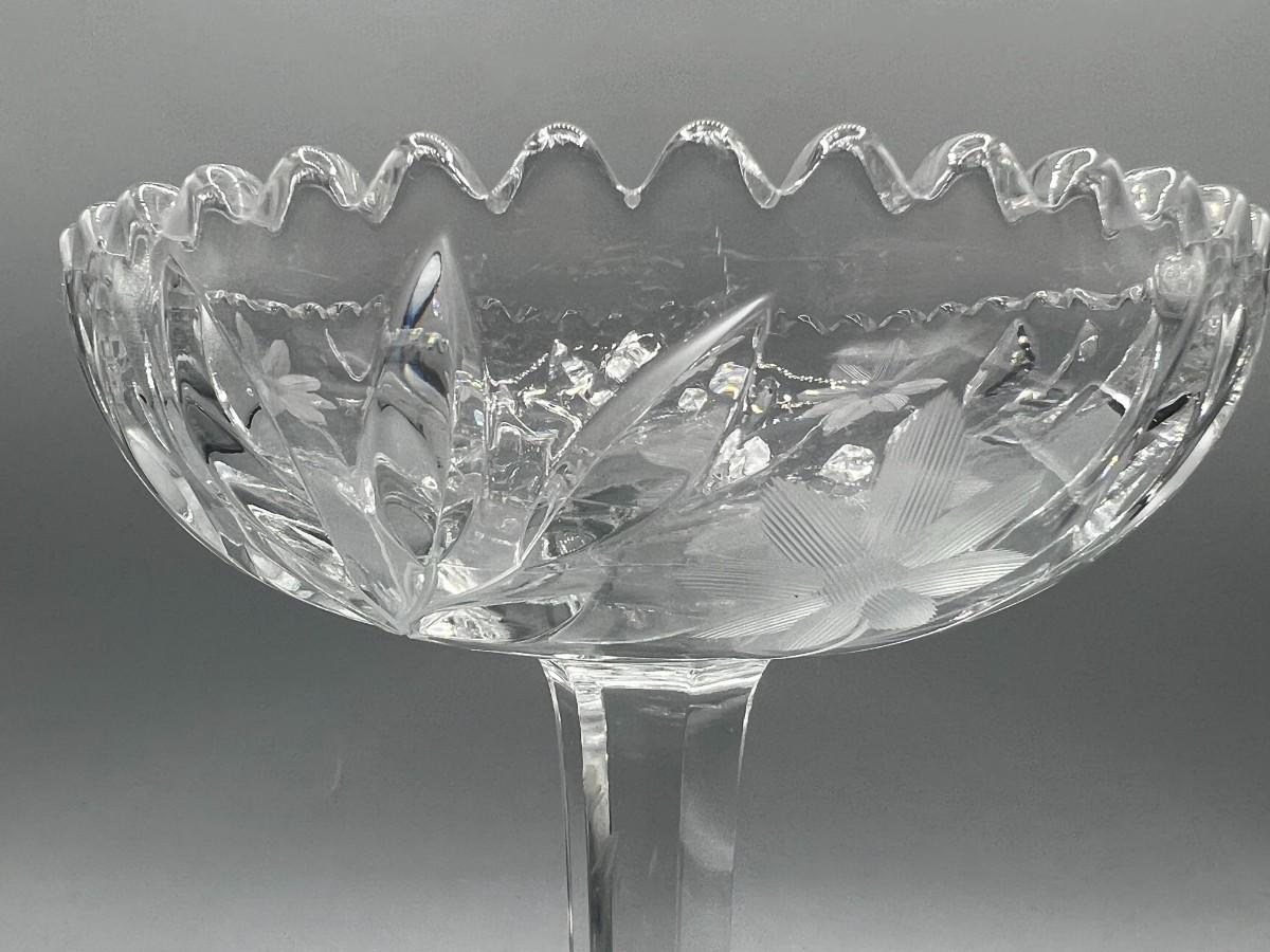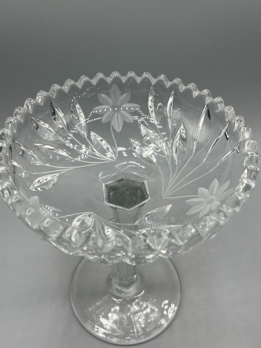 Retro Crystal Glass Etched Flower Design Stemmed Footed Candy Bowl Dish