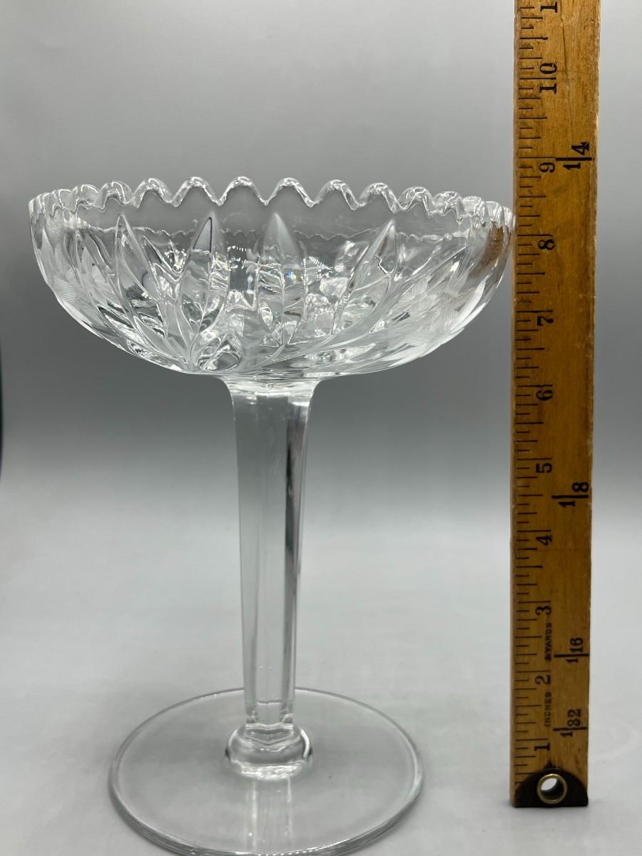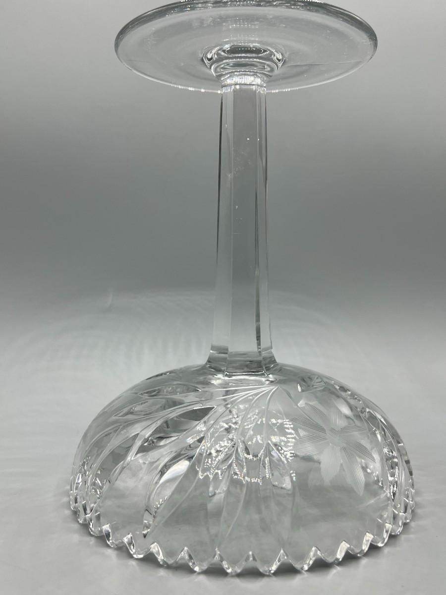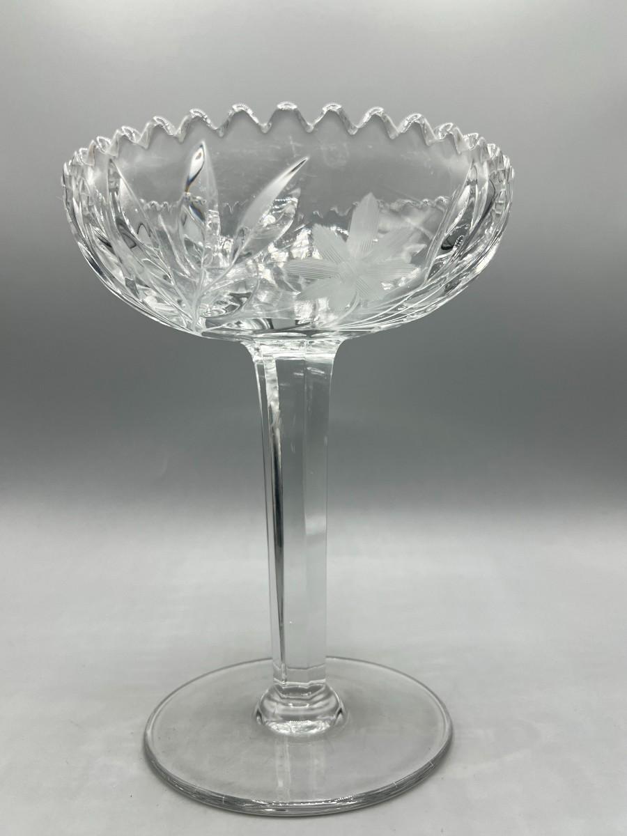 Retro Crystal Glass Etched Flower Design Stemmed Footed Candy Bowl Dish