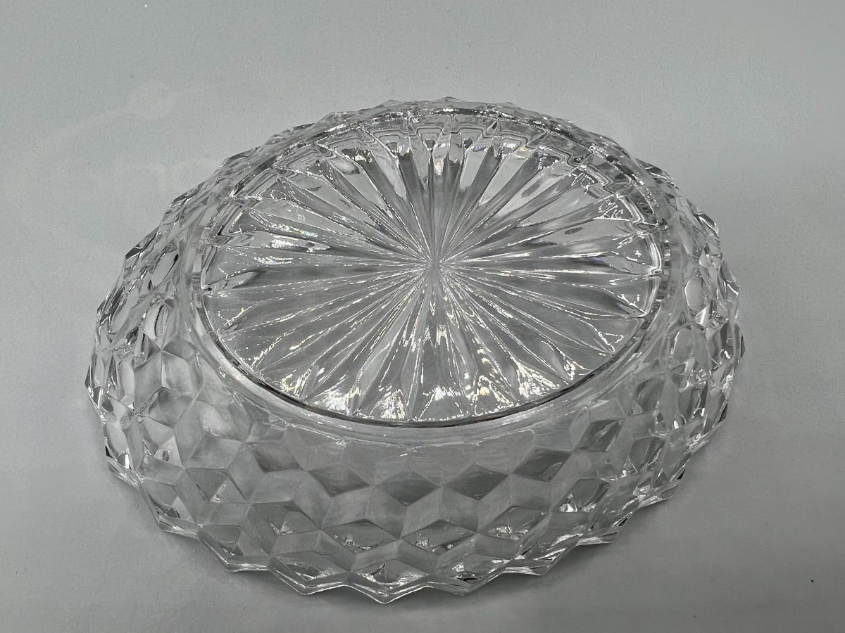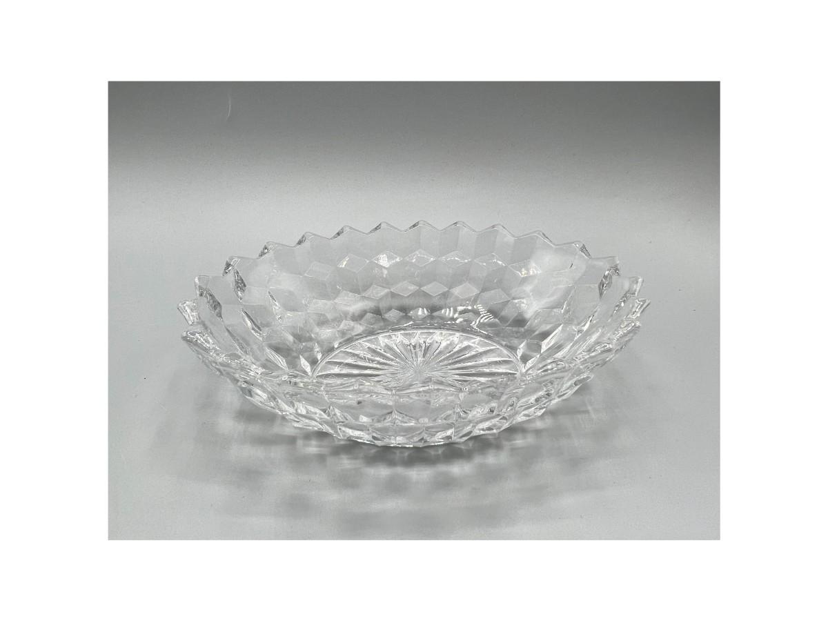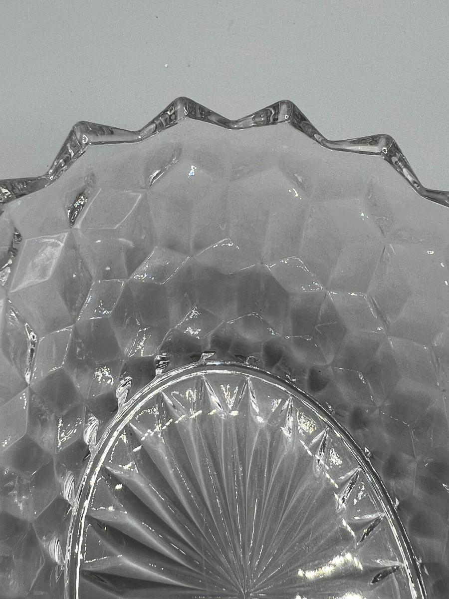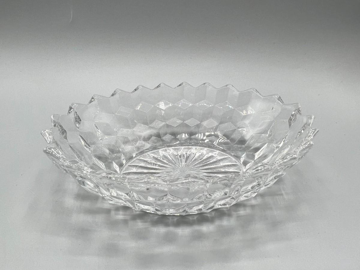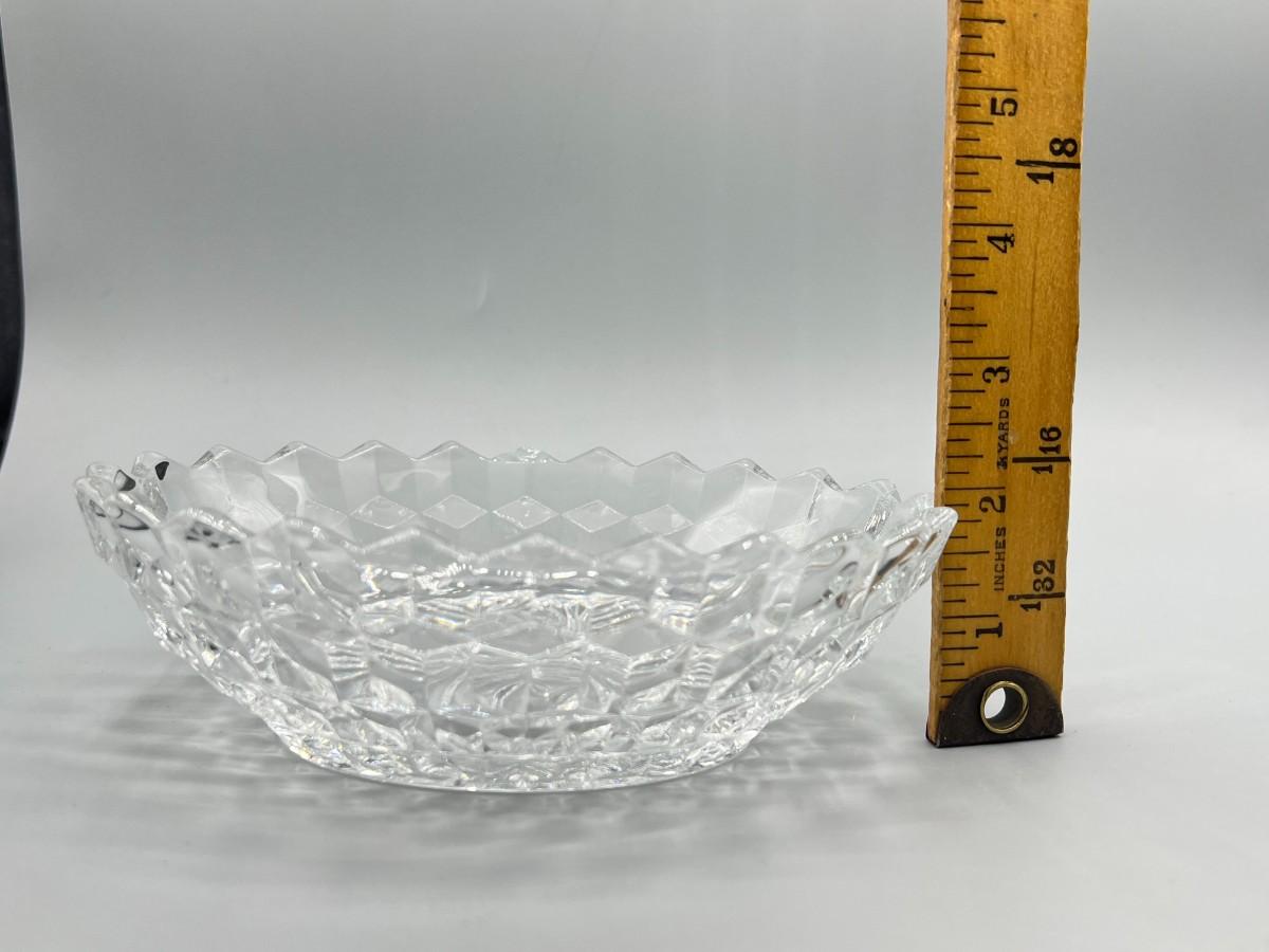 Retro Crystal Glass Jewelry Trinket Display Dish, there is no significant damage to the glass and is in good useable condition. Check pictures for more details and for sizing.