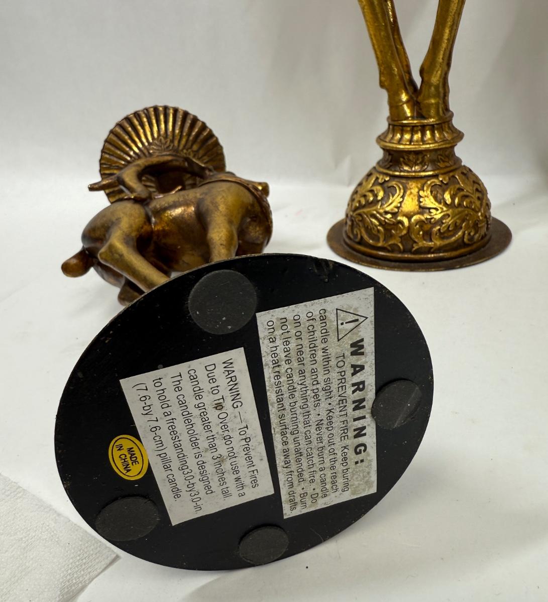 Lightweight resin painted to look like antique brass. Good condition. Approx. 16" tall.