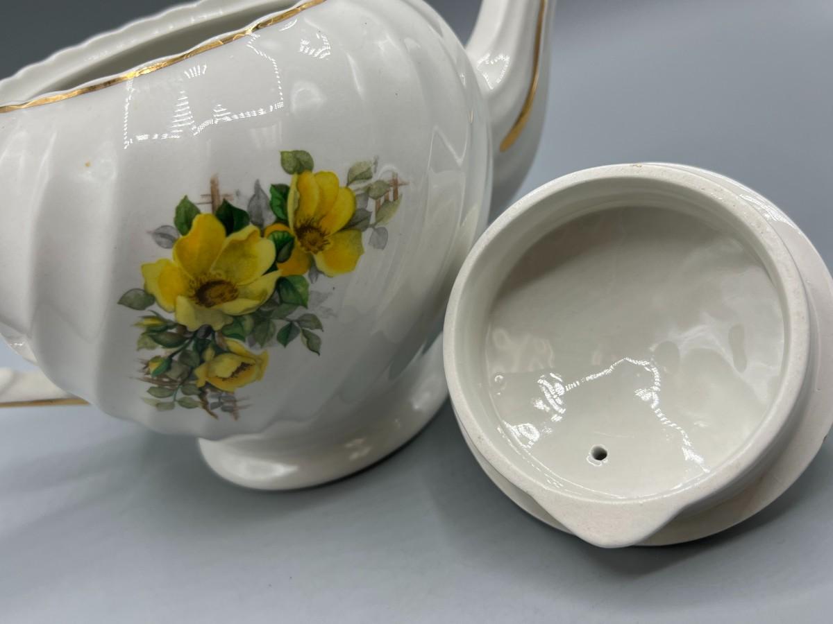 Retro Ellgreave England Ceramic Cottage Yellow Flower Teapot