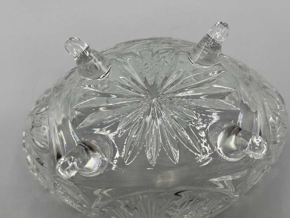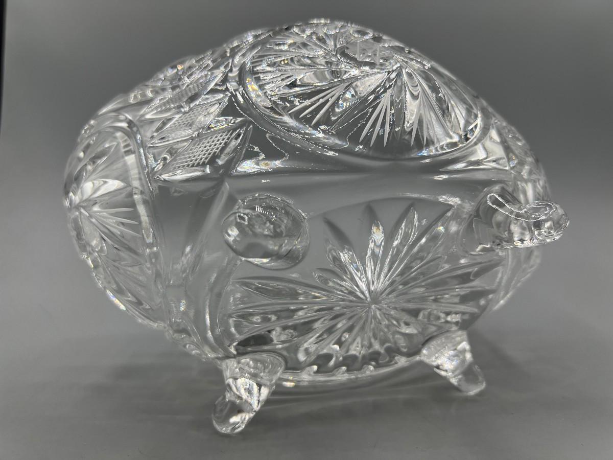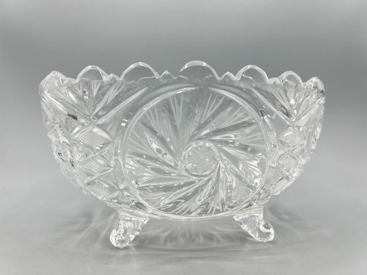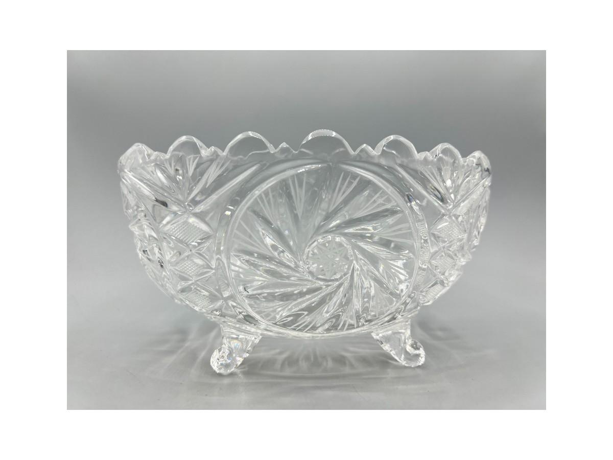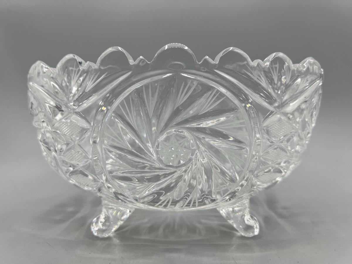 Retro Etched Crystal Glass Footed Oval Centerpiece Trinket Candy Dish Bowl
