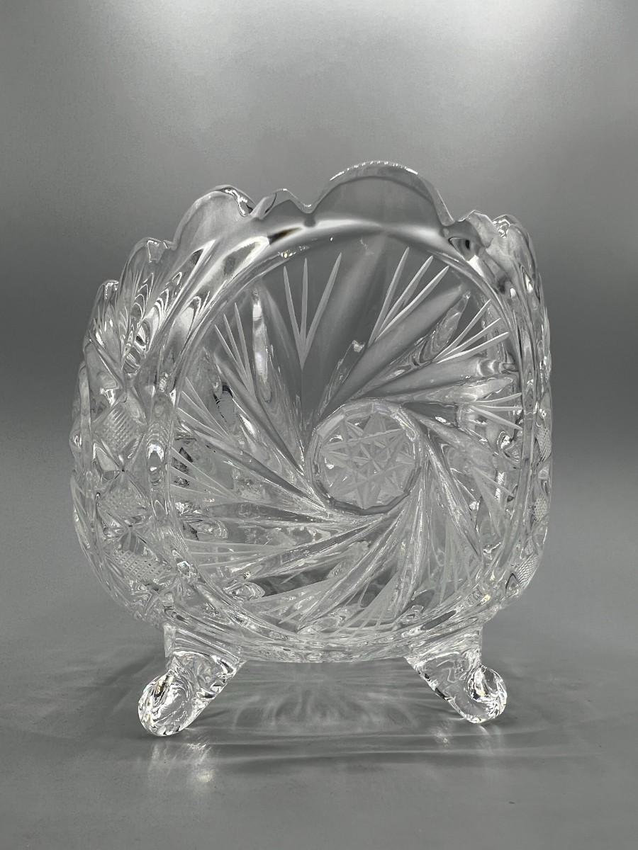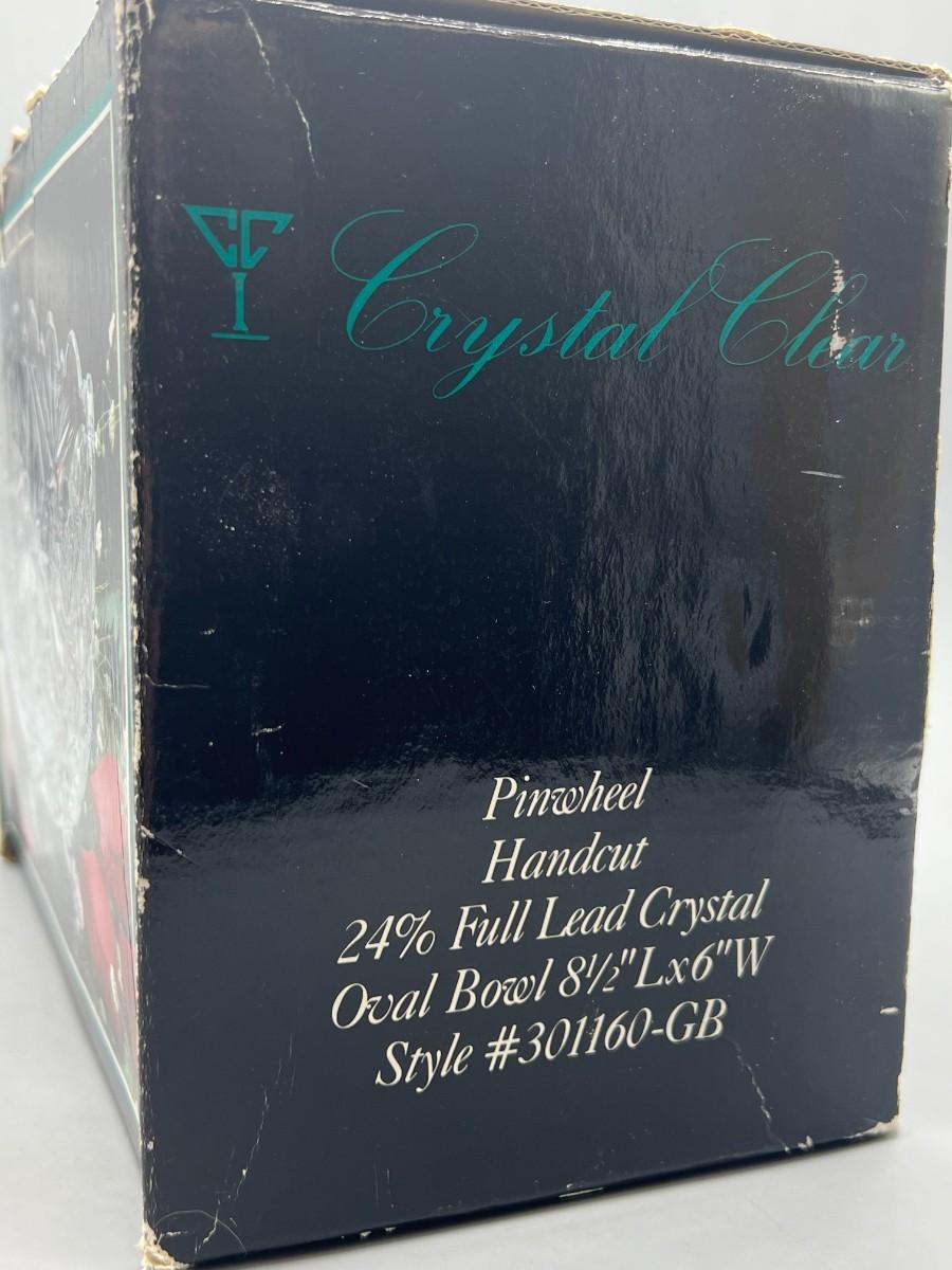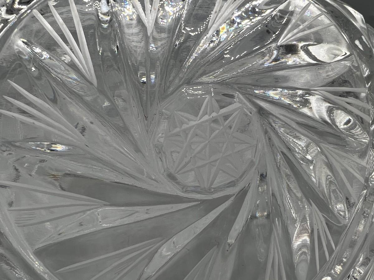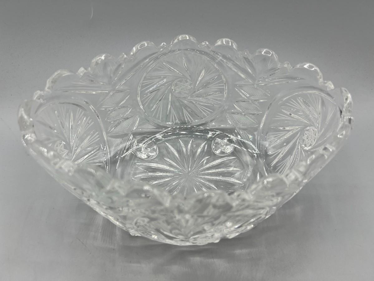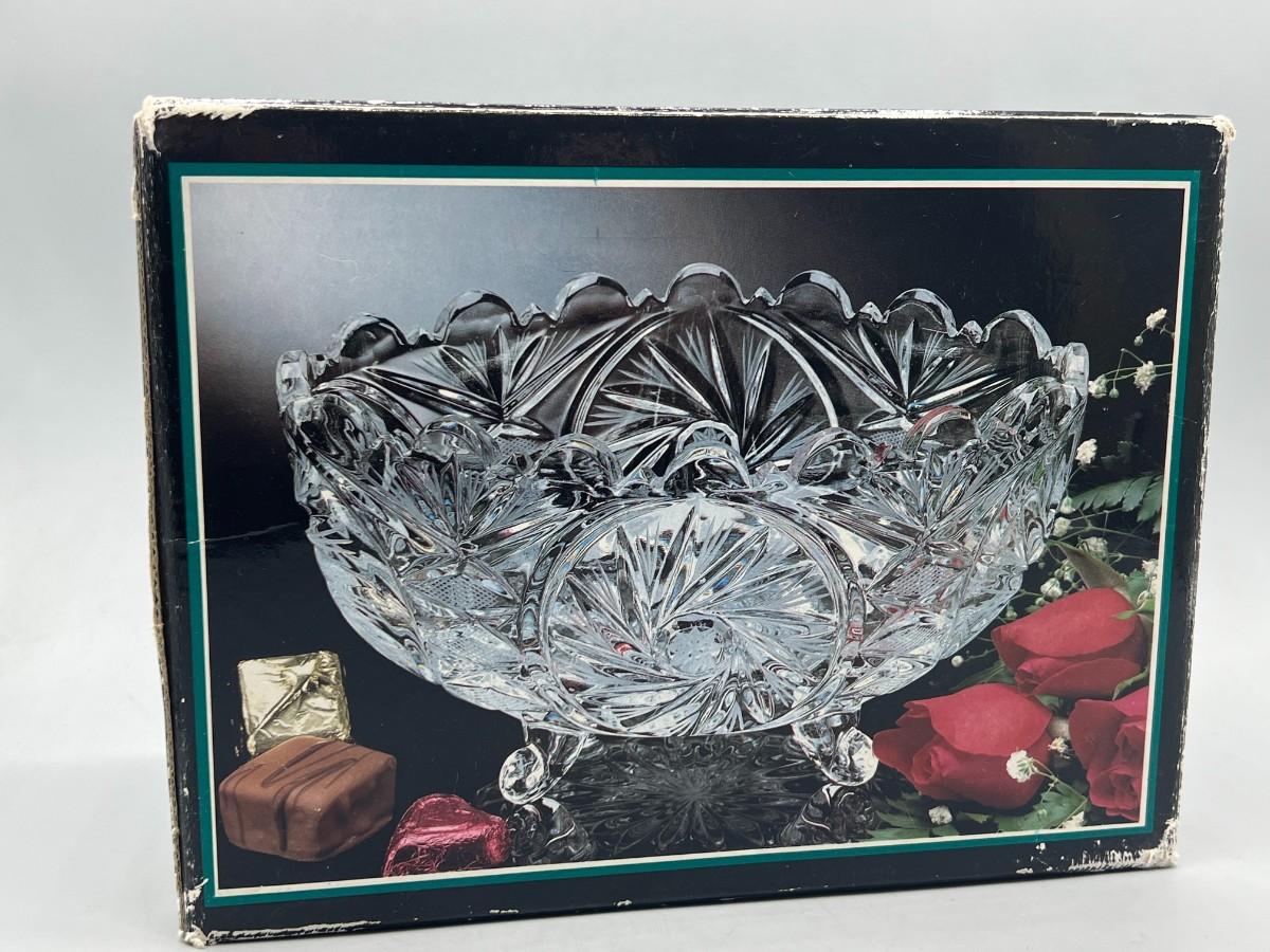 Retro Etched Crystal Glass Footed Oval Centerpiece Trinket Candy Dish Bowl