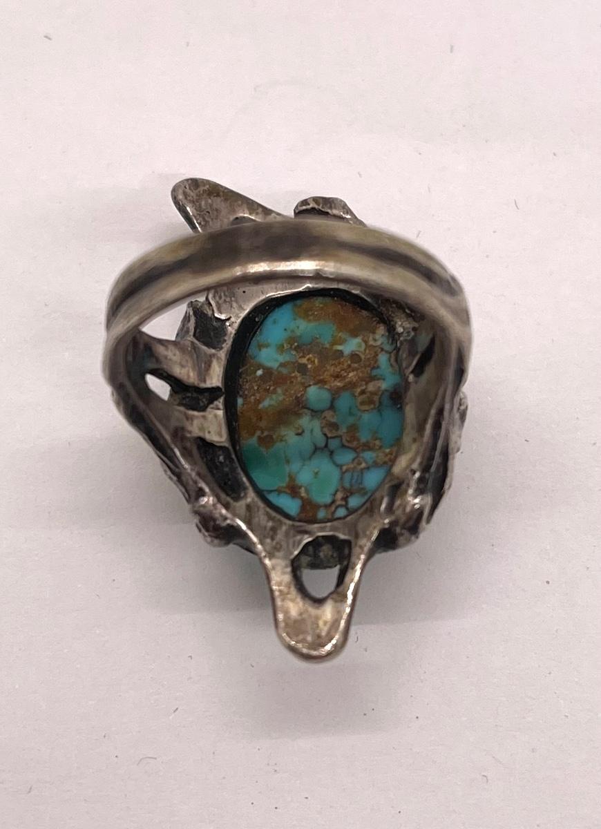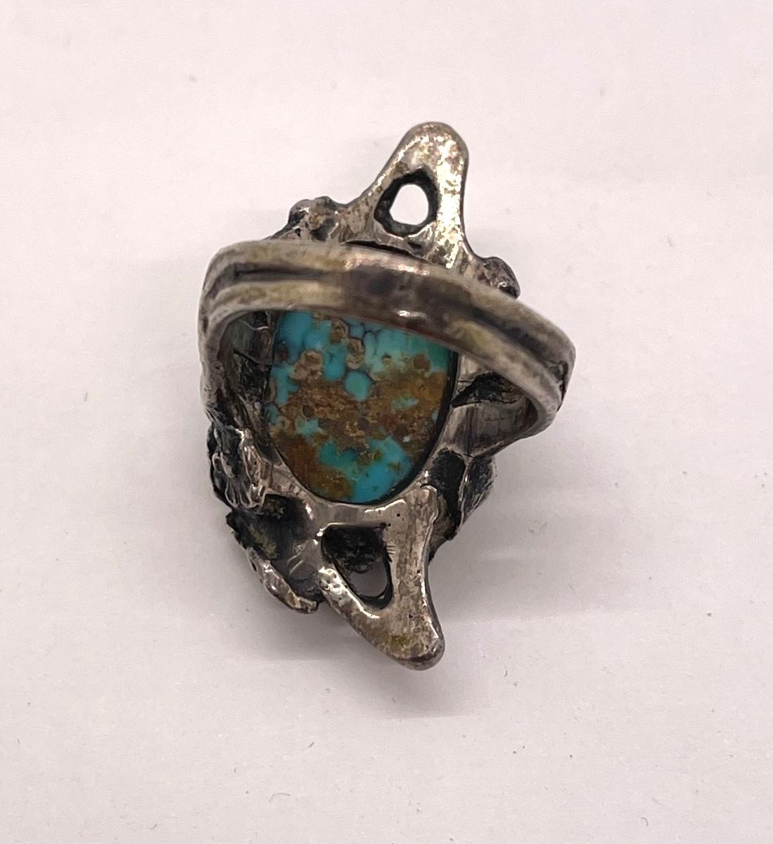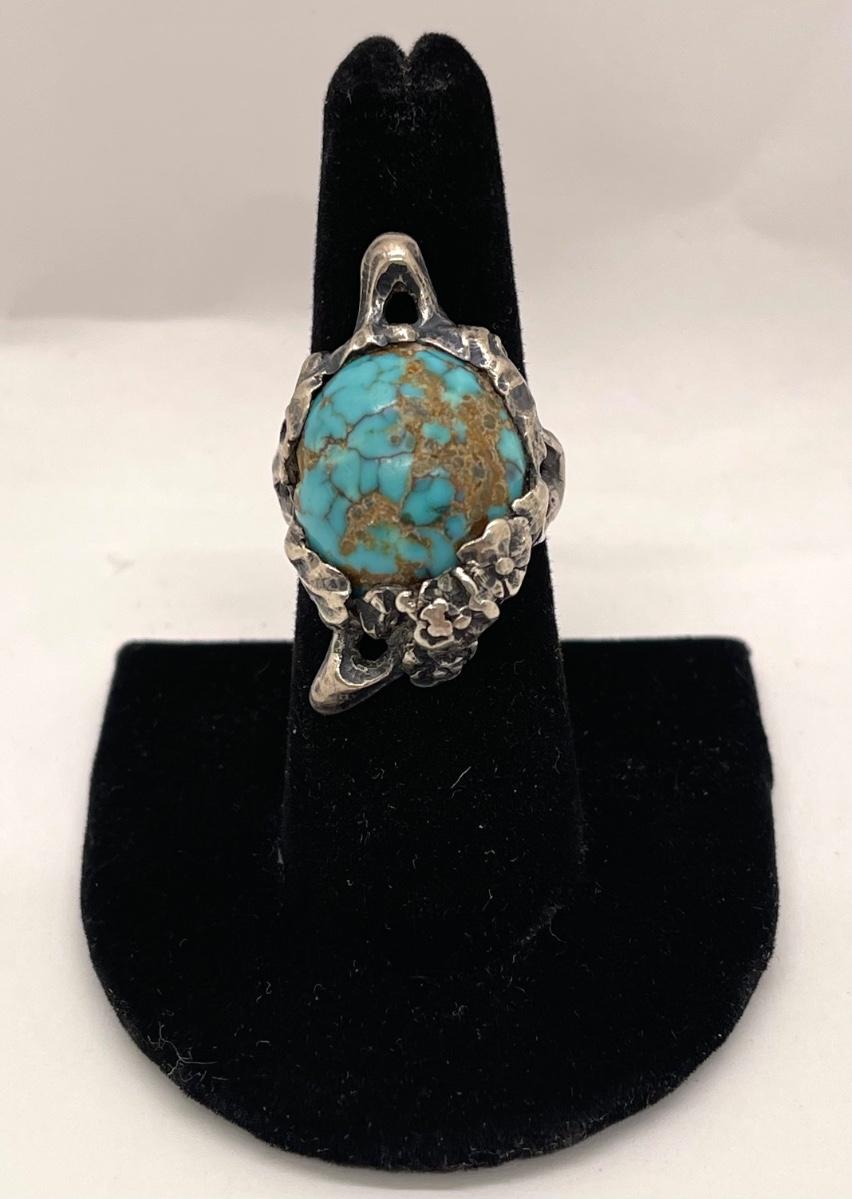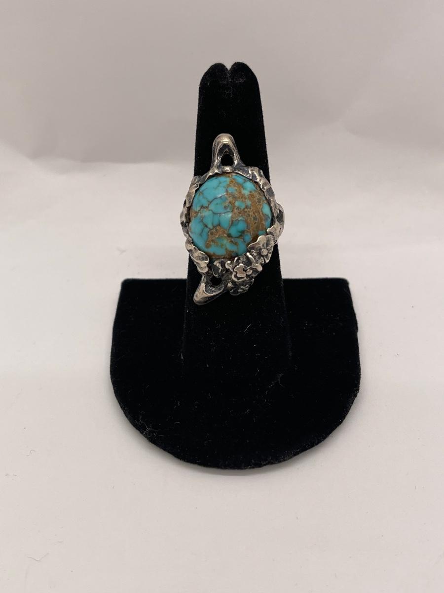 Retro Fashion Jewelry Ring, antiqued silver tone with faux turquoise