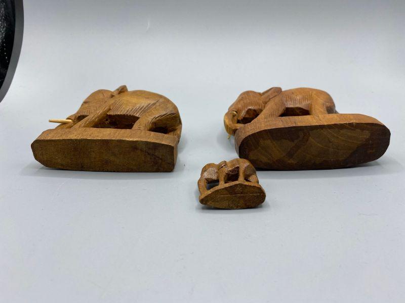 Retro Folk Art Boho Mid Century Carved Wood Elephant Trio YD#011-1120-00205