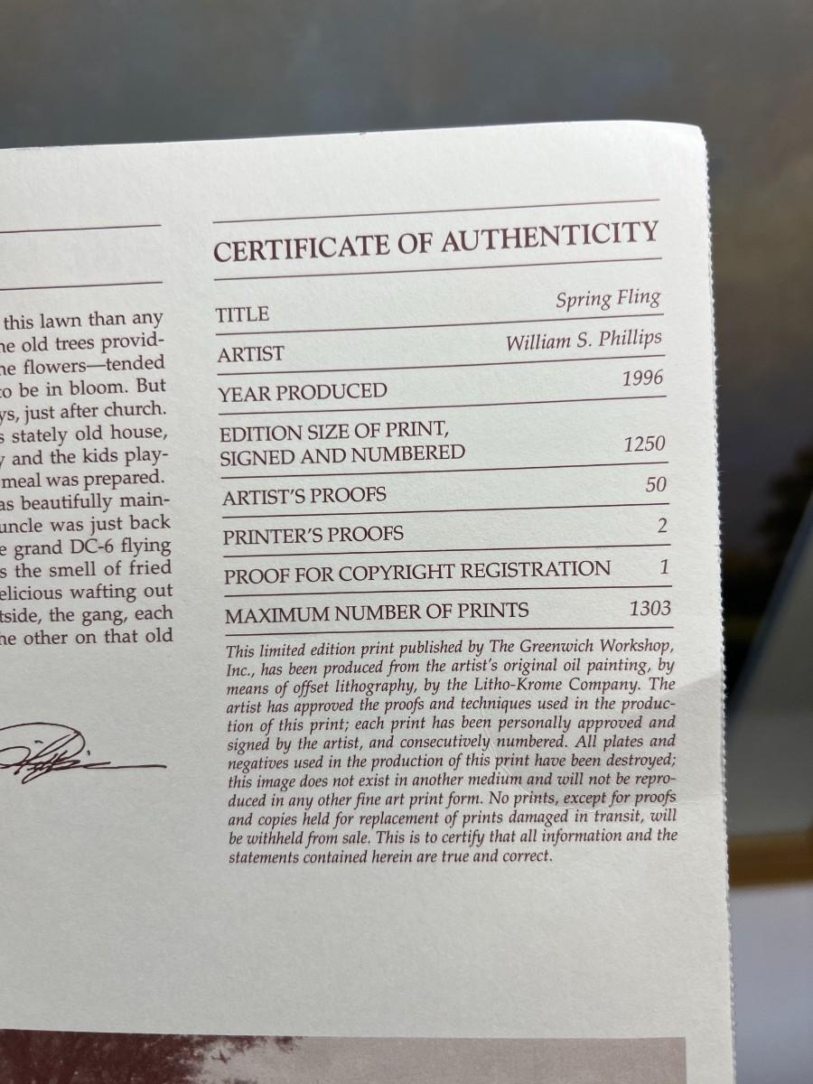 Retro Framed Americana Art Print Spring Fling William S. Phillips with COA