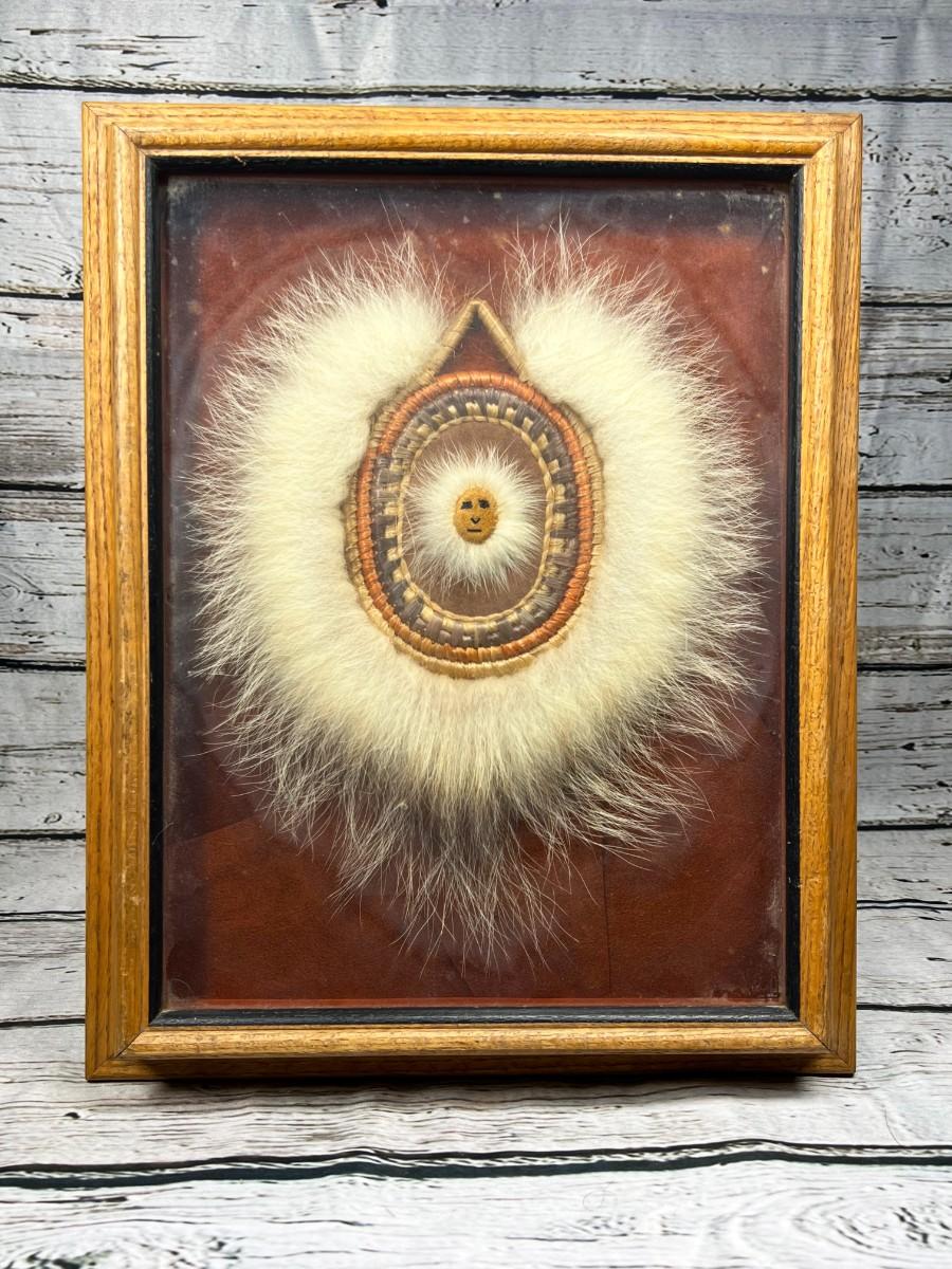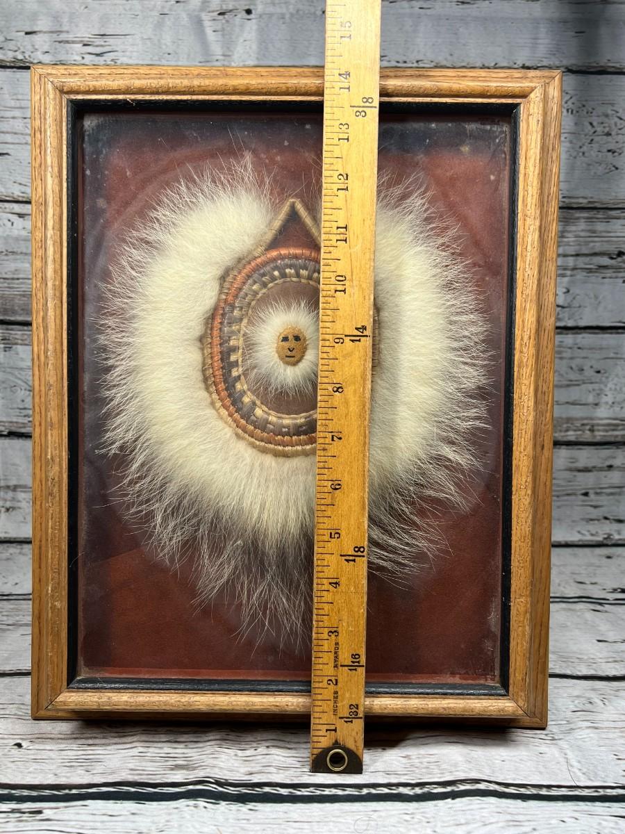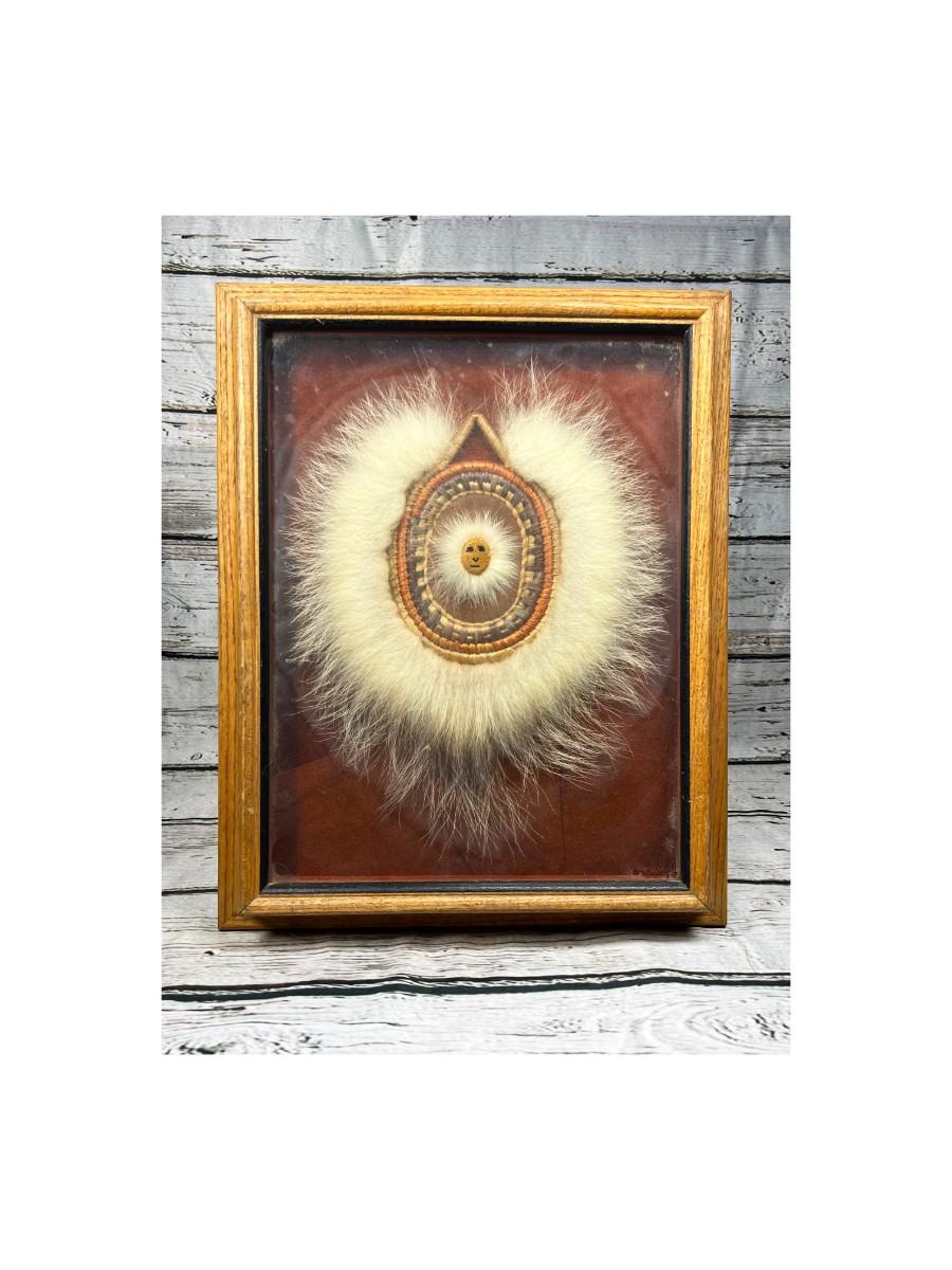 Retro Framed Handmade Woven Indigenous Effigy Jewelry Piece