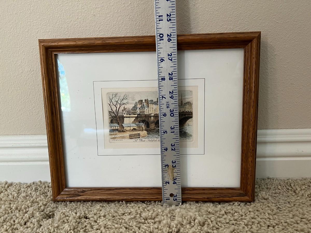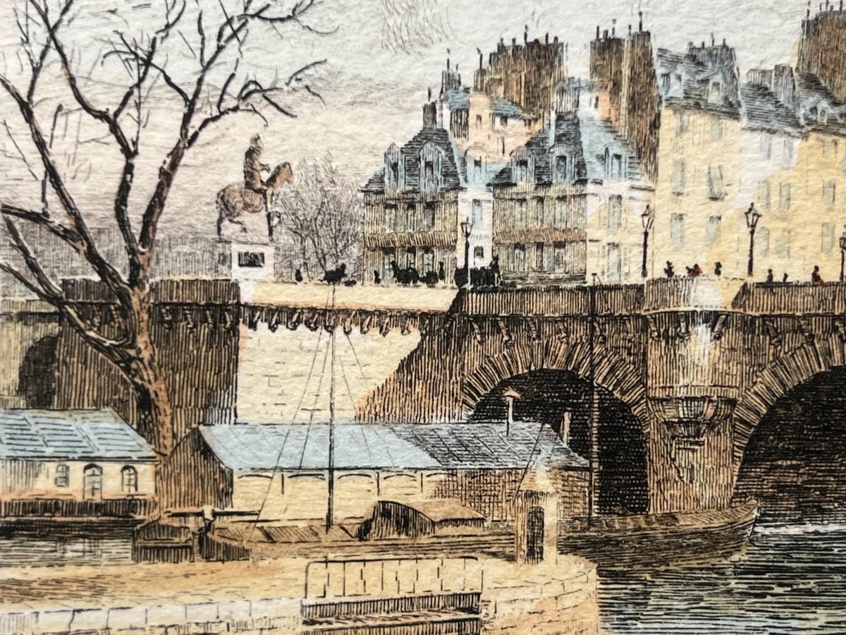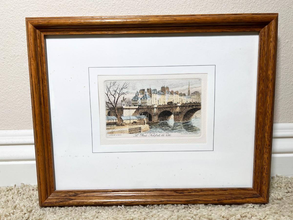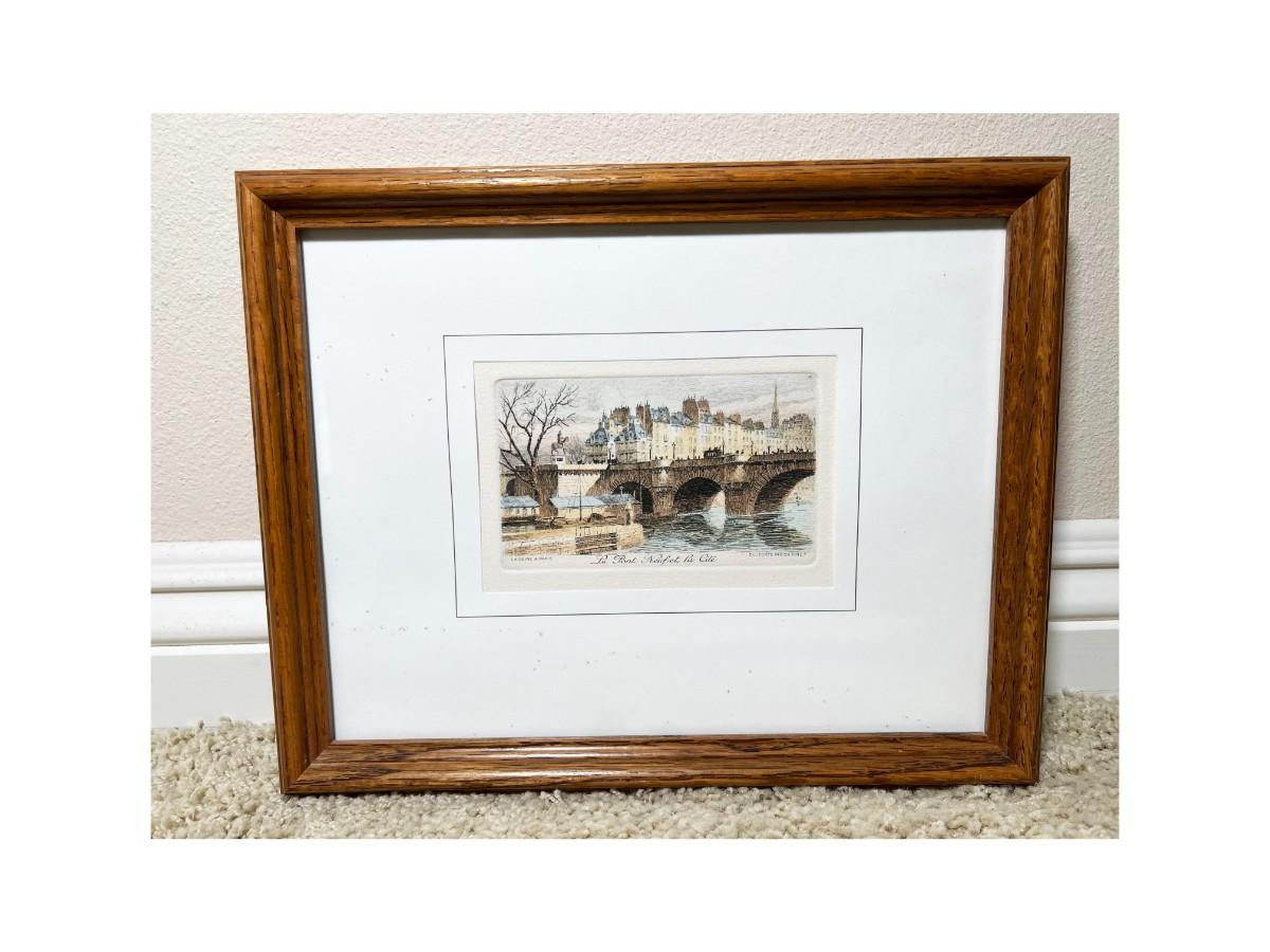 Retro Framed Paris River Bridge Scene Pont Neuf Small Art Print Etching