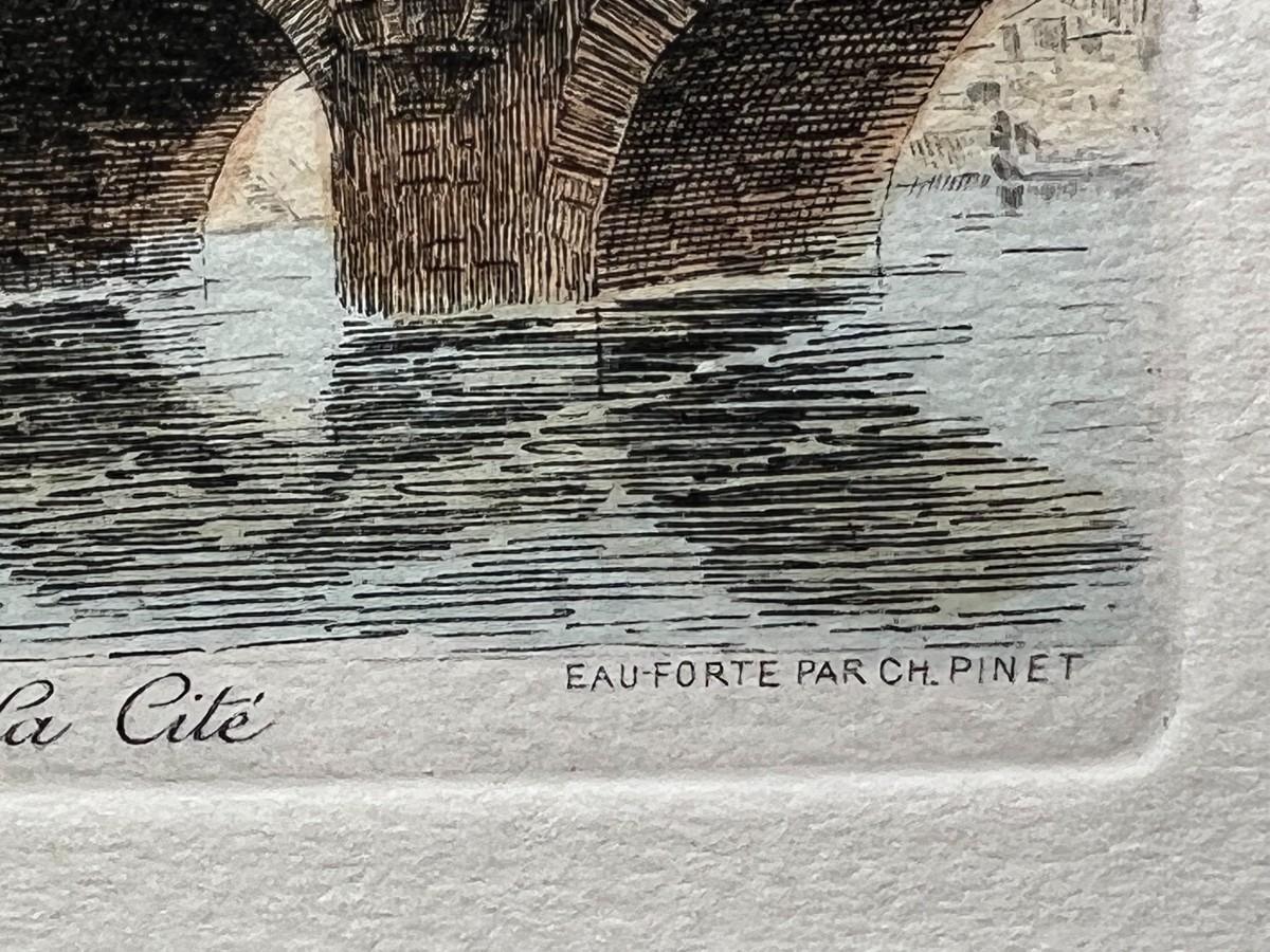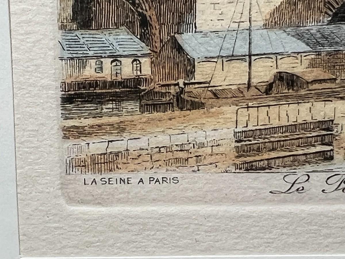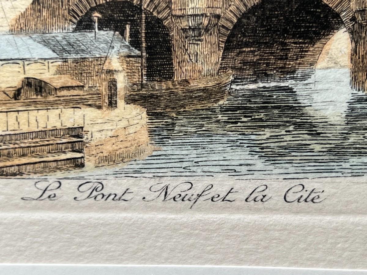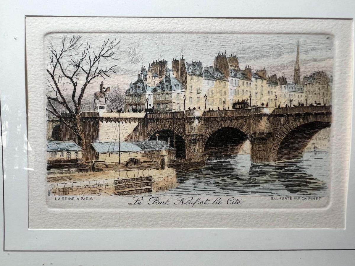 Retro Framed Paris River Bridge Scene Pont Neuf Small Art Print Etching