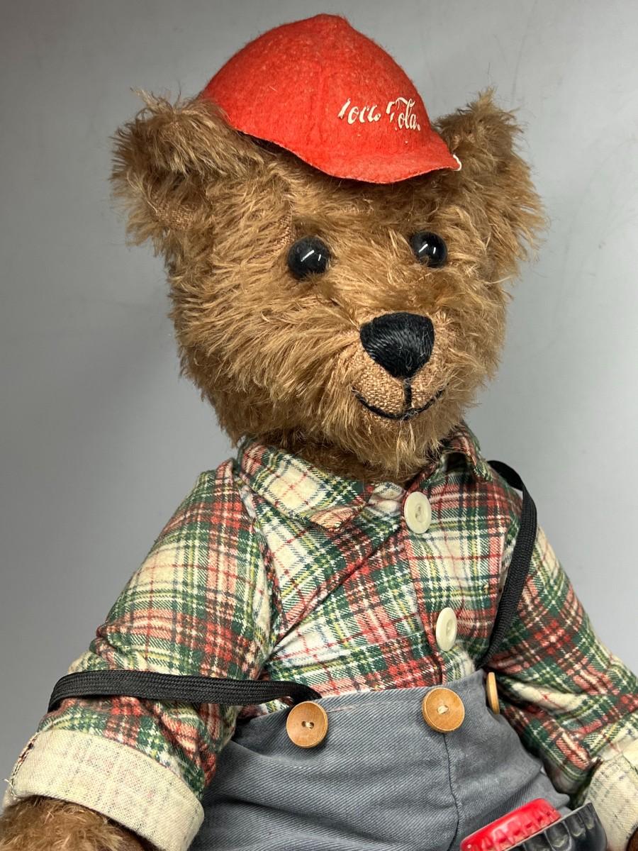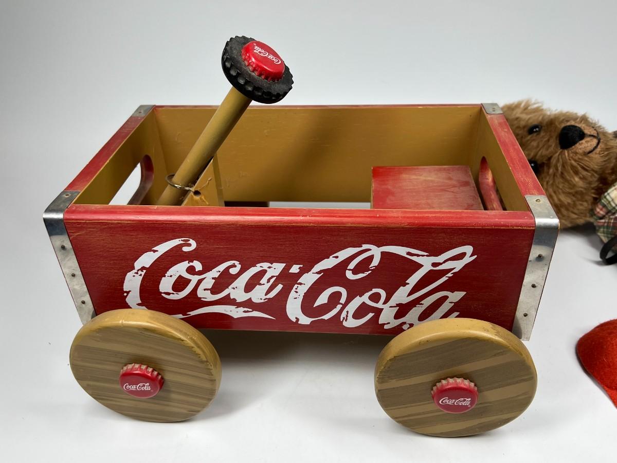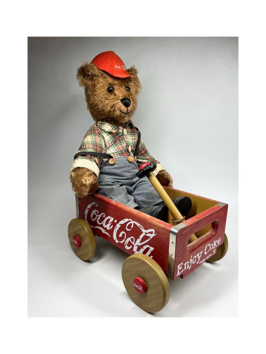 Retro Franklin Mint Heirloom Coca Cola Teddy Bear Collectible Cubby & Wagon