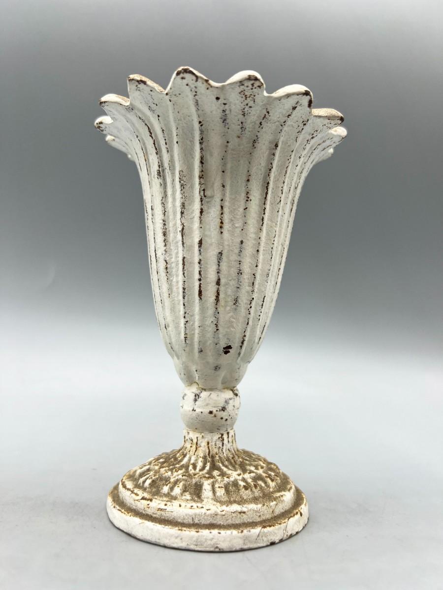 Retro Garden Yard Art White Metal Flower Bud Vase