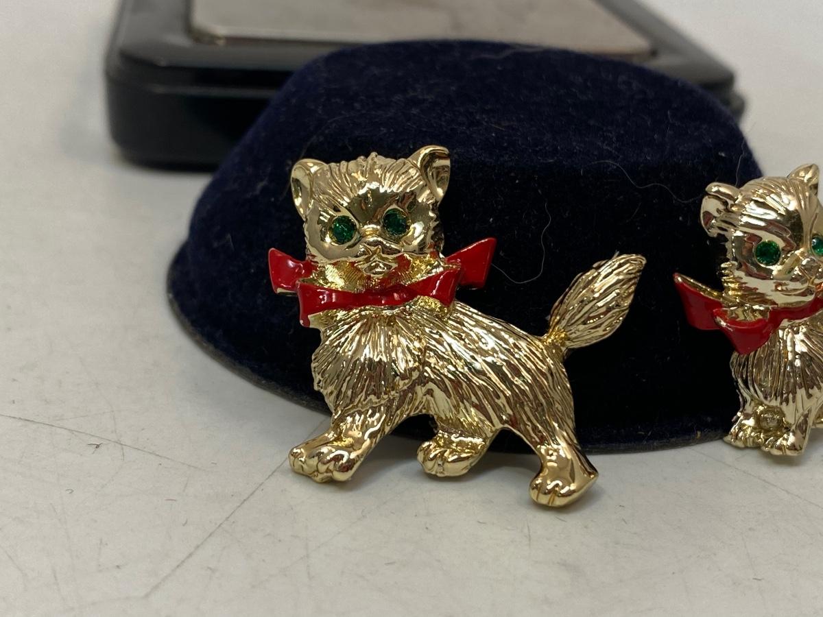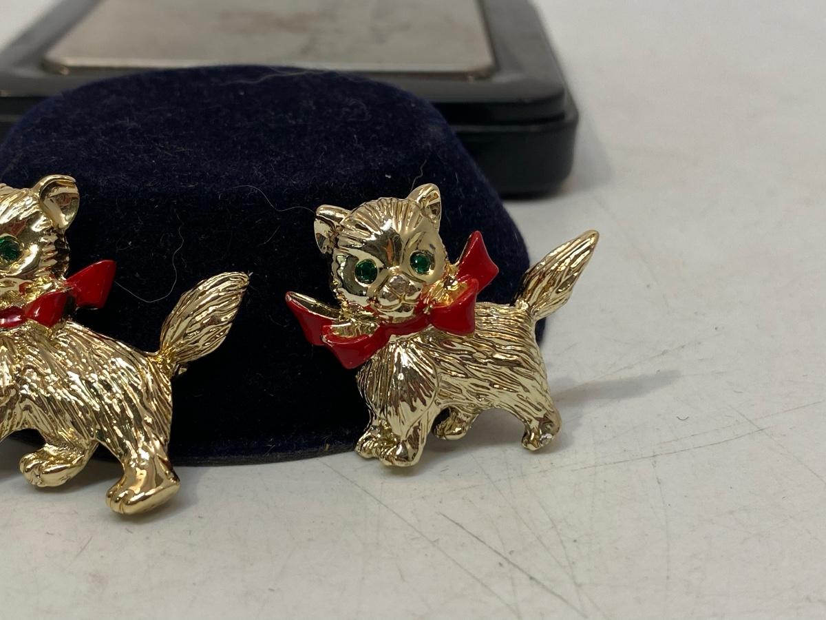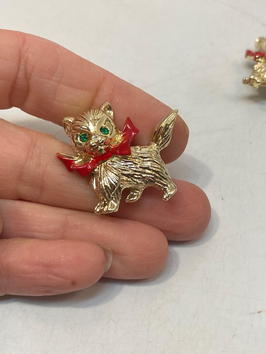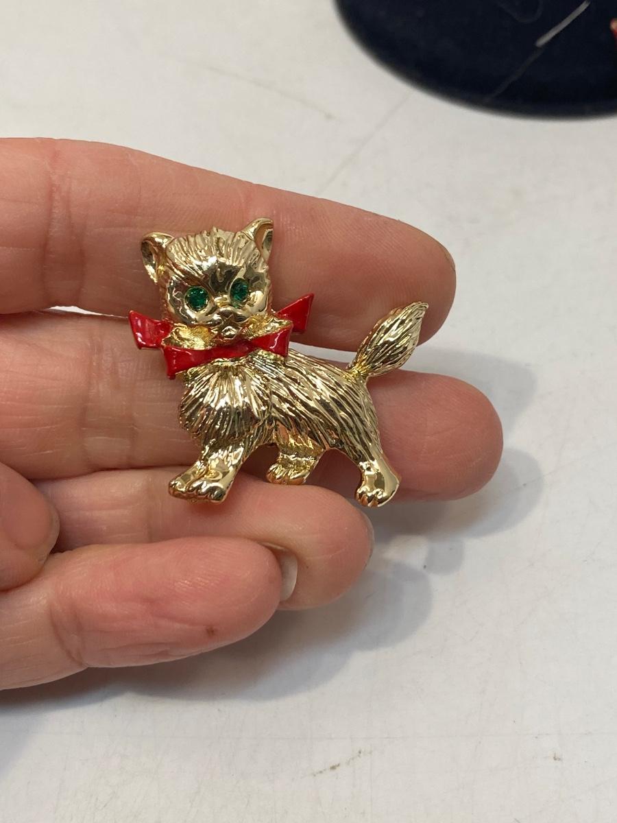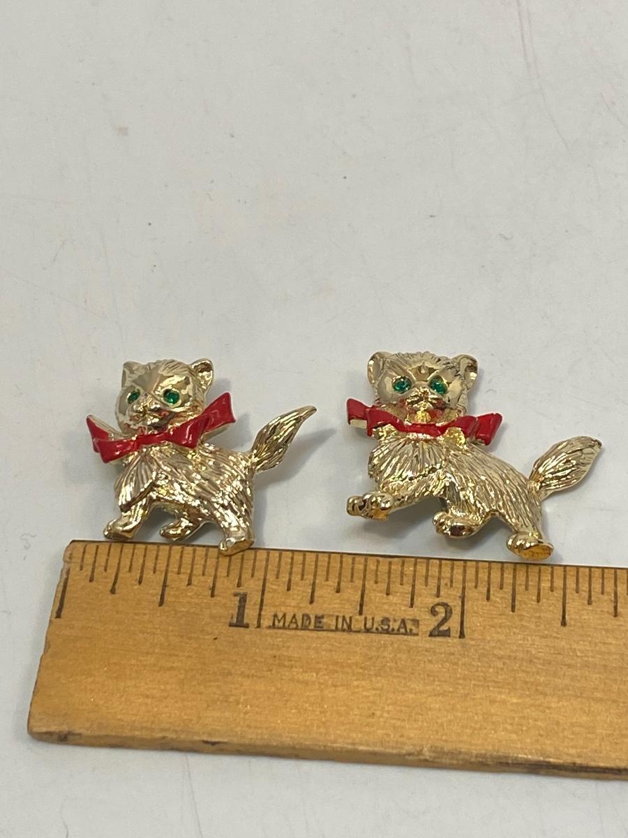 Retro Gerry's Cat Brooch with Green Jewel Eyes Matching Costume Jewelry Pins