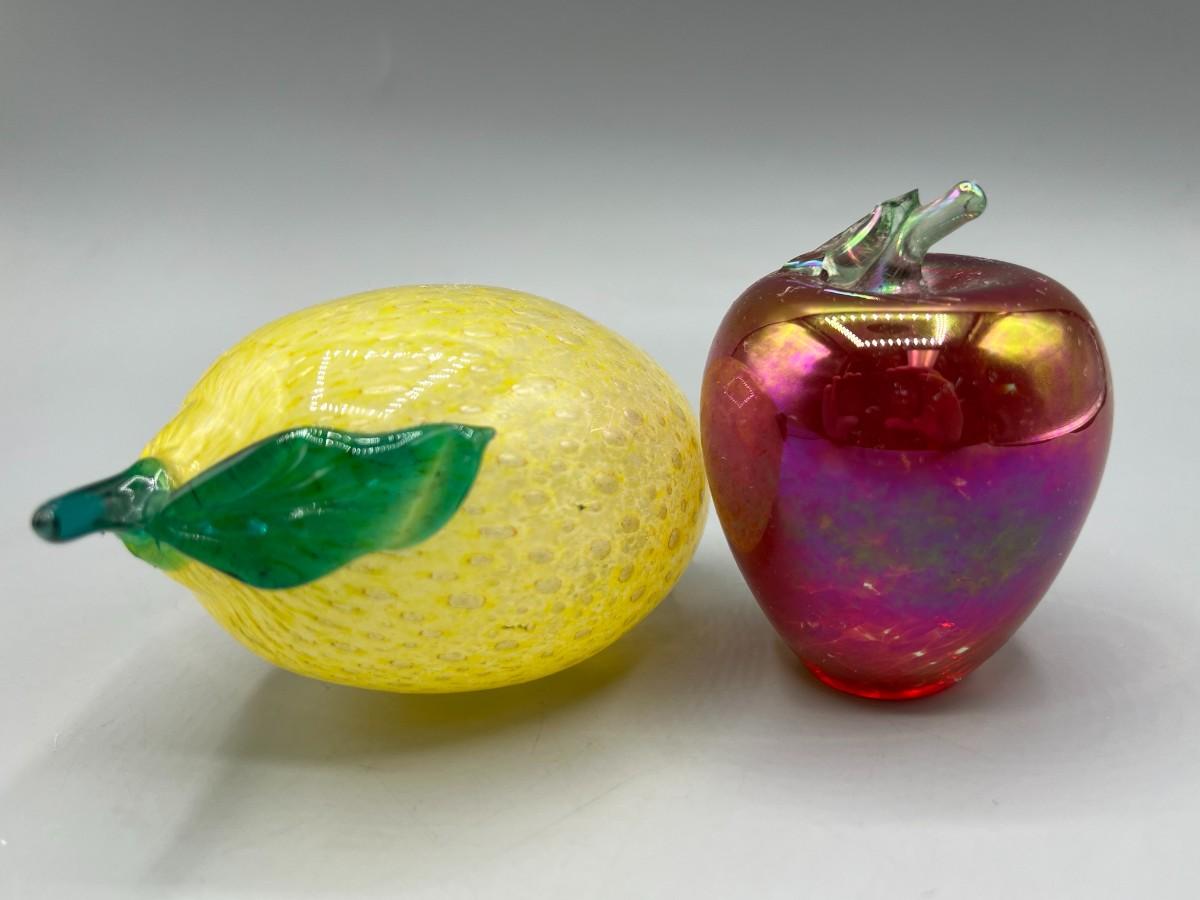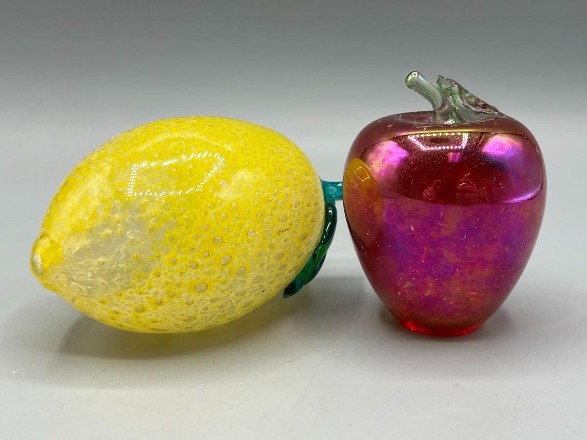 Retro Glass Art Fruit Kitchenware Yellow Lemon & Red Apple Decor