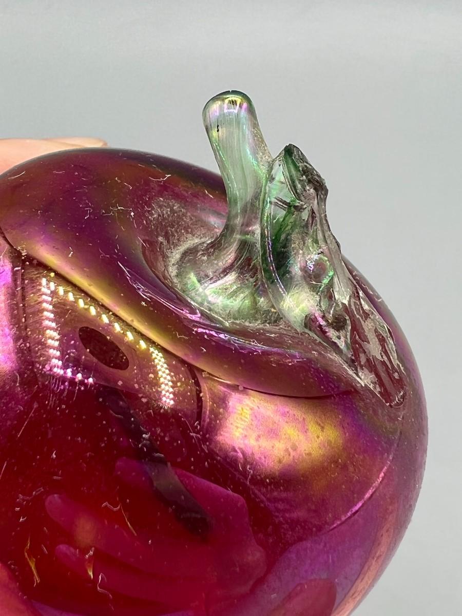 The green leaf stem of the apple has been chipped off, but there is no other significant damage and is in overall good collectible or displayable condition. Check pictures for more details and for sizing.