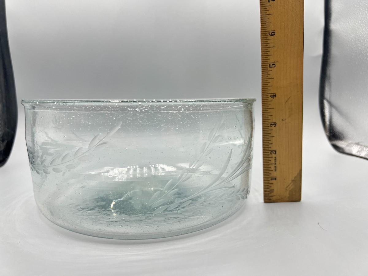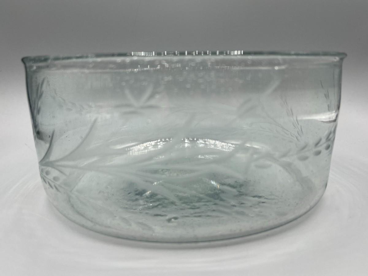 Retro Glassware Laurel Wreath Design Cooking Serving Bowl, there is some light wear, but there is no significant damage to the glass and is in good useable condition. Check pictures for more details and for sizing.