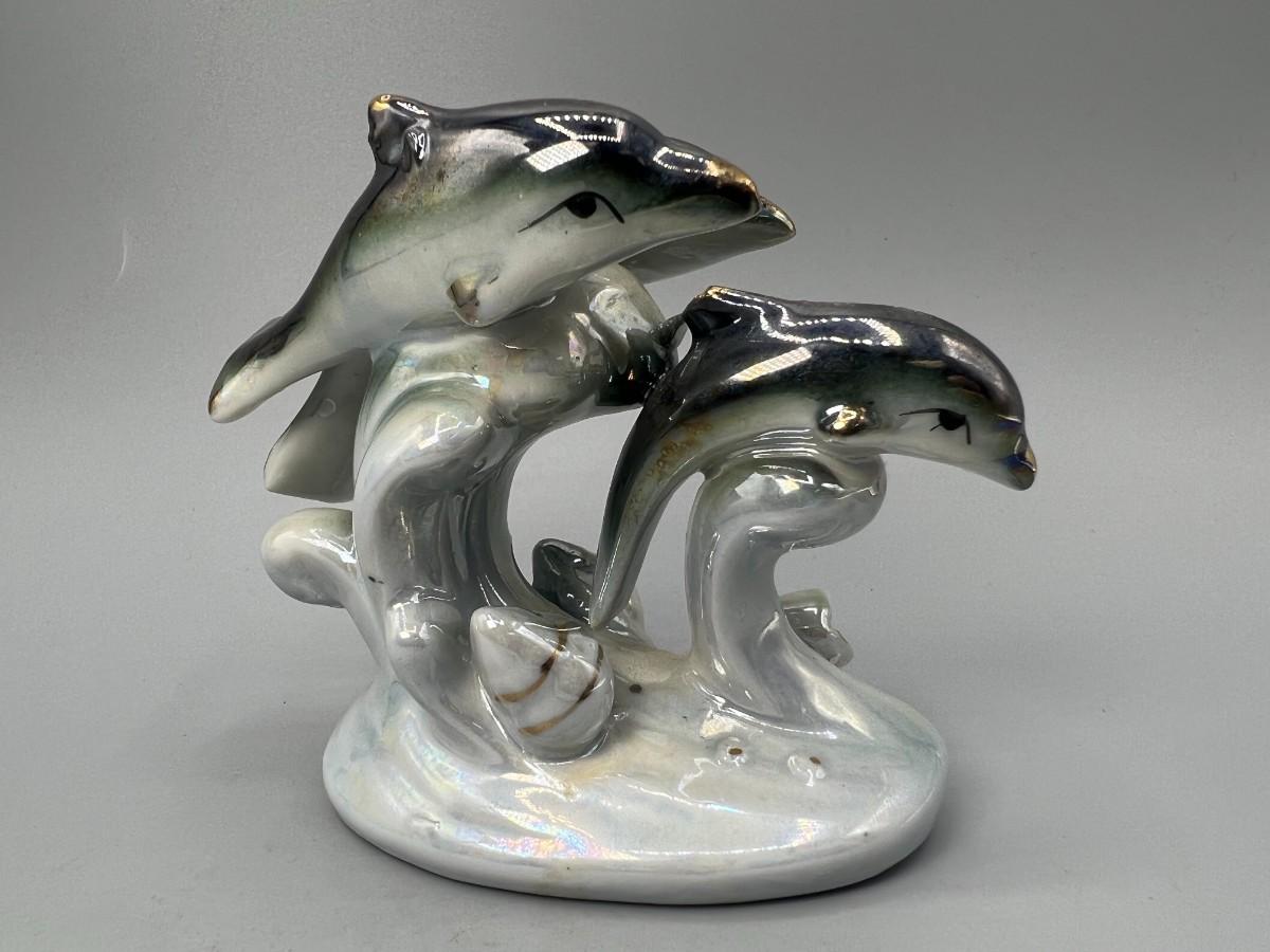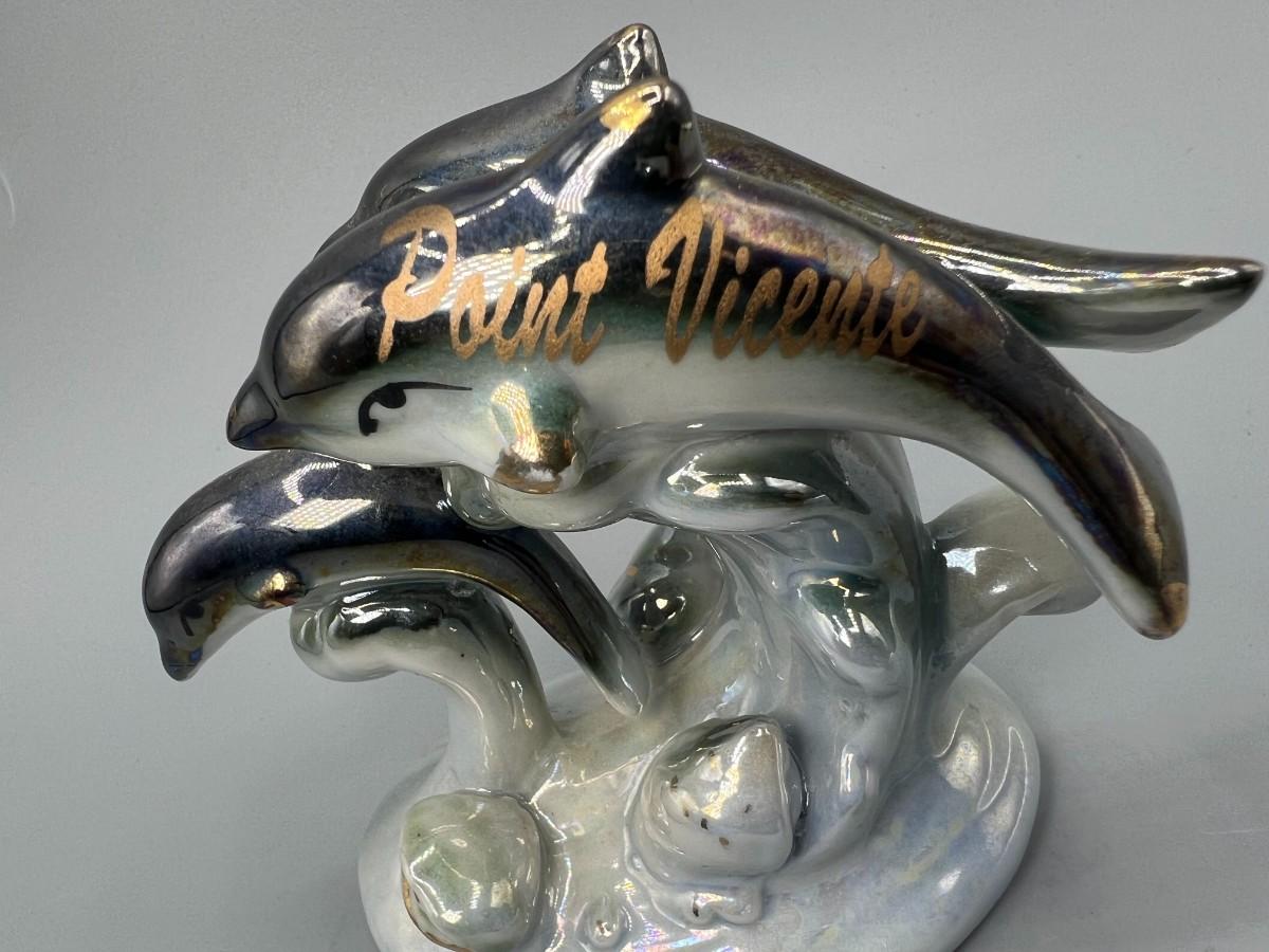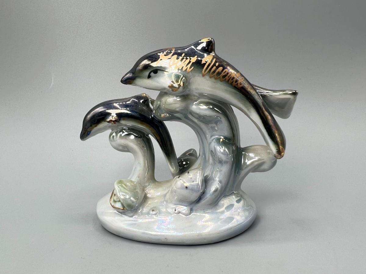 Retro Glazed Ceramic Point Vicente Wave Surfing Dolphins Figurine, there is no significant damage to the figurine and is in good displayable condition, Check pictures for more details and for sizing,