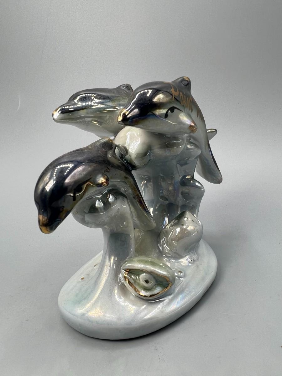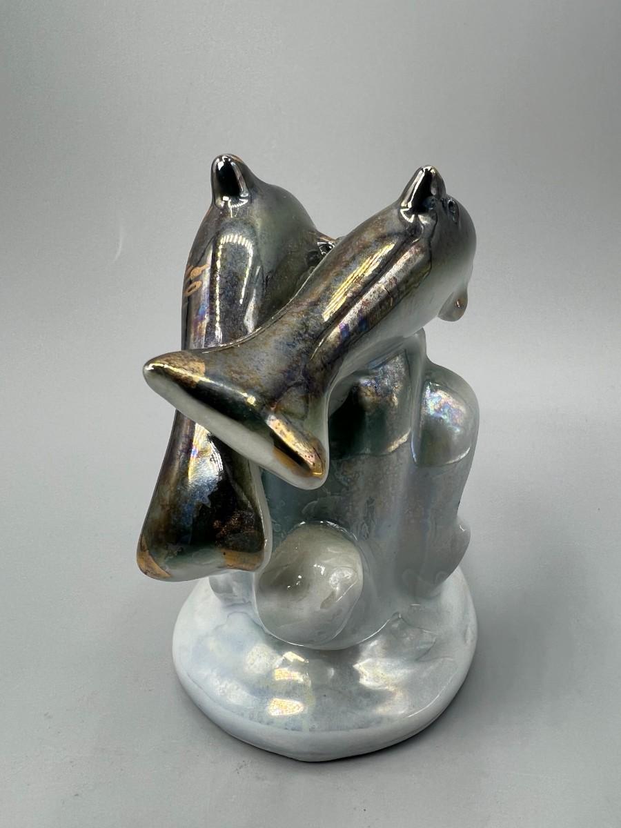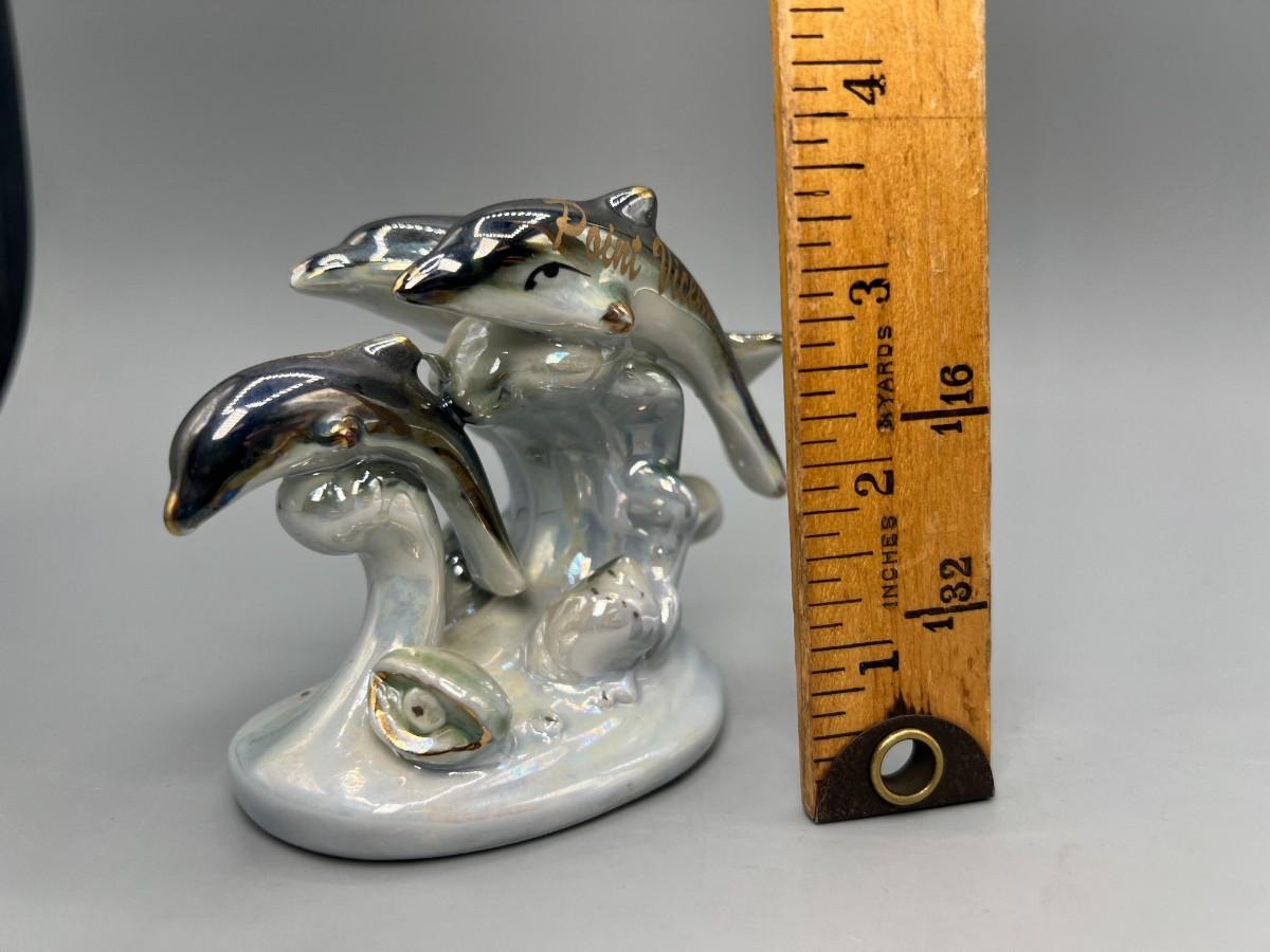 Retro Glazed Ceramic Point Vicente Wave Surfing Dolphins Figurine, there is no significant damage to the figurine and is in good displayable condition, Check pictures for more details and for sizing,