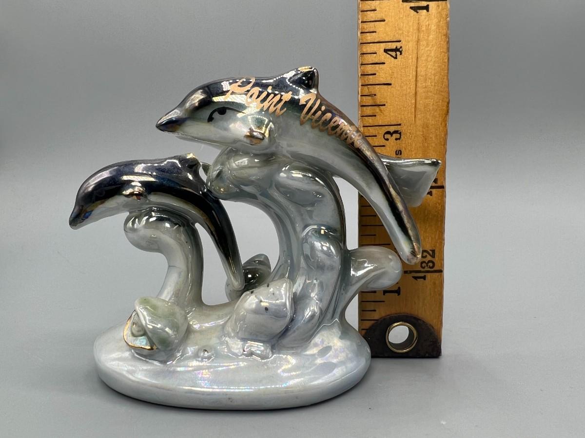 Retro Glazed Ceramic Point Vicente Wave Surfing Dolphins Figurine