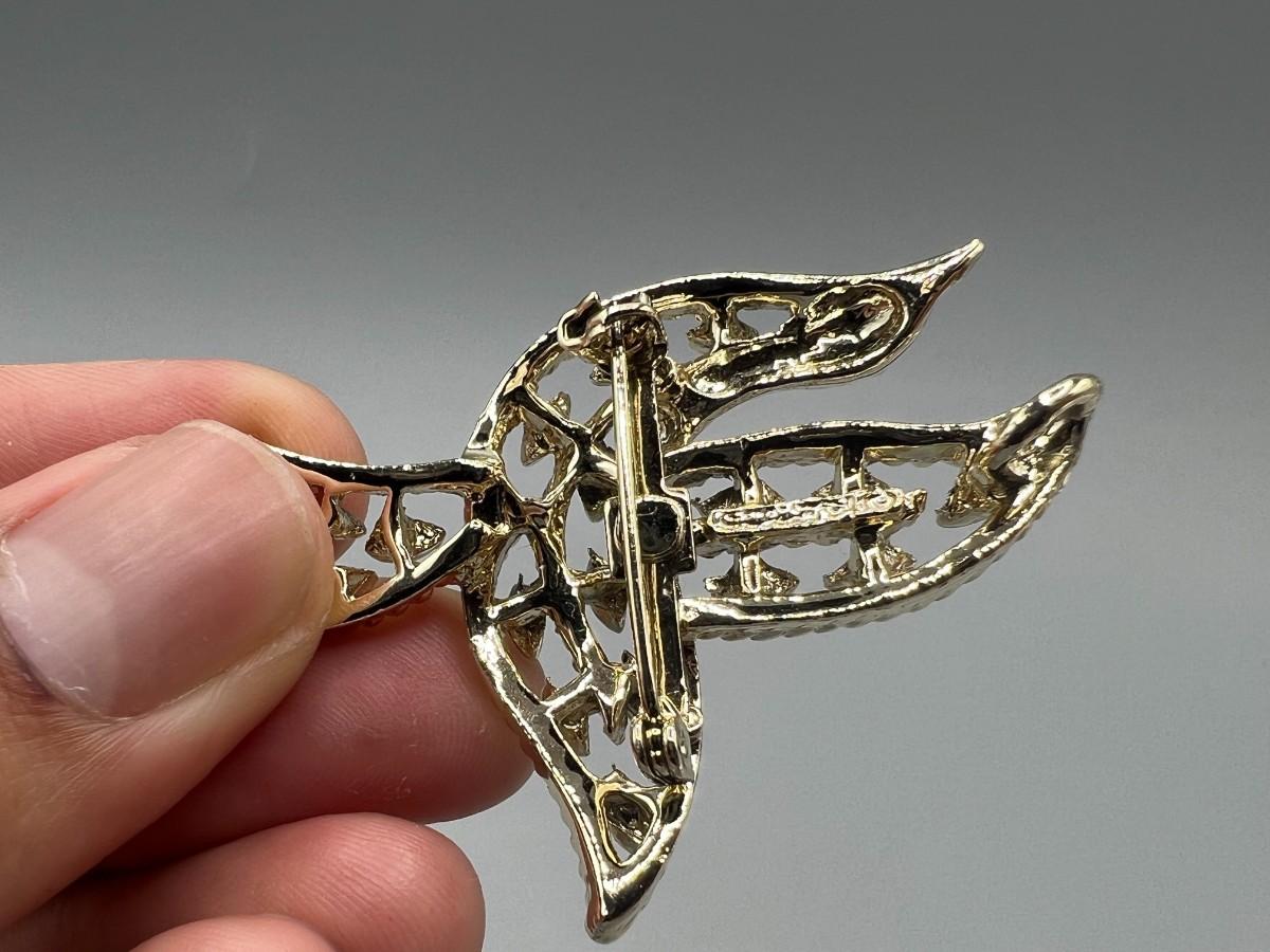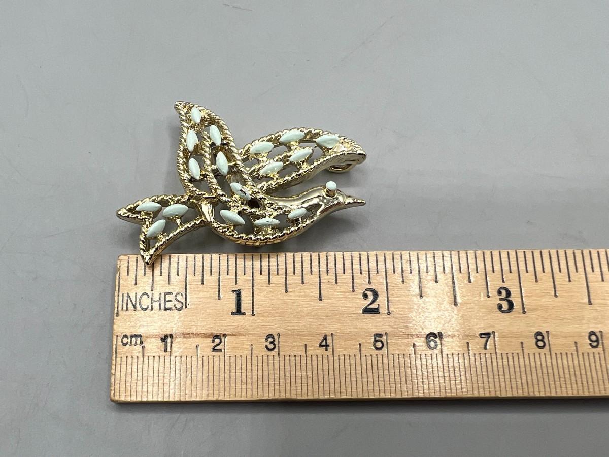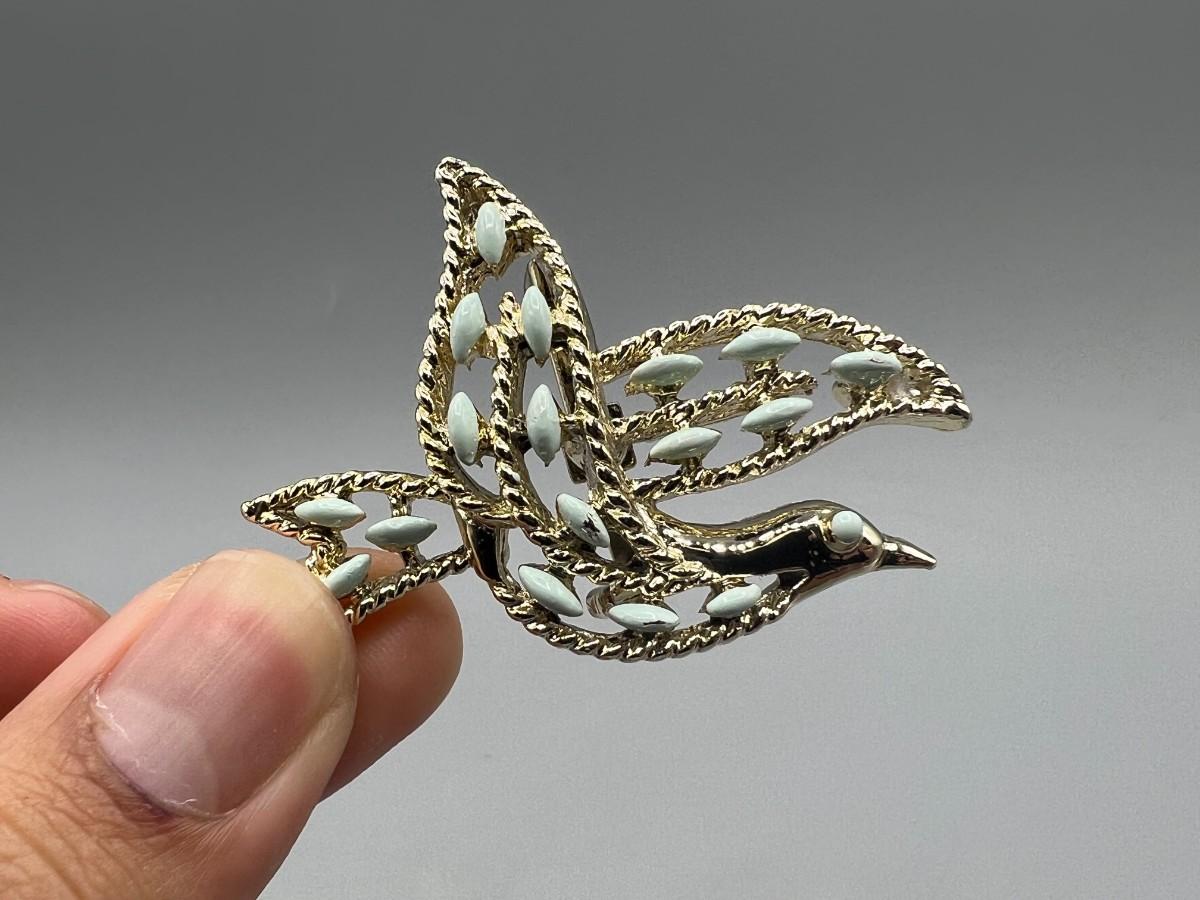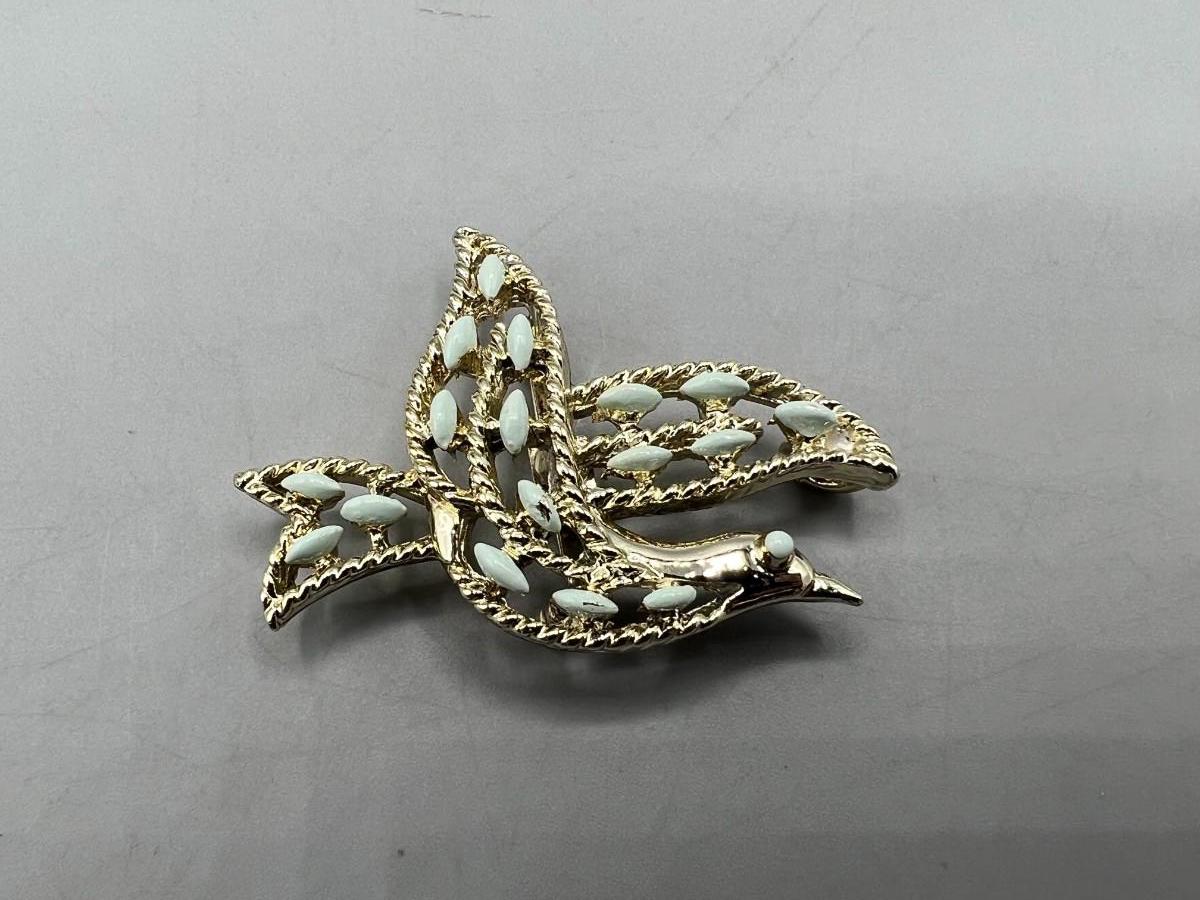 Retro Gold Tone Enamel Bird Figural Brooch Jewelry Pin