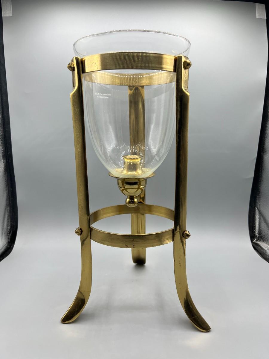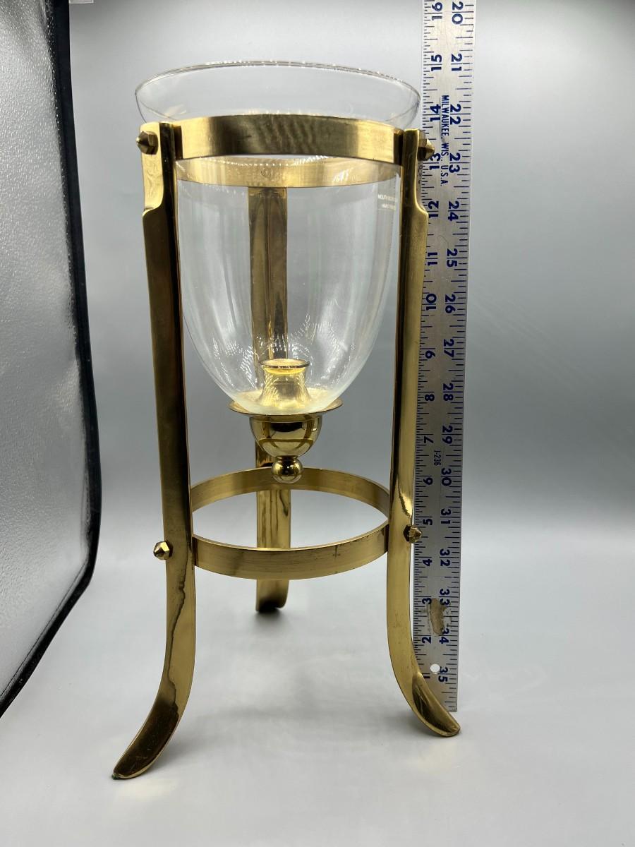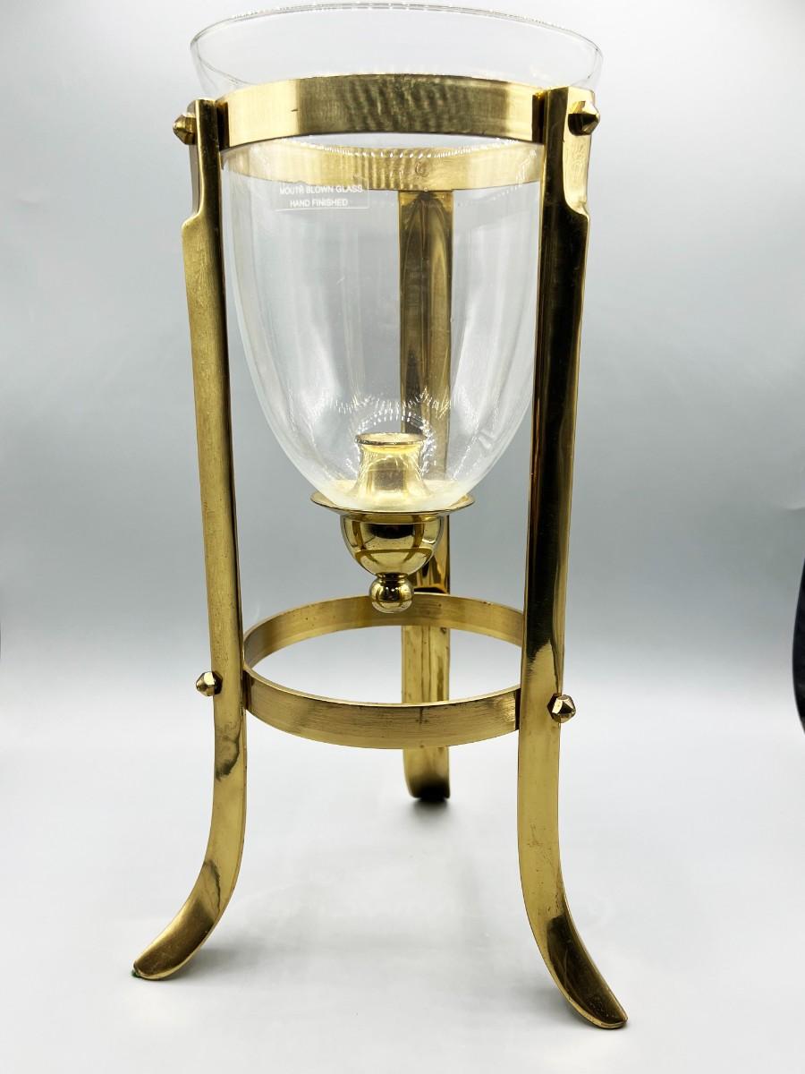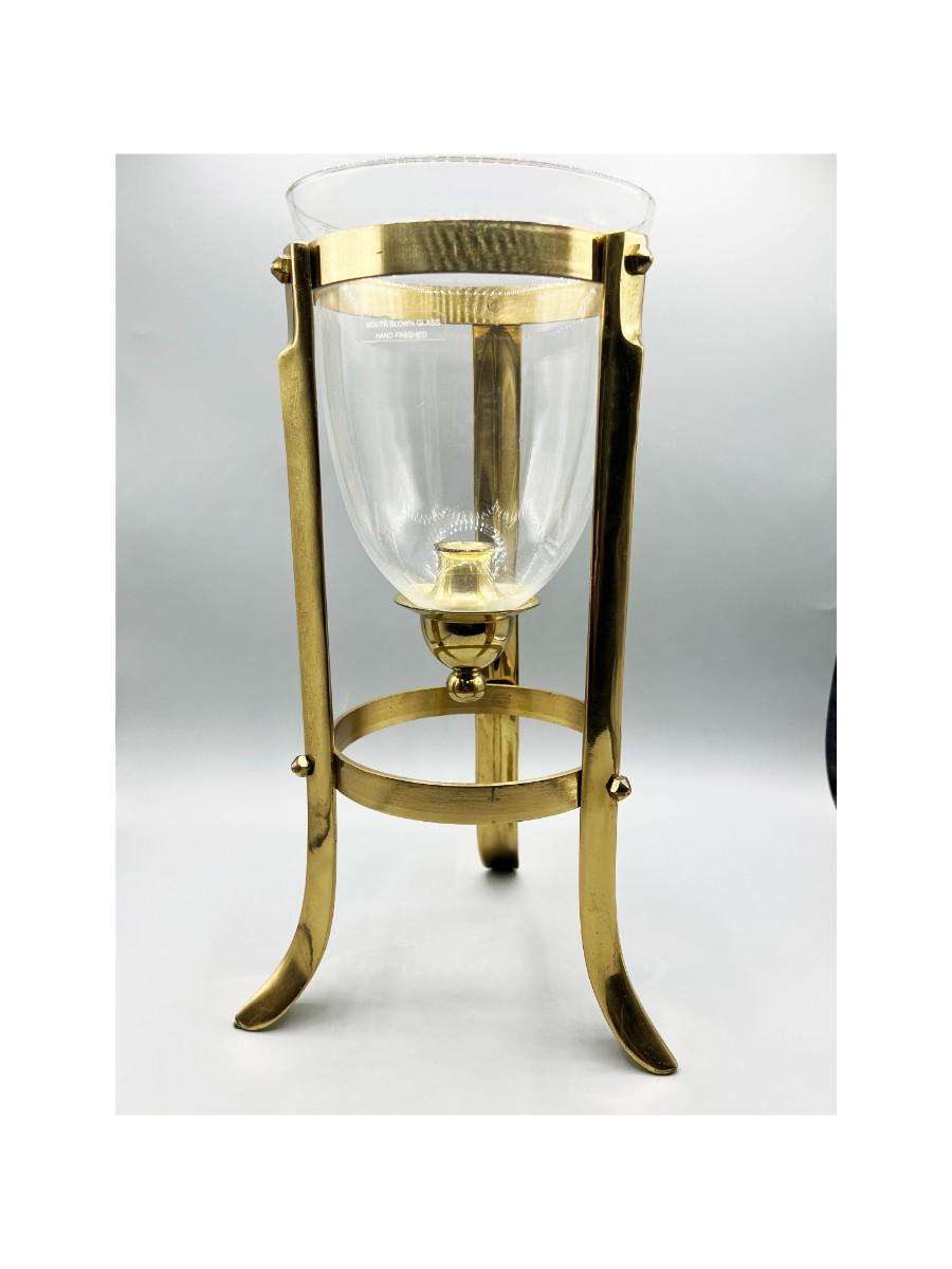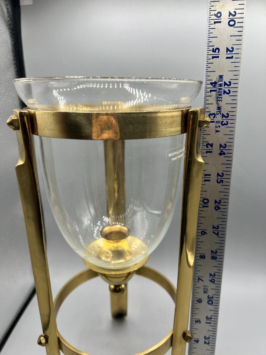 Retro Hand Blown Glass Gold Metal Single Candle Display Holder