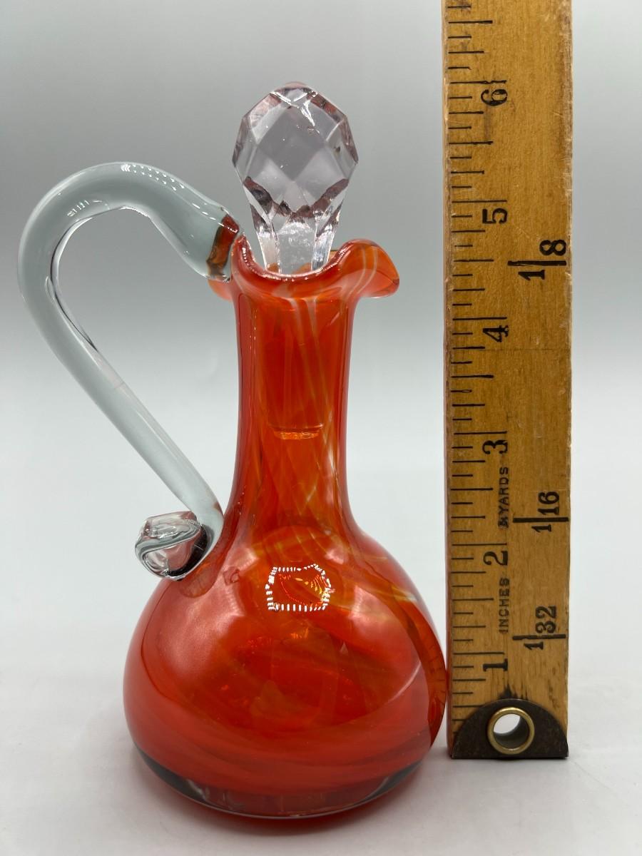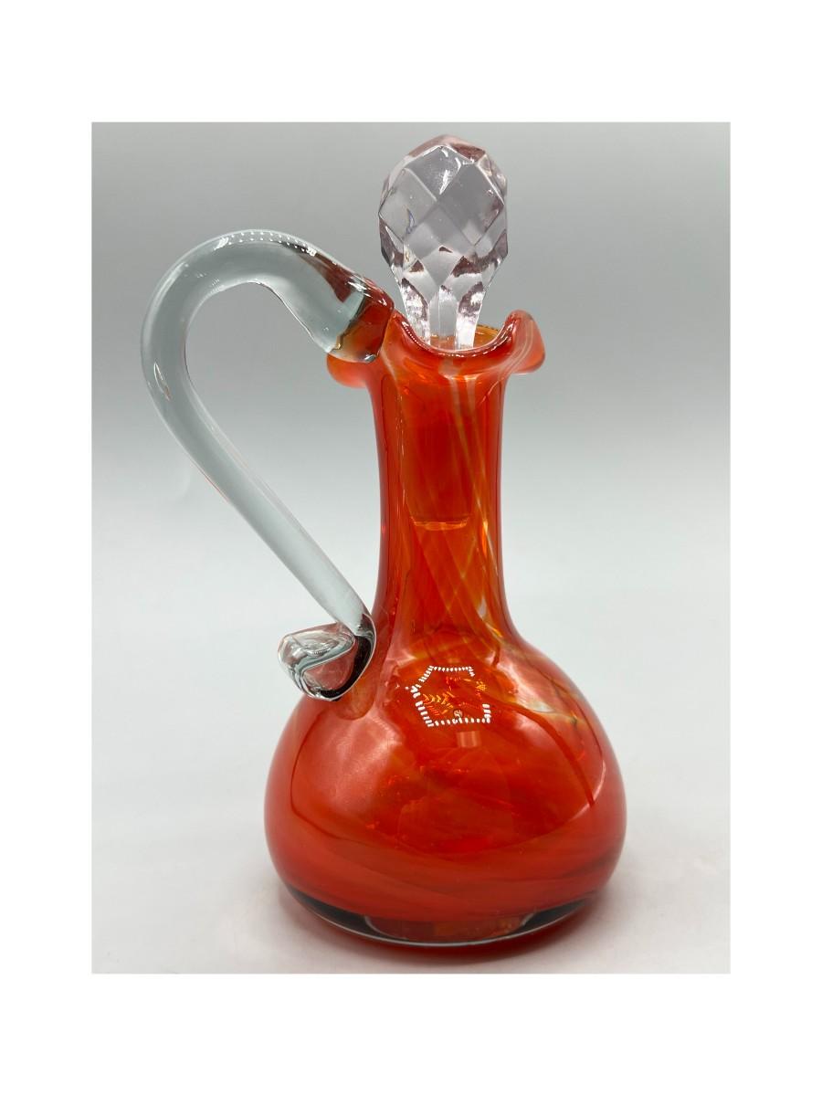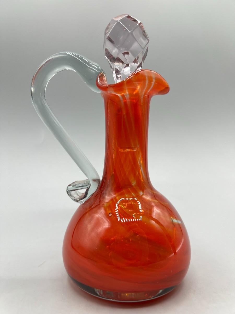 Retro Hand Blown Orange Clear Glass Art Glass Cruet