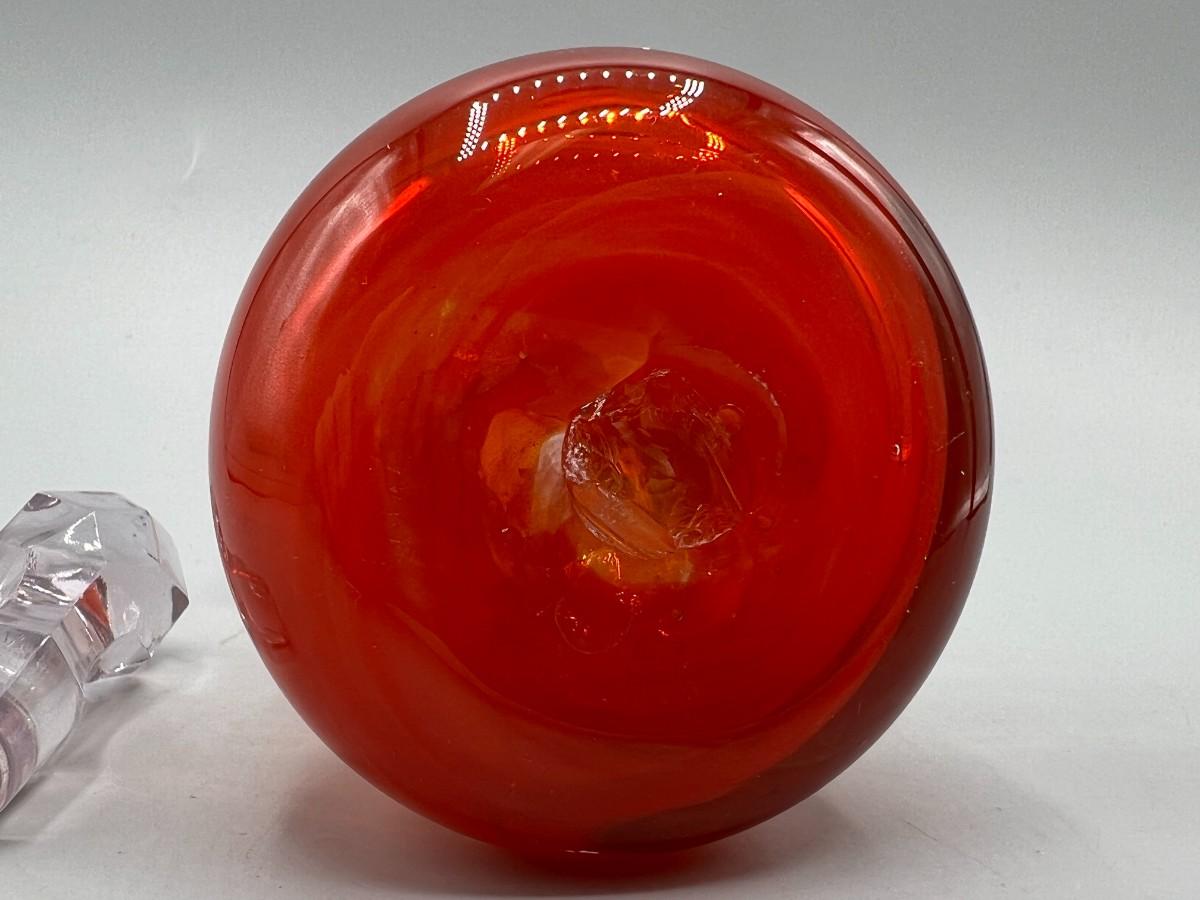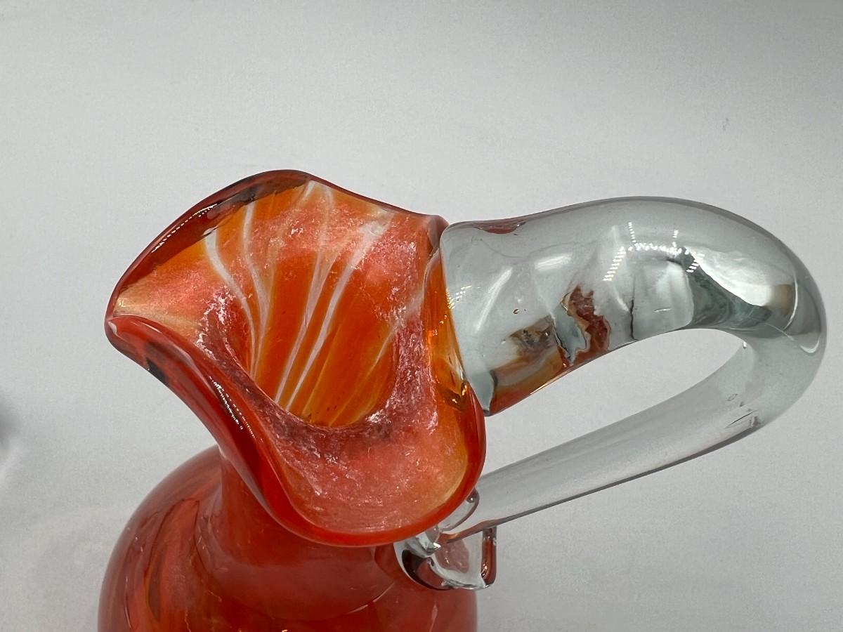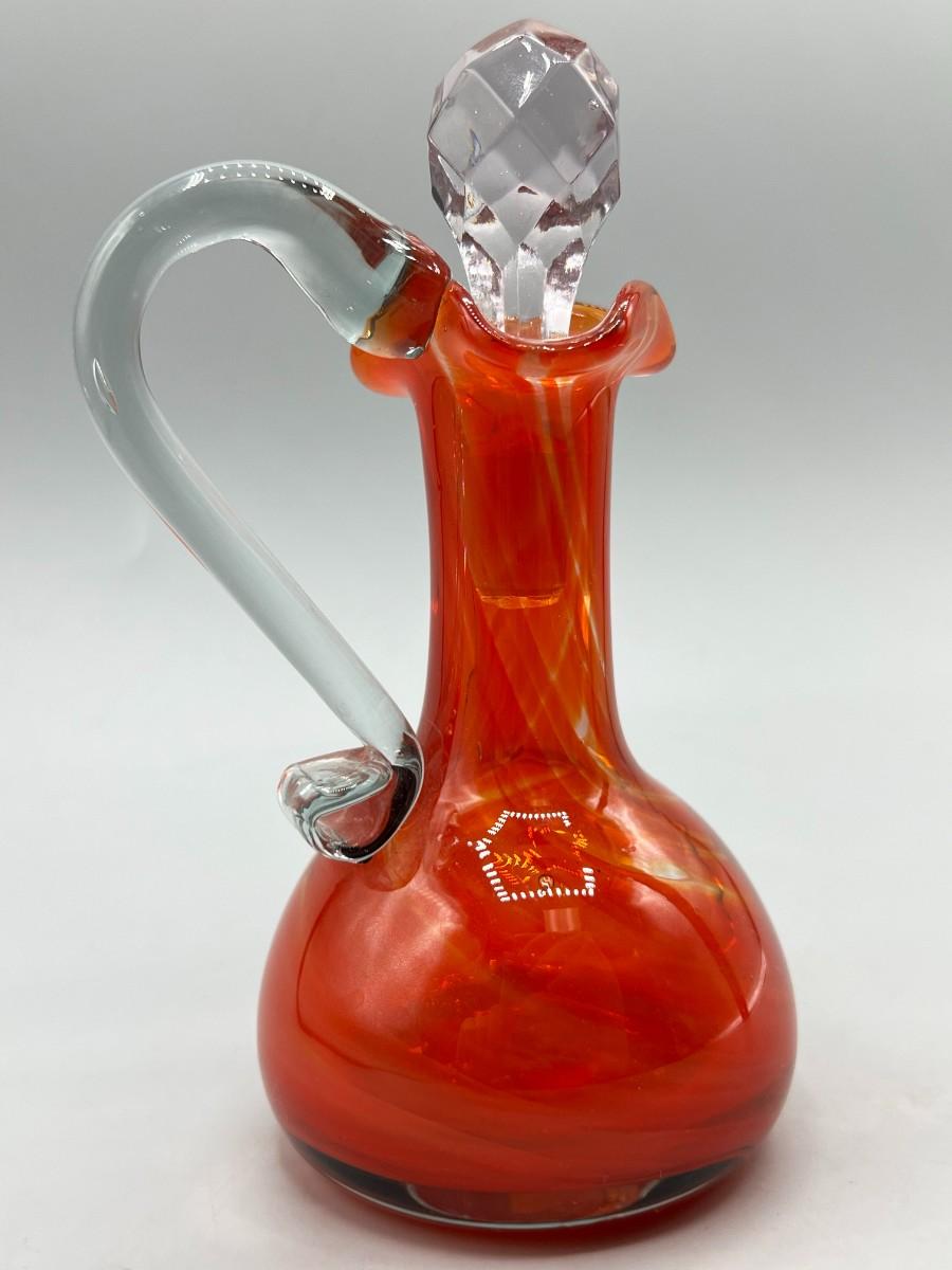 Retro Hand Blown Orange Clear Glass Art Glass Cruet