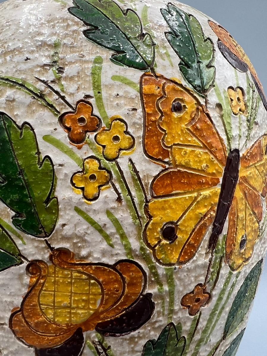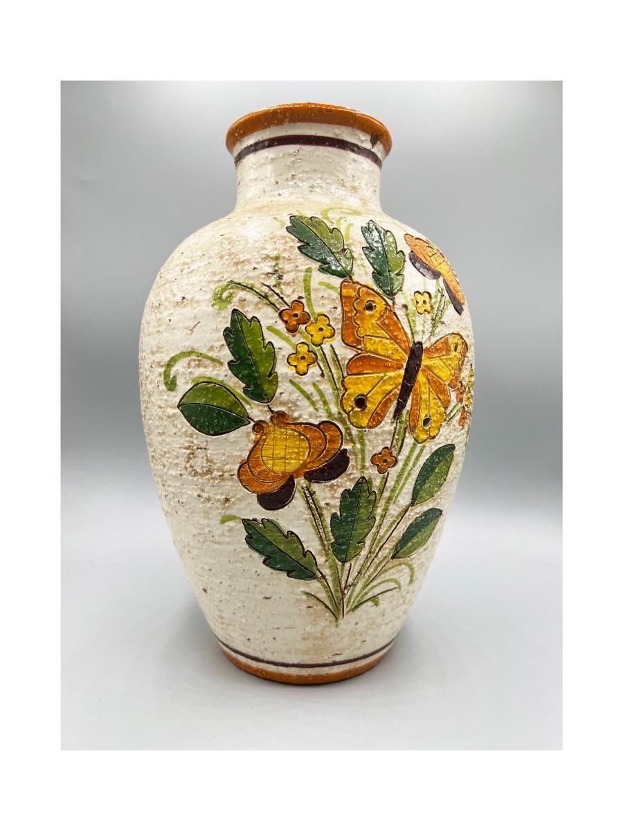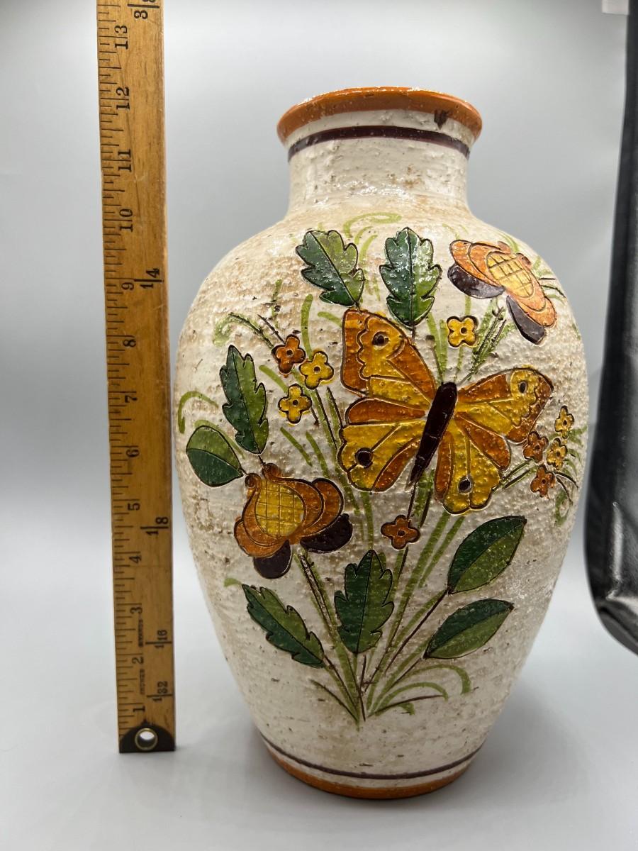 Retro Hand Painted Butterfly Flower Motif Clay Pottery Vase
