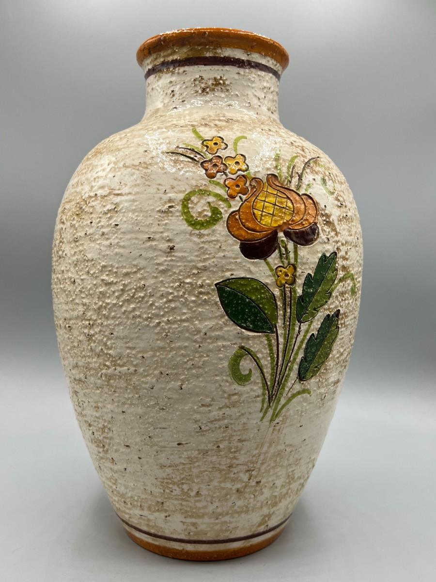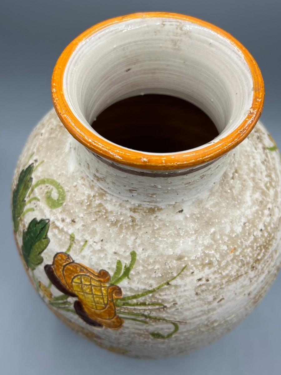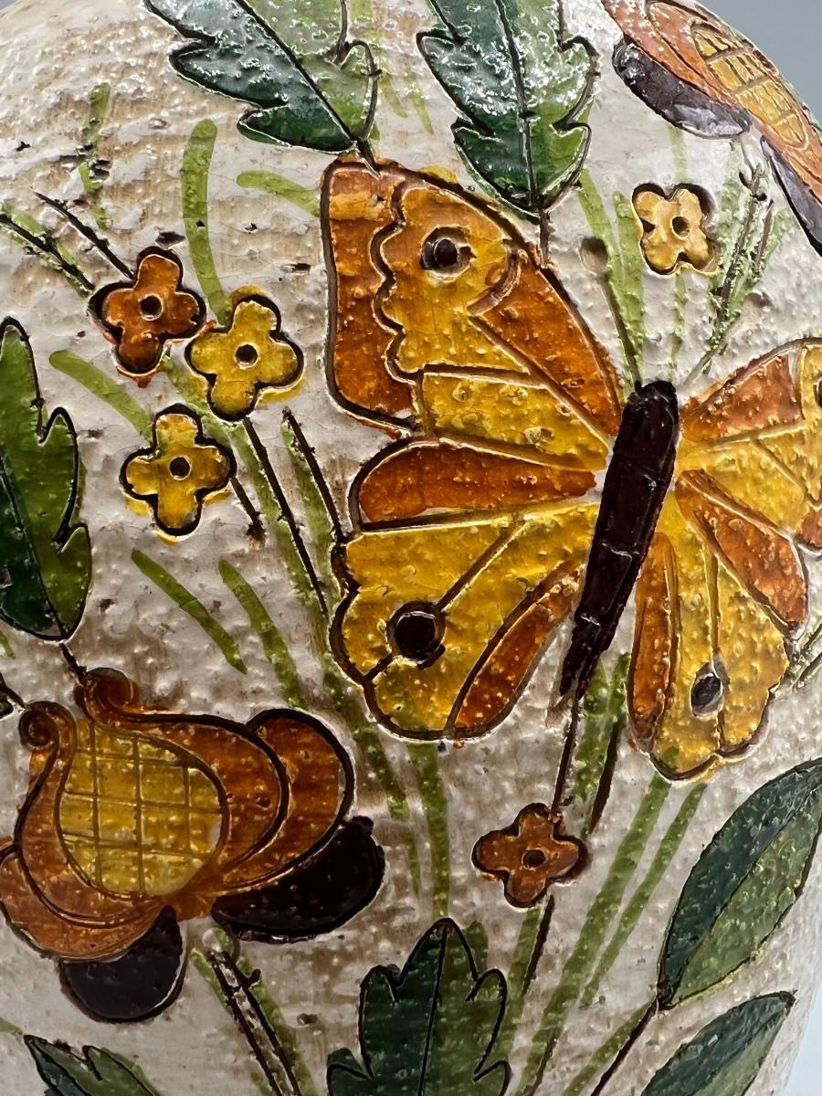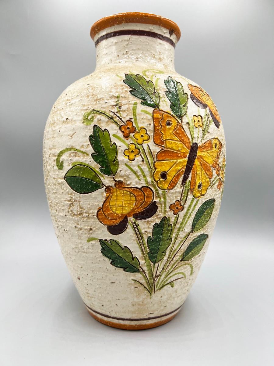 Retro Hand Painted Butterfly Flower Motif Clay Pottery Vase