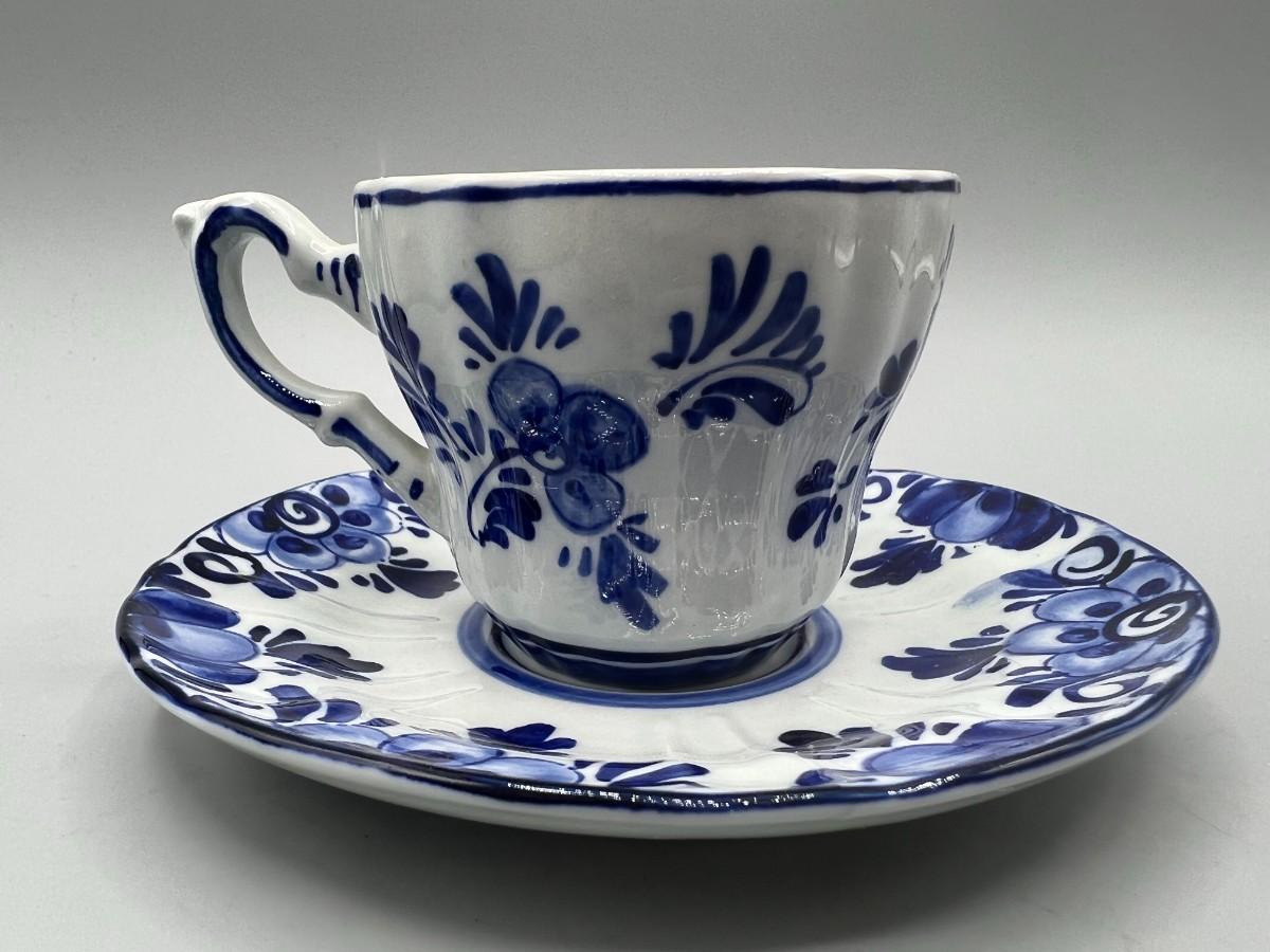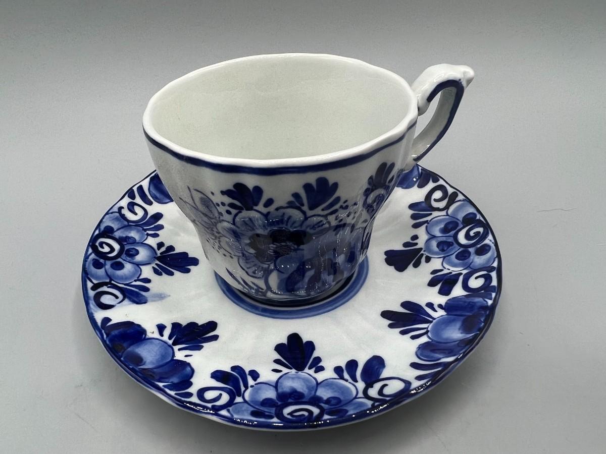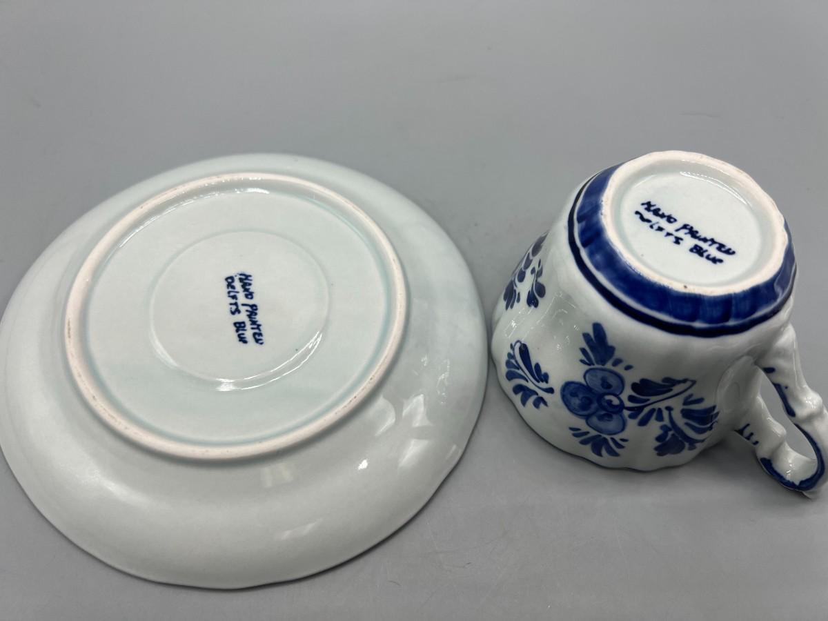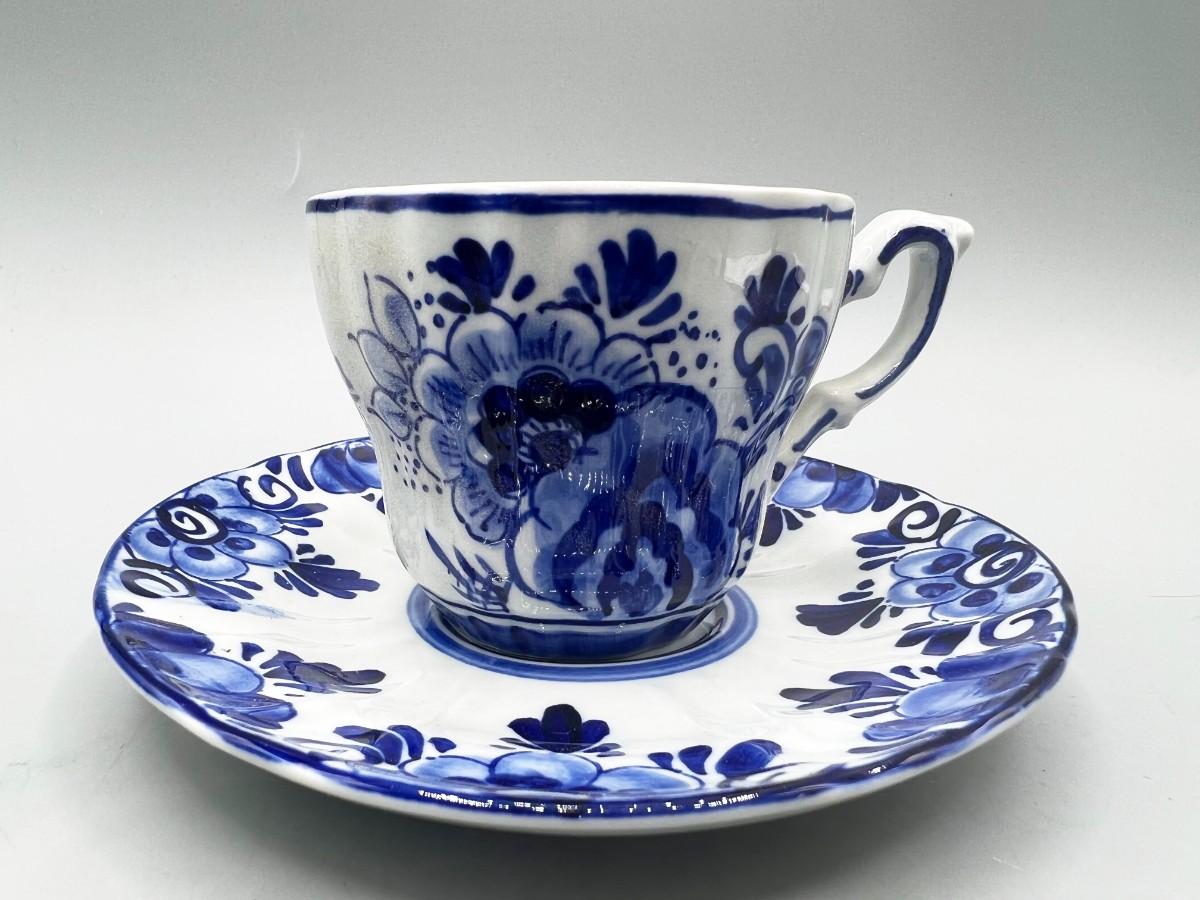 Retro Hand Painted Delfts Blue Ceramic China Tea Cup & Saucer