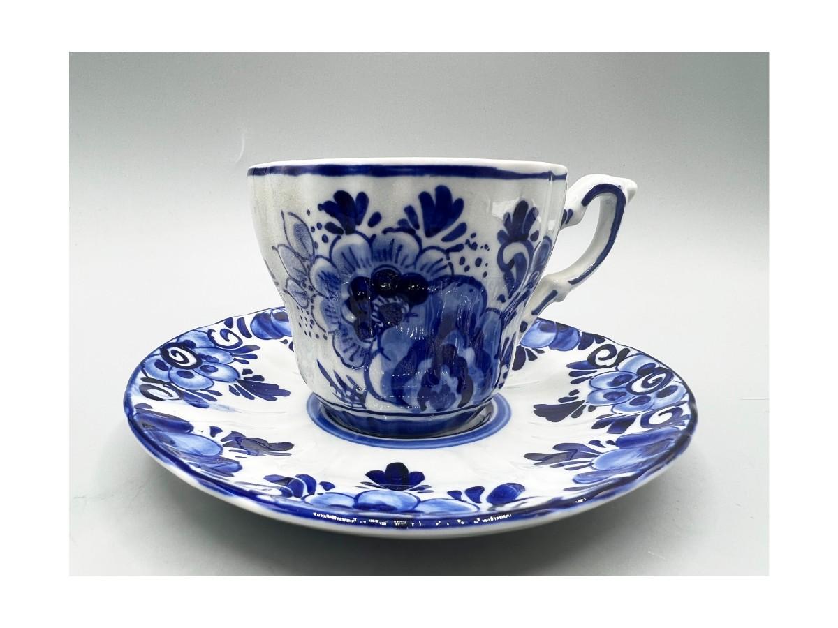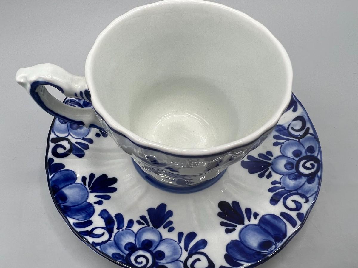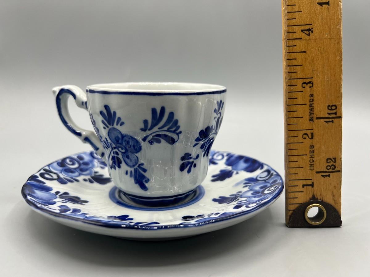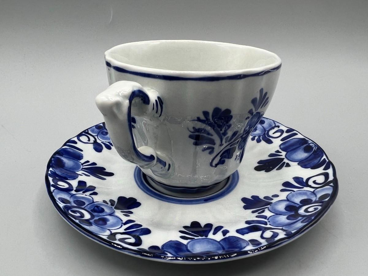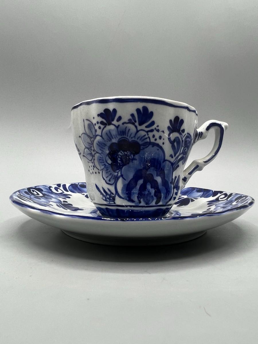 Retro Hand Painted Delfts Blue Ceramic China Tea Cup & Saucer