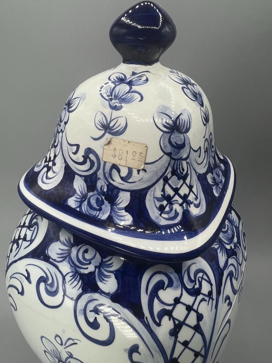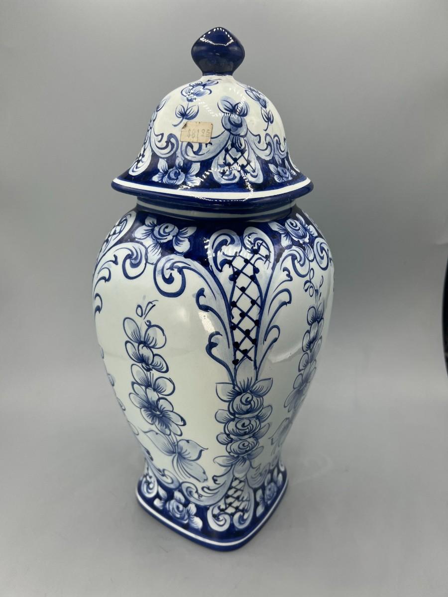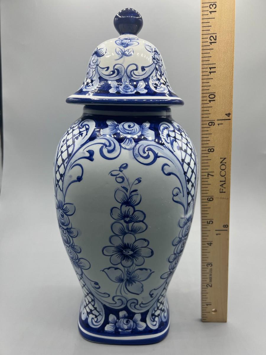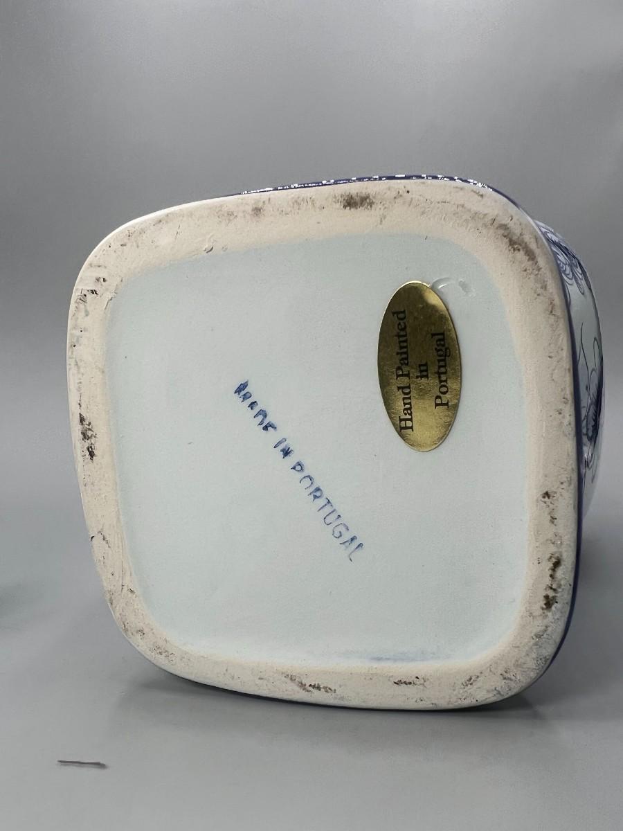 Vintage Hand Painted in Portugal Blue & White Ceramic Urn Ginger Pot Vase
