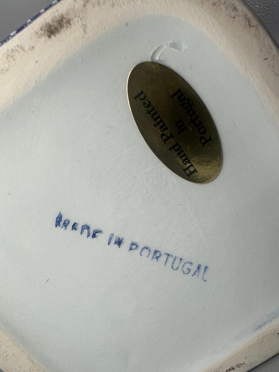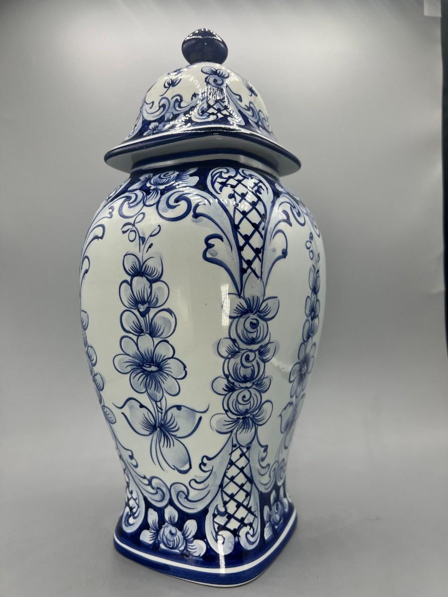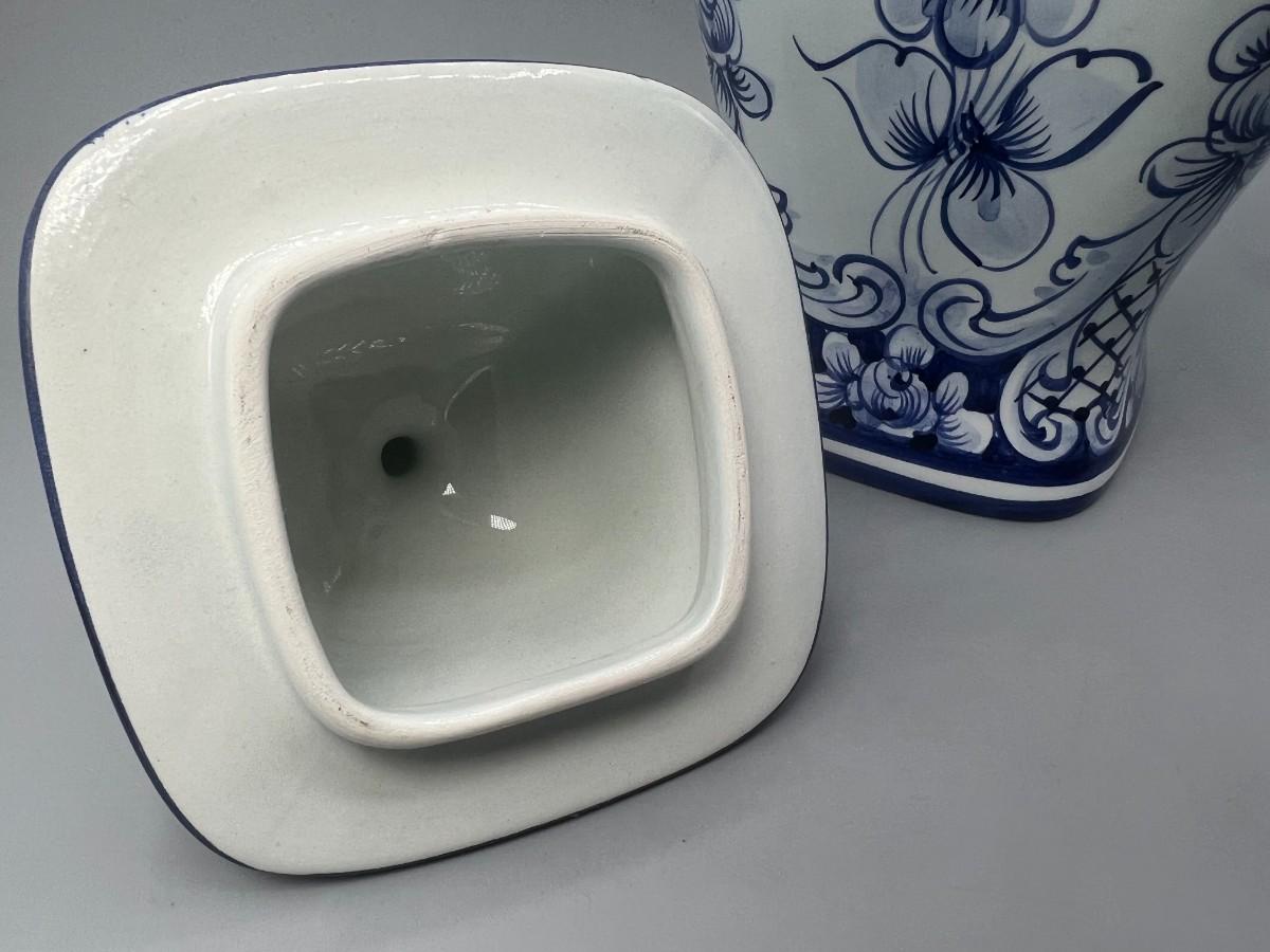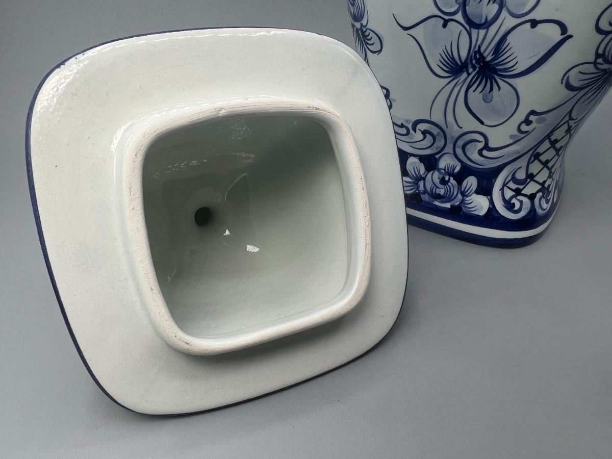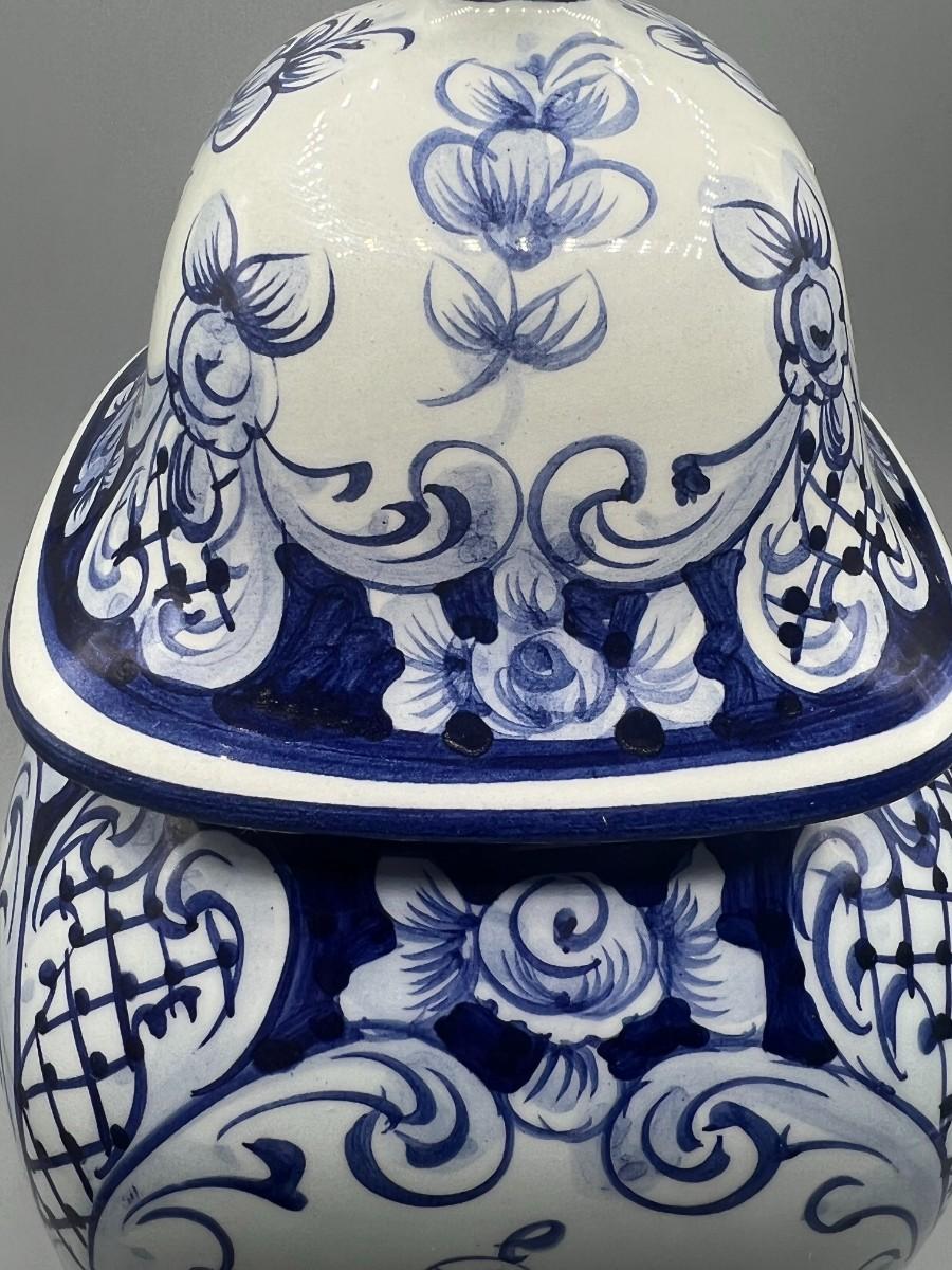 Vintage Hand Painted in Portugal Blue & White Ceramic Urn Ginger Pot Vase