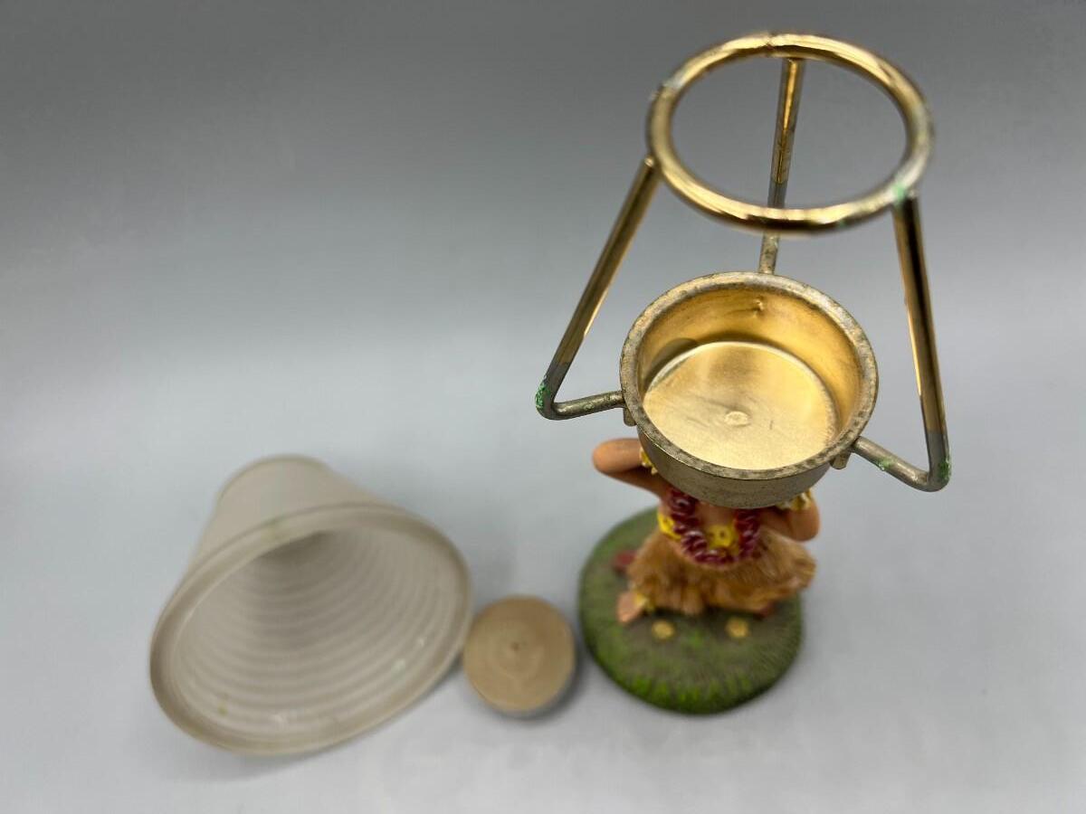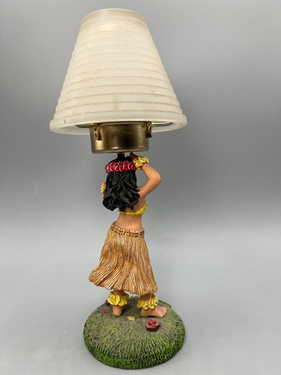 Retro Hawaiian Tropical Hula Girl Tealight Lamp Figurine, there is no significant damage to the lamp or the glass shade and is in good displayable condition. Check pictures for more details and for sizing.