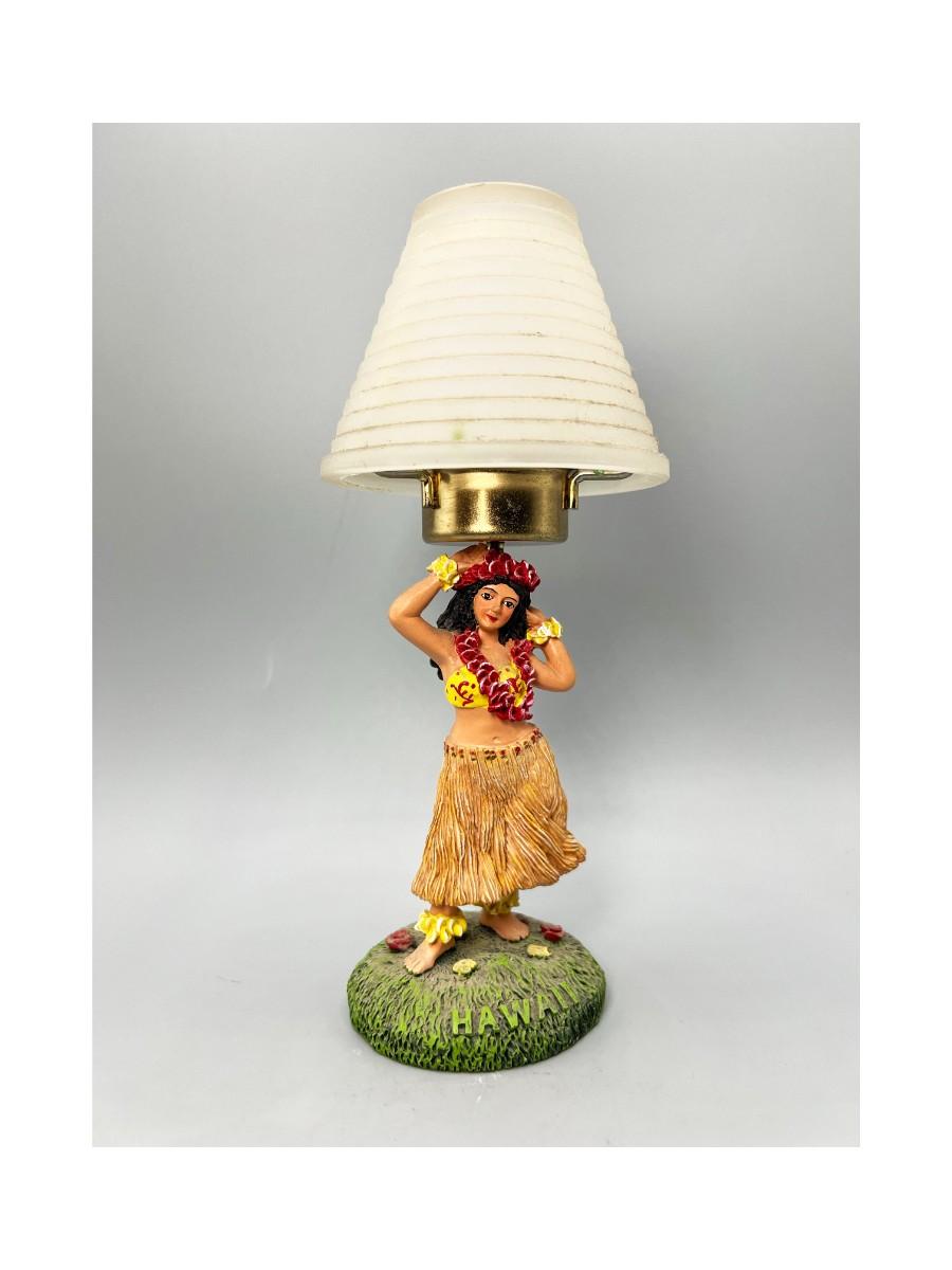 Retro Hawaiian Tropical Hula Girl Tealight Lamp Figurine with Glass Shade
