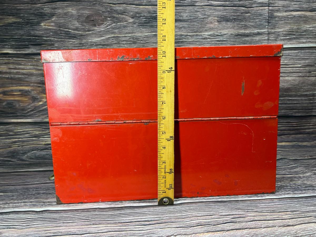 Retro Heavy Duty Metal Tool Parts Storage Organizer, there is wear to the body of the organizer, but there is no signifncant damage and is in good useable condition. Check pictures for more details and for sizing.