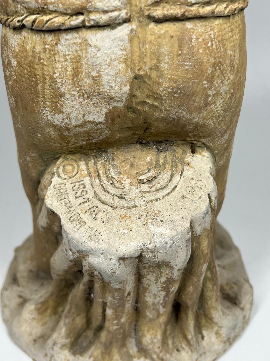 There is a light crack and some wear, but there is no significant damage and is in overall good collectible or displayable condition. Check pictures for more details and for sizing.