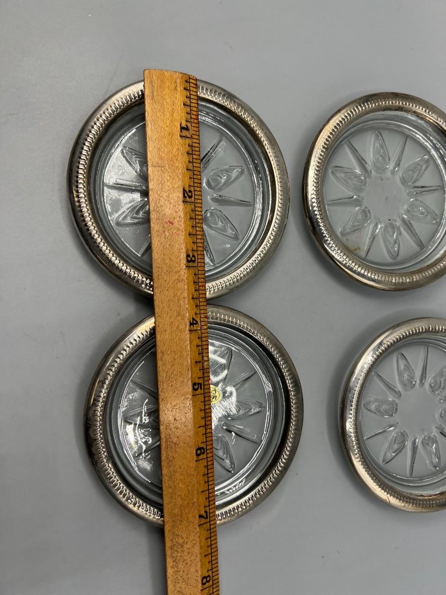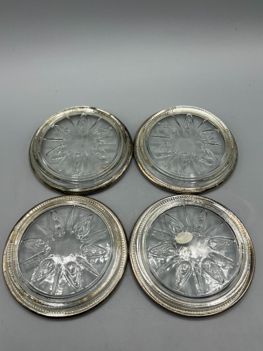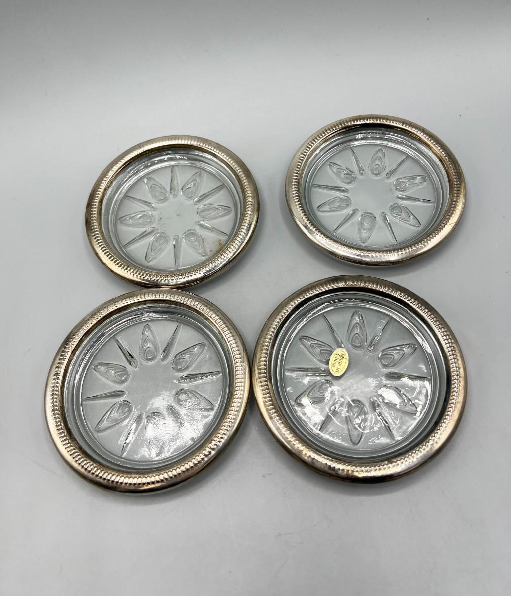 Retro International Silver Company Set of 4 Silver Plated Glass Coasters