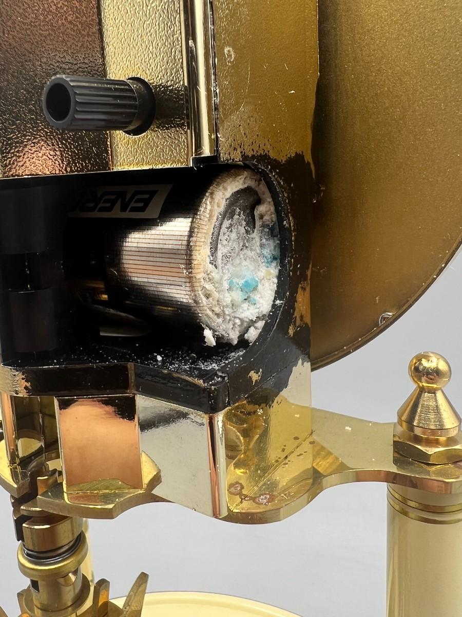 There is some corrosion on the battery, but there is no other significant damage and is in overall good collectible or displayable condition. Has not been tested with new batteries, check pictures for more details and for sizing.