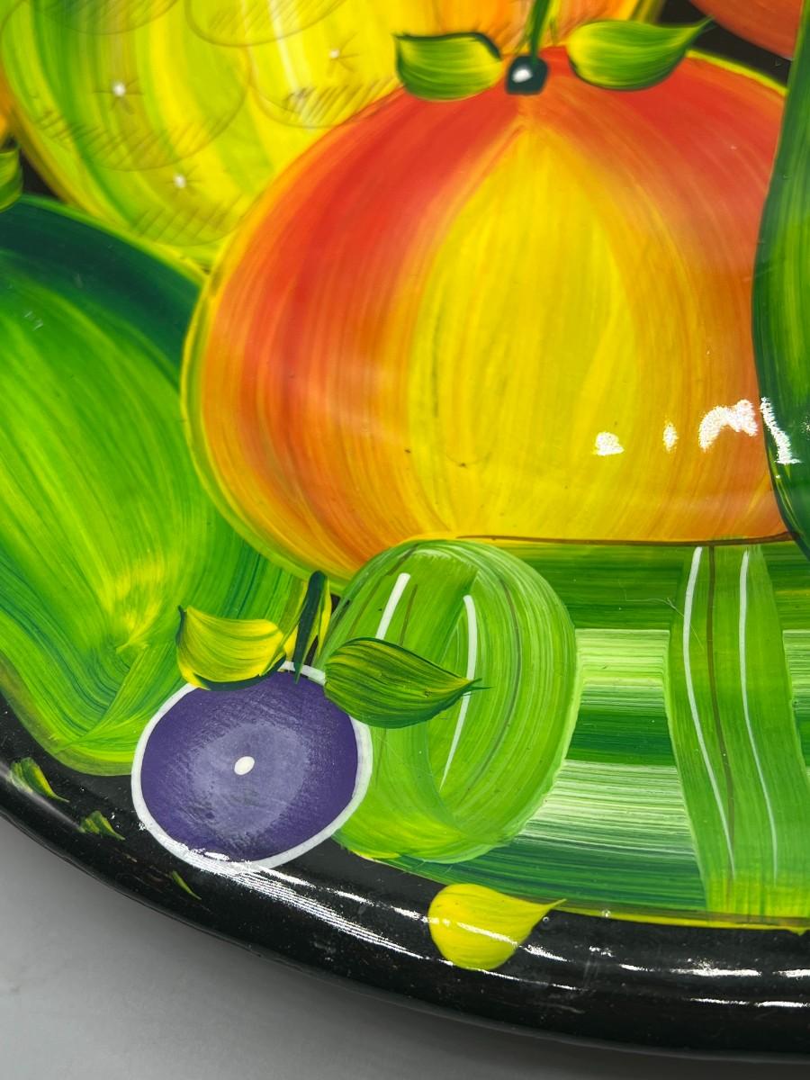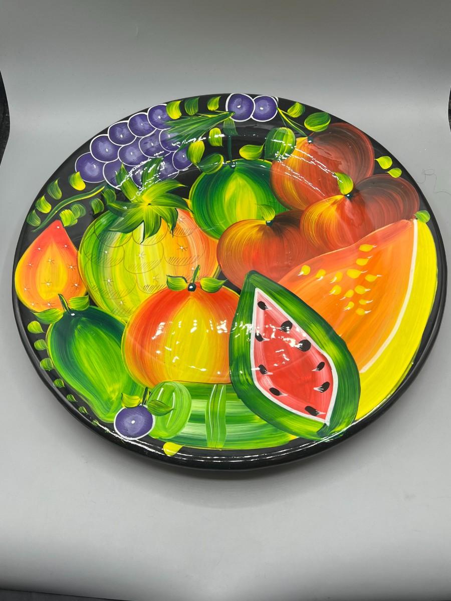 Retro Large Hand Painted Colorful Fruit Still Life Decorative Hanging Pottery Art Tropical Plate
