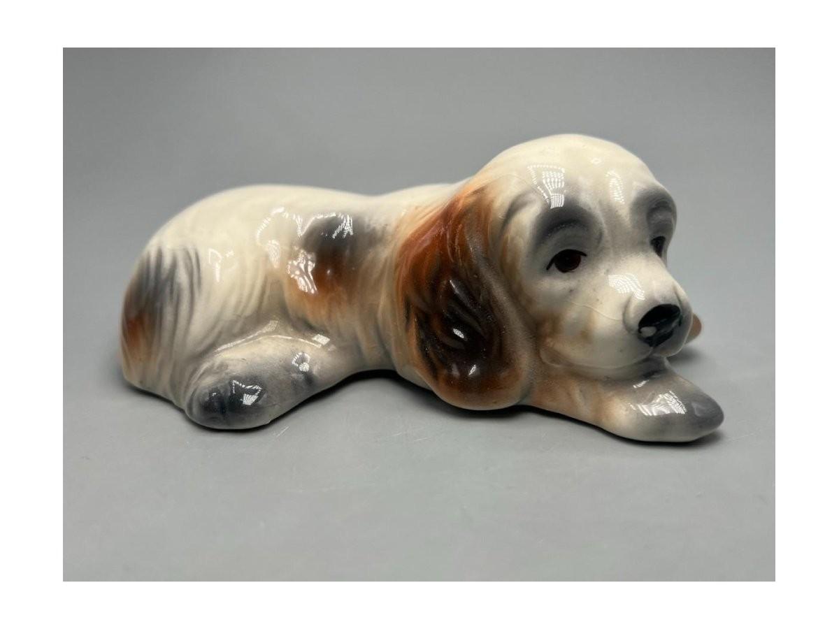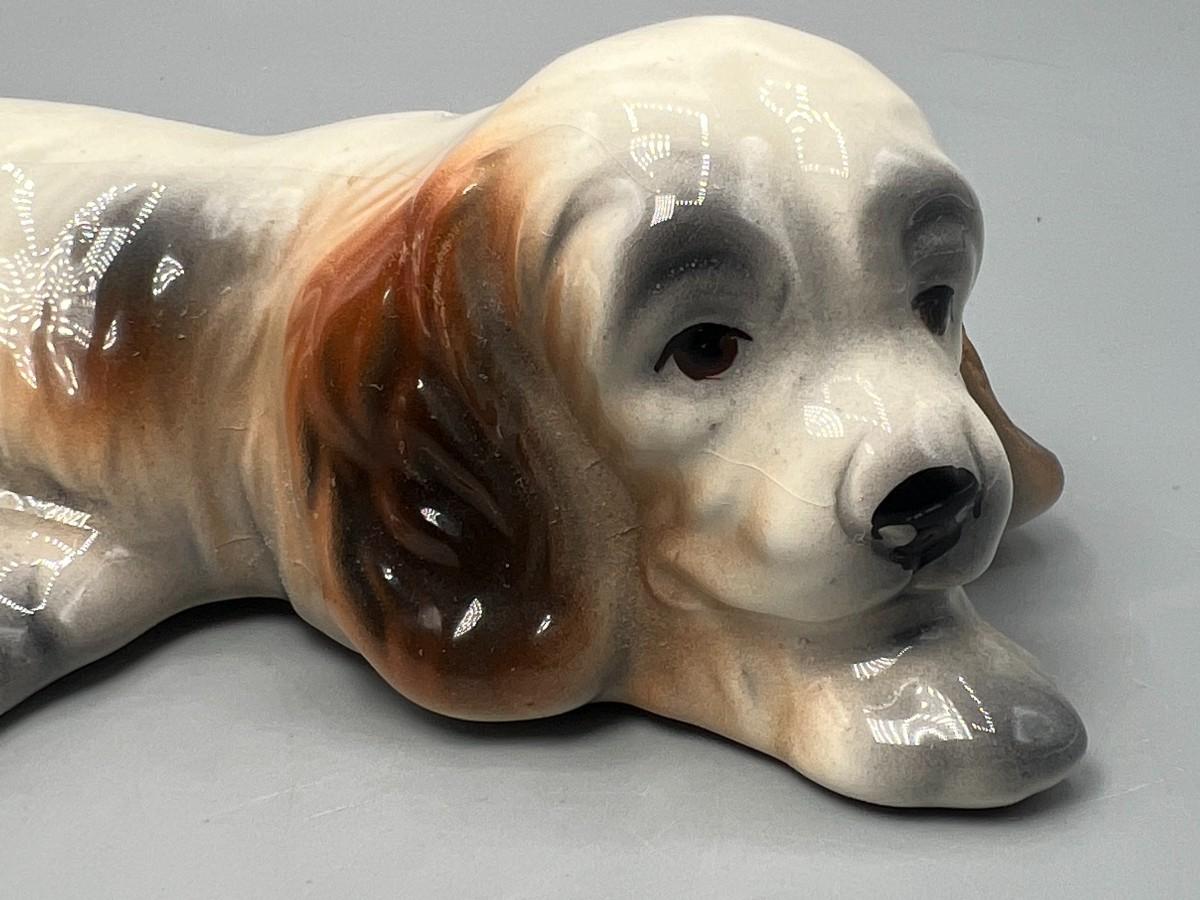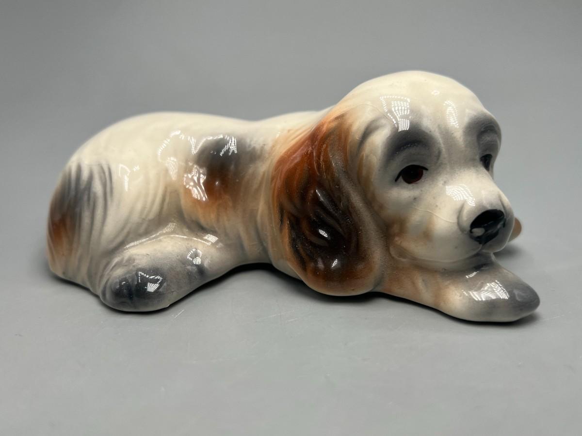 Retro Laying Ceramic Spaniel Puppy Dog Figurine