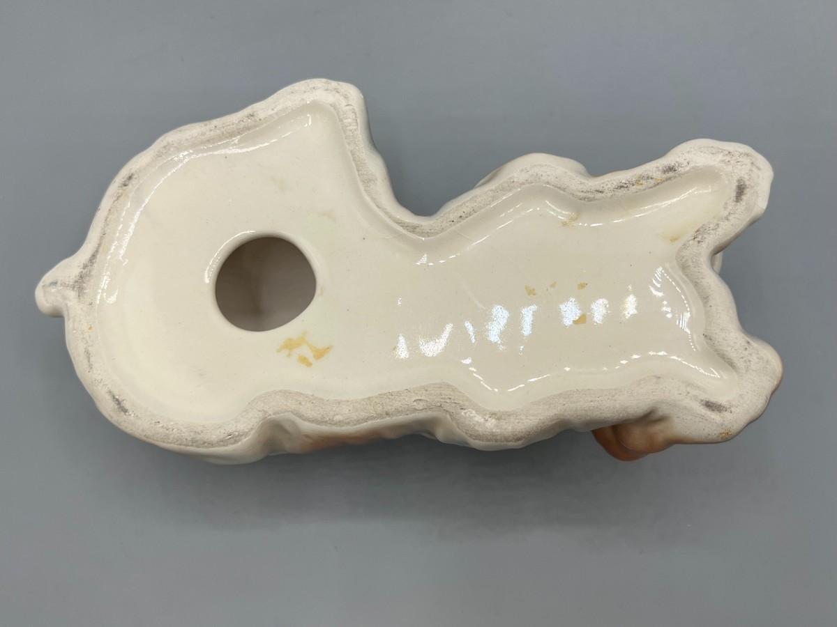 There is no significant damage to the ceramic figurine and is in overall good collectible or displayable condition. Check pictures for more details and for sizing.