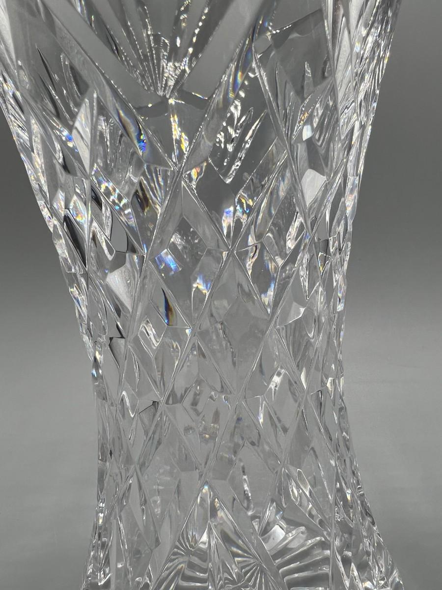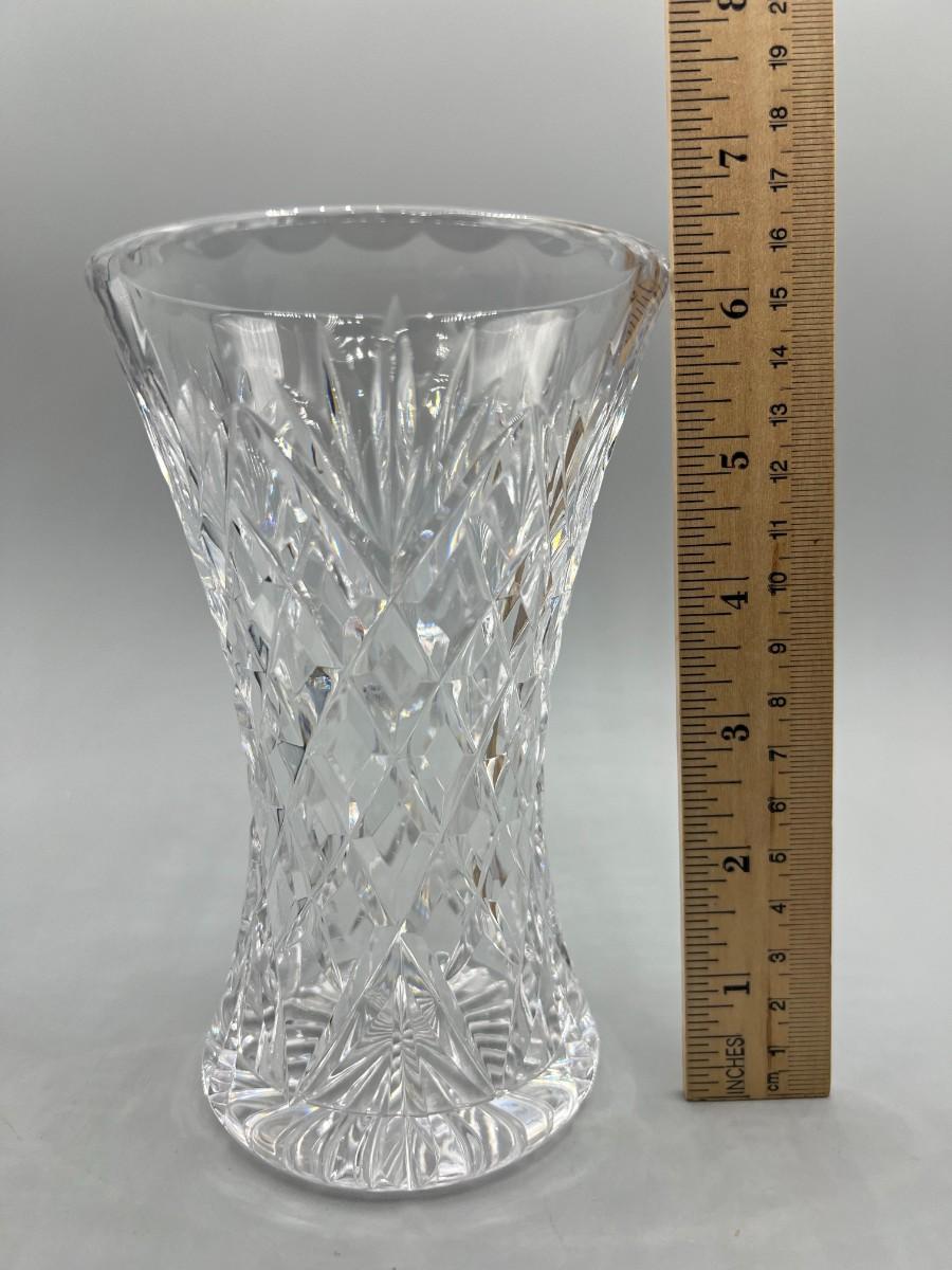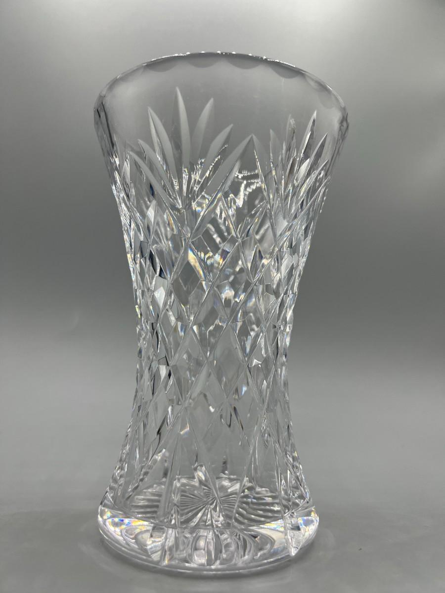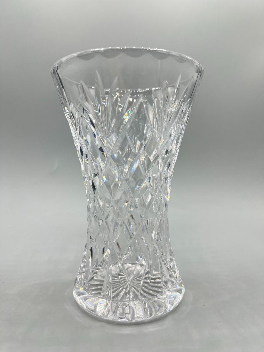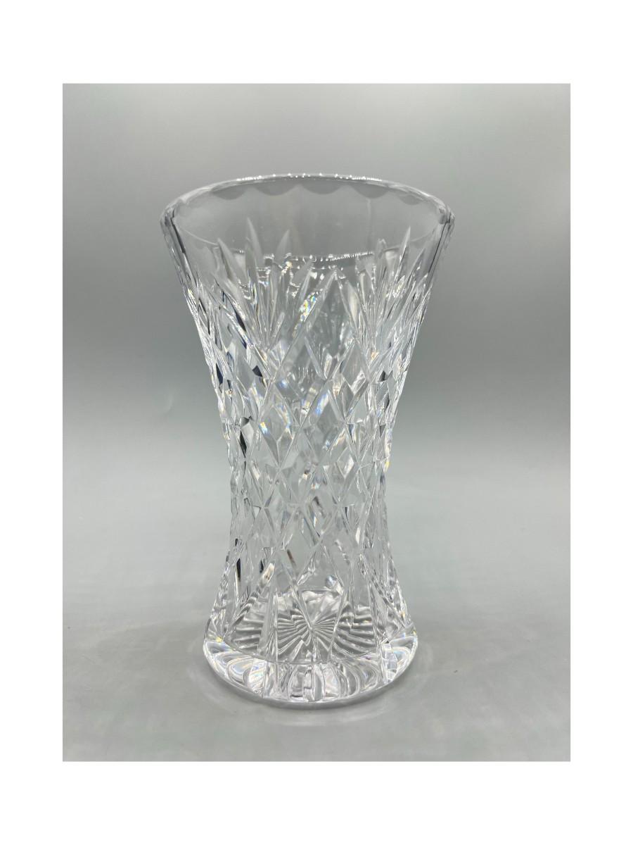Retro Lead Crystal Fan & Diamond Pattern Glass Flower Vase